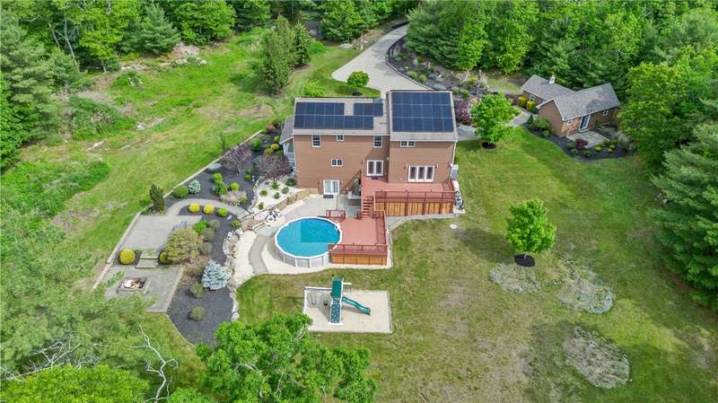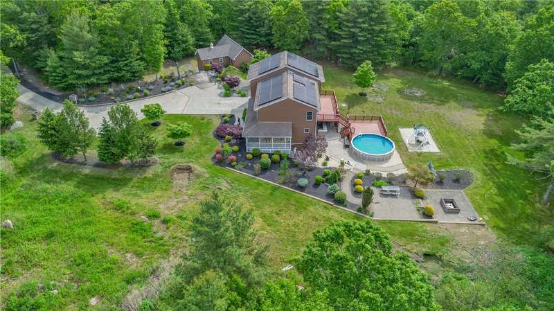 Lovely, move-in ready home has ALL the bells and whistles nestled on a private 5.5 acre lot. This 5-bedroom, 3-full bathroom (including two en suite bathrooms) with TWO half-baths also features a first floor wet bar and laundry room (attached to the first floor lavette). And the finished walk-out basement that features a game room, movie/entertainment room, bar, and that other half-bath is perfect for entertaining or just having a fun night in! Situated at the end of a private road and surrounded by trees on park-like grounds, this secluded oasis has tons of beautifully finished outdoor spaces--including a pool and plenty of space to entertain--as well as a ton of acreage left "wild" to explore and connect with nature. Custom outdoor grill and bar area, complete with outdoor TV, ensures you won't miss the score on your favorite sporting event! This home is perfect for families, nature lovers, those who like to entertain, or just someone looking to have a retreat where they can get away