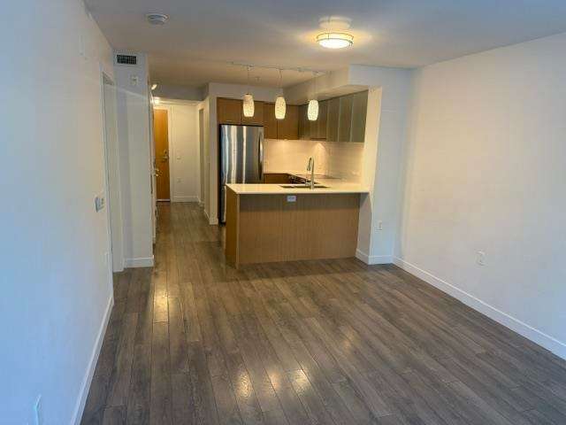 Welcome to the Orizon. This one bedroom and den has a functional open floor plan with 2 private entrances, ideal for disabled persons and pet lovers by offering a direct access patio. Highlights include: Hardwood floors, s/s appliances, quartz counter-tops, beautiful pendant lighting, in-suite laundry, his/hers closet, big storage locker, and secure underground parking close to the elevator. Stunning West Coast design built with rainscreen technology & proper overhangs offering buyers peace of mind when purchasing a condo. BONUS: Amazing amenities offering a fitness room with space for yoga, 5th floor rooftop terrace, gas BBQ, gas fireplace the perfect place to entertain. Pets and rentals allowed. Hurry this one wont last long... immediate possession available.
