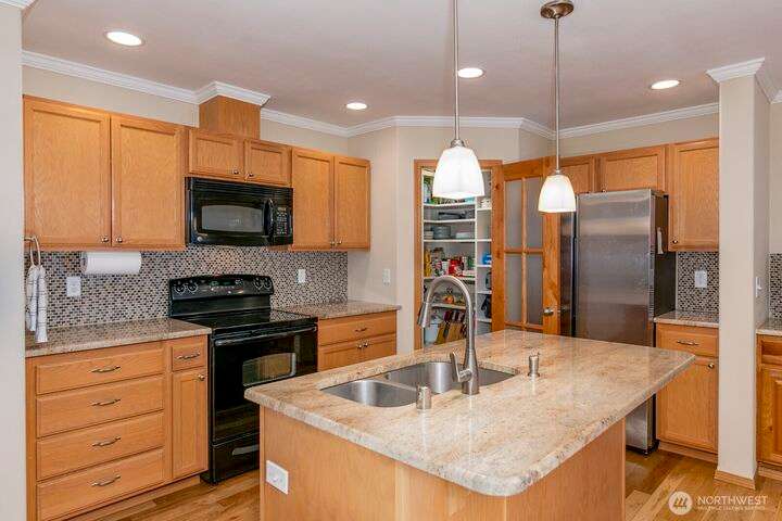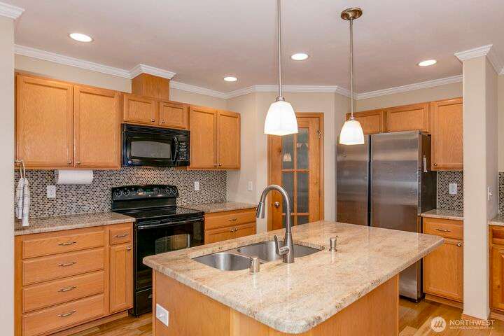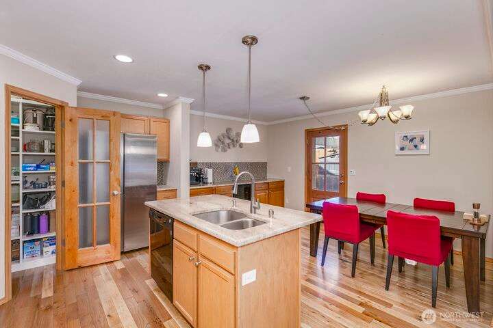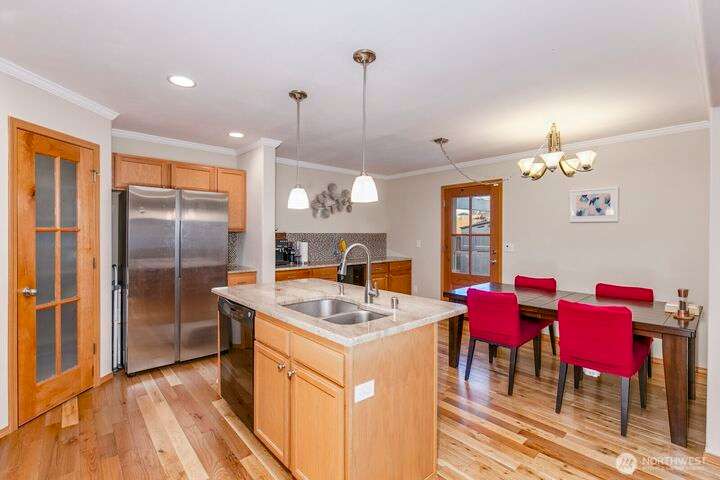 Welcome to Camden Court, a private enclave near a number of local amenities. Step into this nearly 2,000 sq ft home offering 4 bedrooms & 2.5 bathrooms, designed with comfort & convenience in mind. Enjoy gatherings in the open living spaces with wood floors throughout. The spacious kitchen boasts granite countertops, stainless steel appliances, pantry with superb storage, built in buffet area with wine fridge and bar seating. The adjacent dining & living areas allow for gatherings of all sizes. All bedrooms are upstairs highlighted by the large primary bedroom with en suite bathroom and massive walk in closet. The 4th bedroom is set up as an office with built in desk & shelving. Minutes to Boeing & I5. Low maintenance backyard.