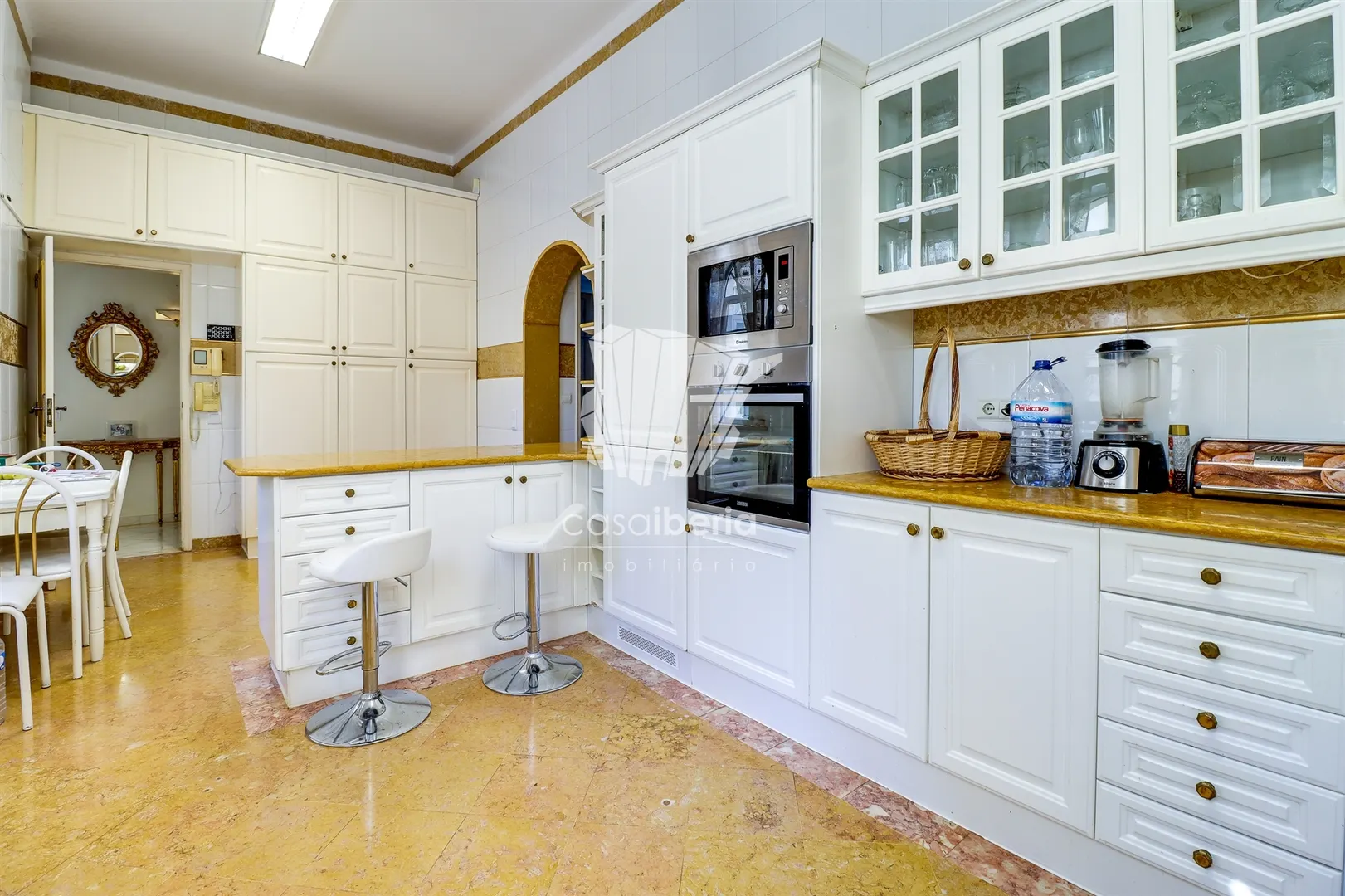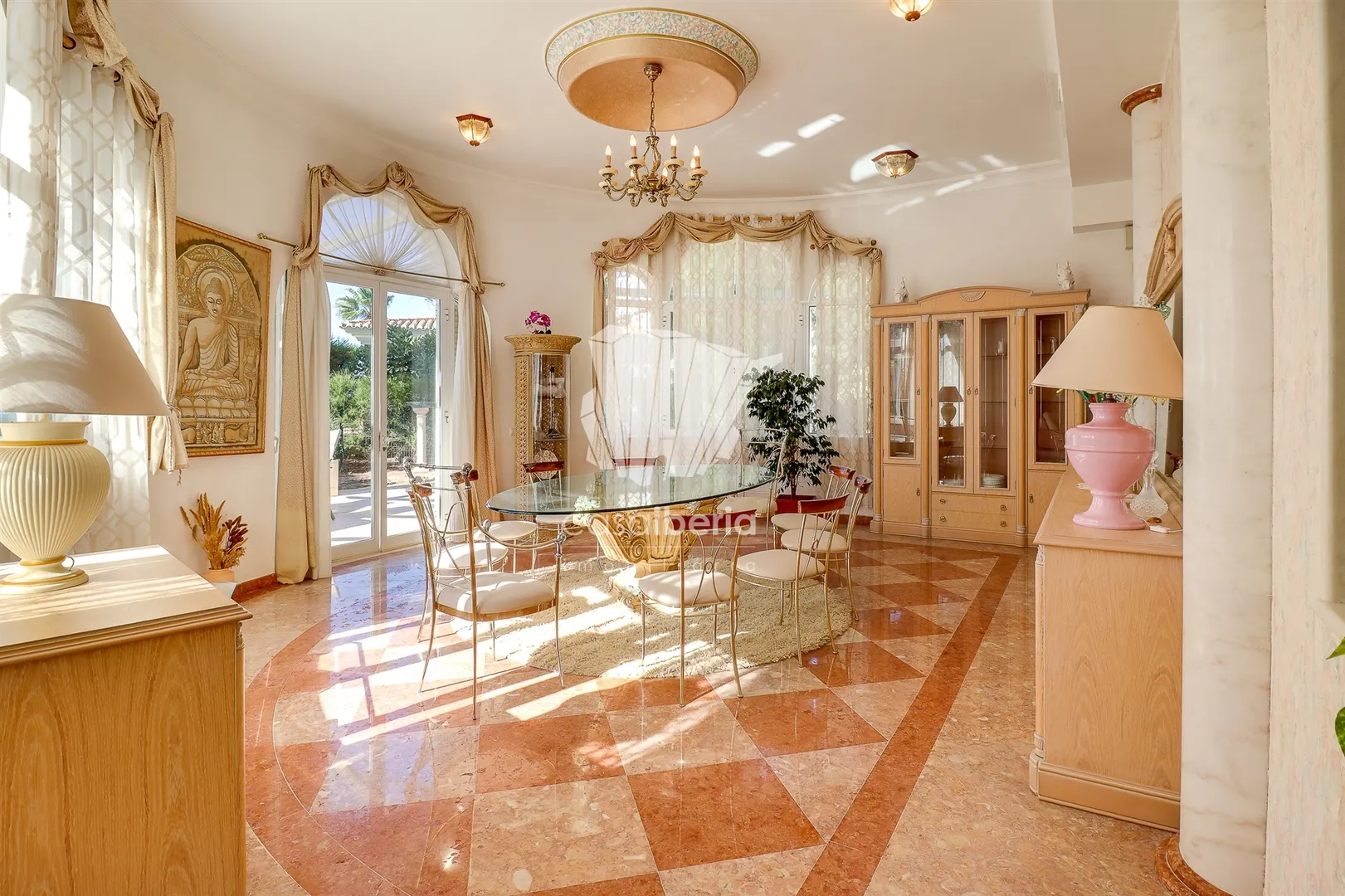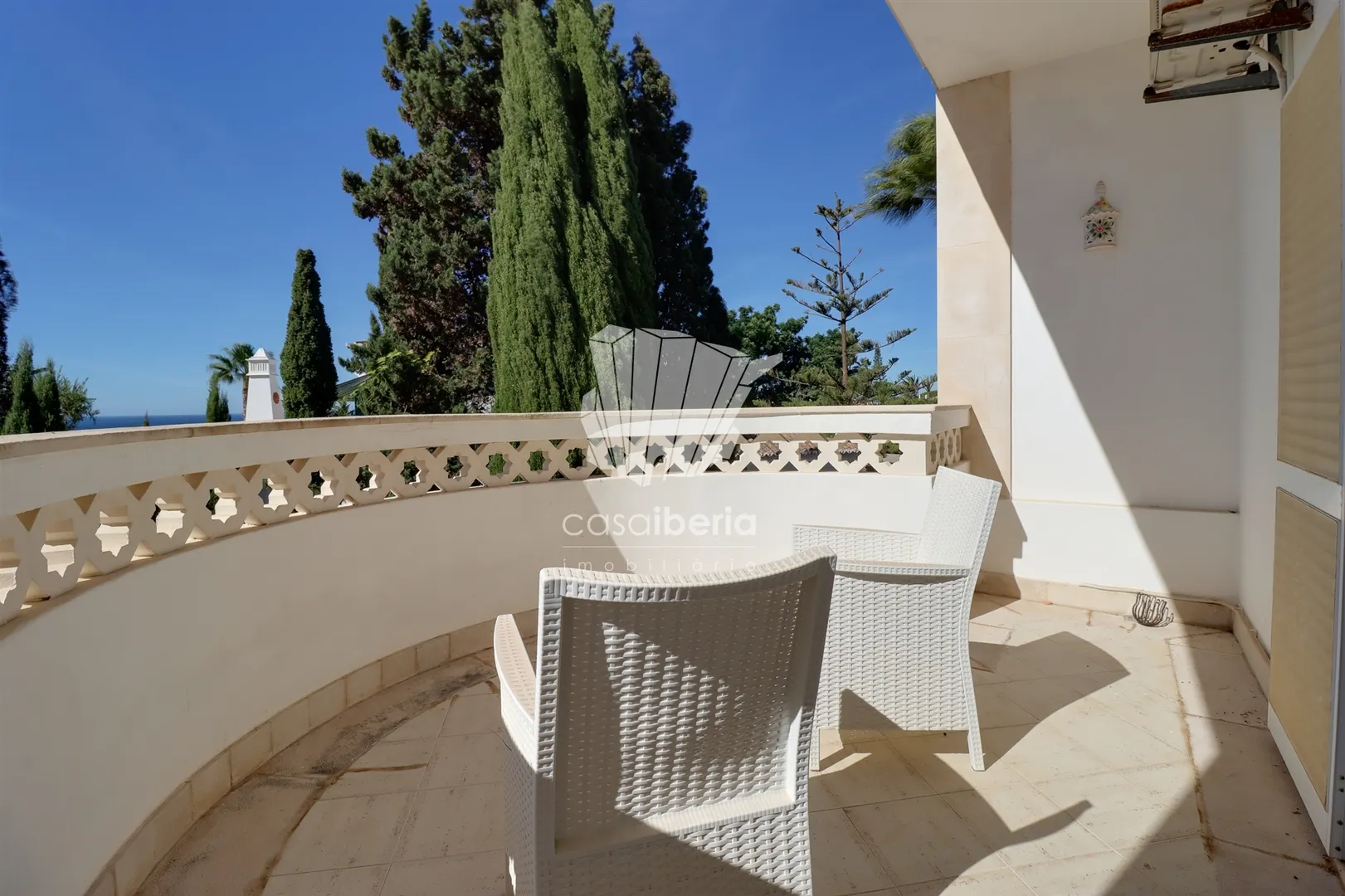 A spacious hall with soaring ceilings and a beautiful staircase leading to the upper level. A large, harmonious living room with fireplace and sea views opens directly onto the terrace and garden. The south-facing dining room offers a refined, light-filled setting. The fully equipped kitchen includes a pantry and separate laundry room .