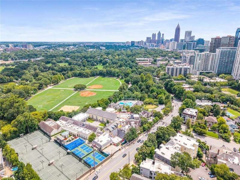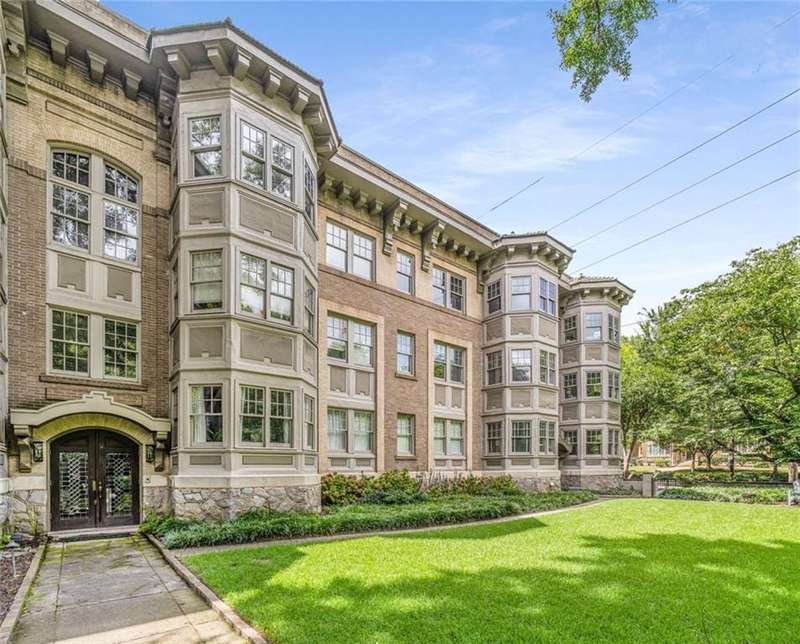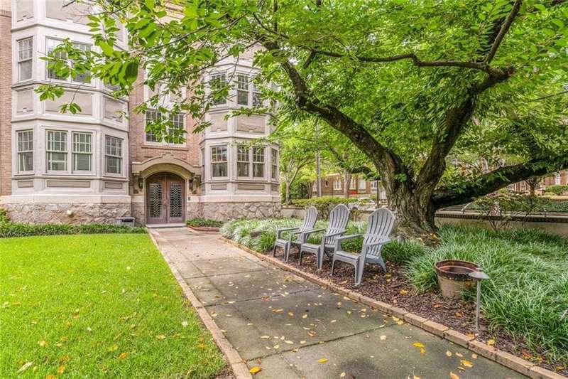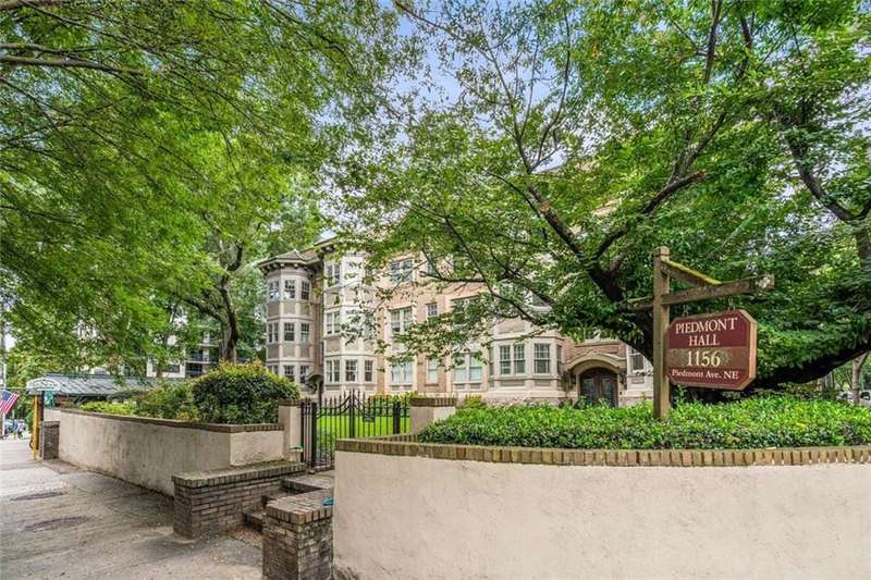 Welcome to Piedmont Hall, a beautiful building dating 1942. Sophisticated and lovely, this jewel overlooks the 14th Street entrance to Piedmont Park. Unit A4 has been very well maintained with gorgeous hardwood floors, very heavy trim/moulding throughout and high ceilings. There is a large Living Room that has a 'sunroom' with a view of the front lawn and the Piedmont Park entrance gates. Living room adjoins the generous sized dining room. The kitchen has stained cabinets, stainless steel appliances and stone countertops. 2 bedrooms and 2 full baths and an additional storage unit in the basement. 1 assigned parking space in the gated parking lot behind the building.This condominium is in an ideal location with everything that Midtown has to offer. Walkable to shopping, restaurants, the High Museum, the Atlanta Botanical Gardens, and of course Piedmont Park!