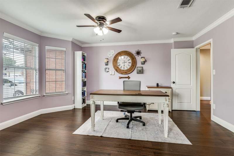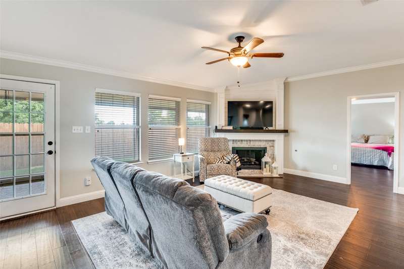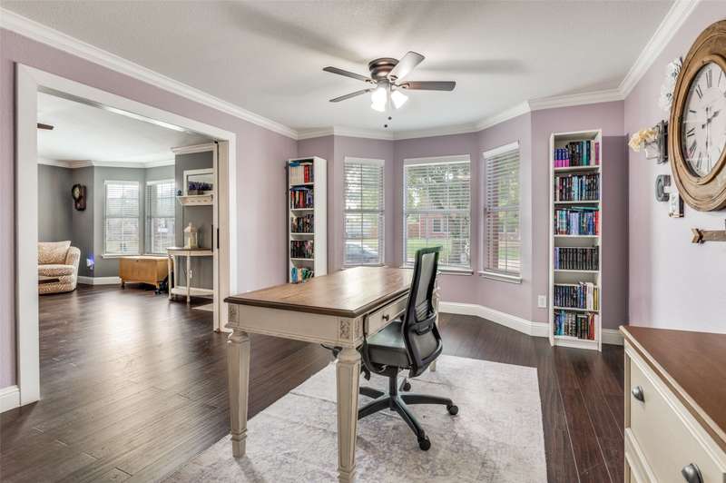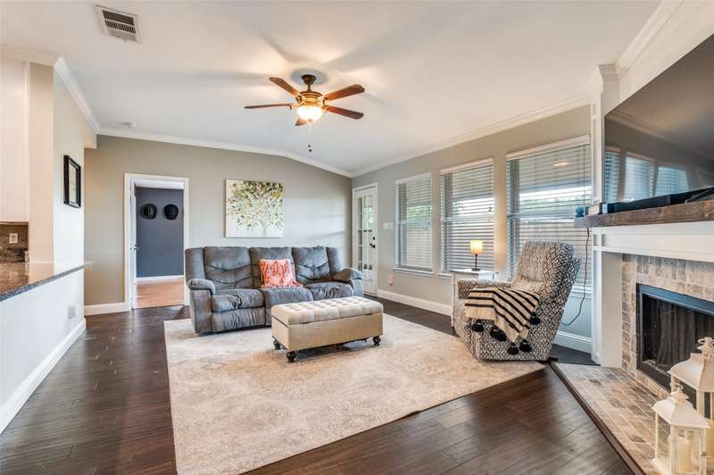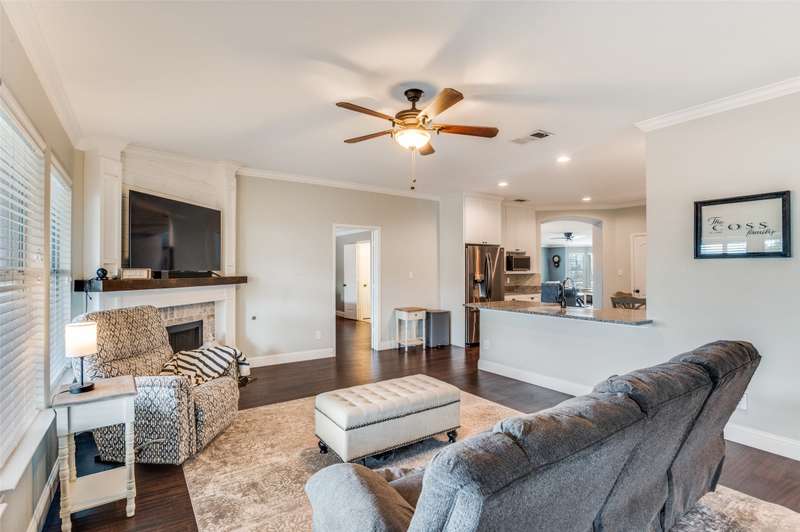 Welcome to this beautifully maintained four-bedroom, three-bath home with a dedicated office or flex space, AND 2 LIVING AREAS; tucked away in a quiet neighborhood known for its larger lots and mature trees. The fully remodeled eat-in kitchen boasts granite countertops, custom cabinetry to the ceiling, black stainless steel appliances, a gas range, and abundant counter spaceflowing seamlessly into the inviting family room with a cozy gas fireplace. The spacious primary suite features a raised ceiling, walk-in closet, and a luxurious en suite bath with an oversized shower. Outdoor living shines with an expansive covered patio, large side yards, and a backyard with a two-year-old fence and oversized gateperfect for entertaining, gardening, or play.