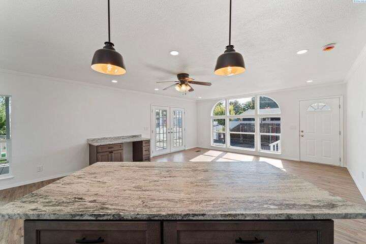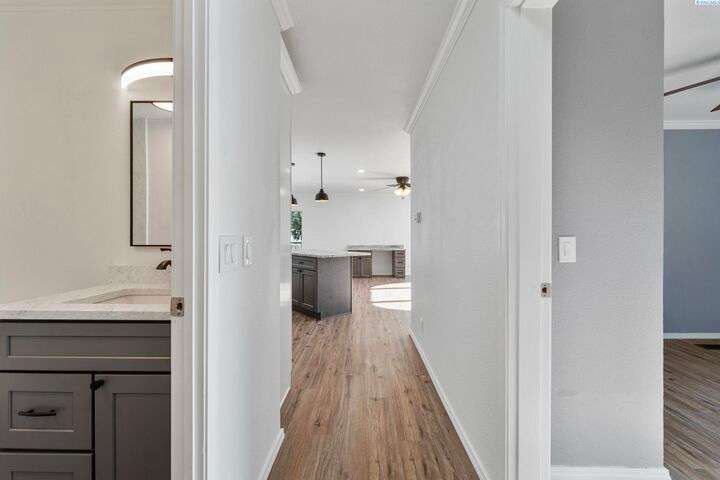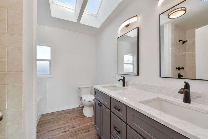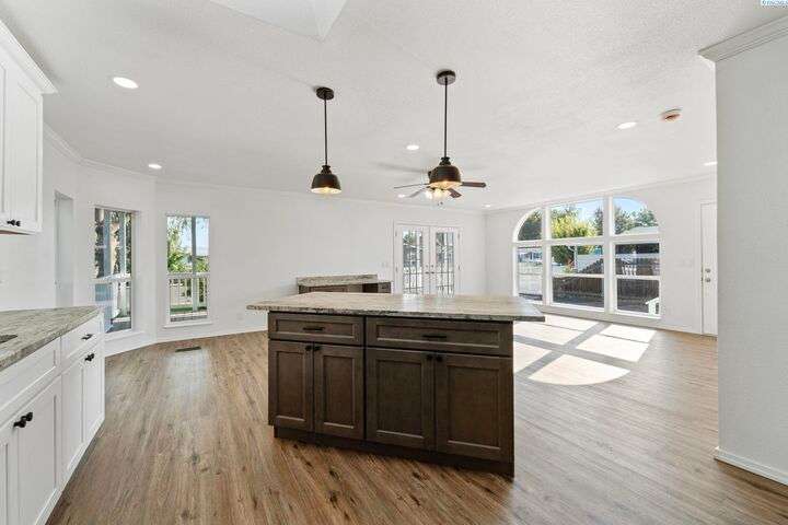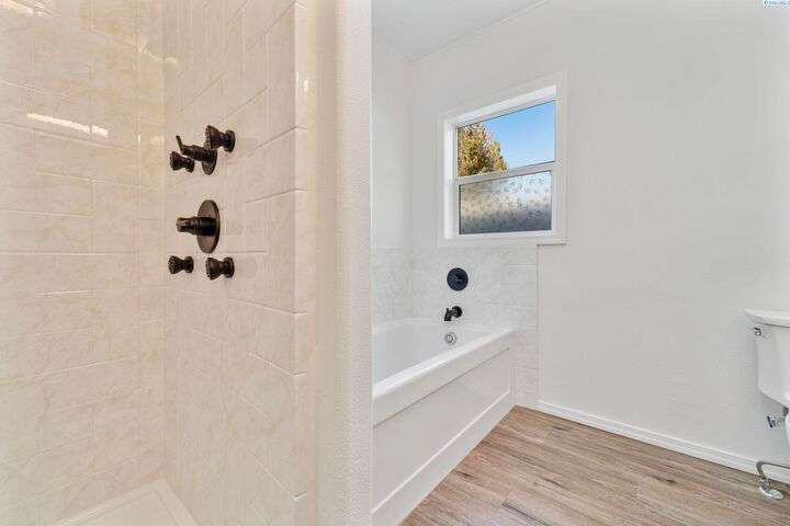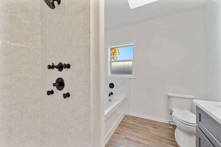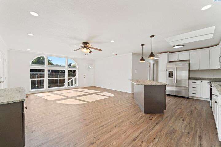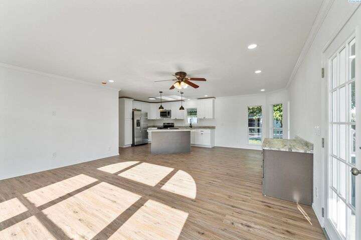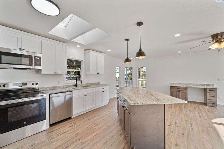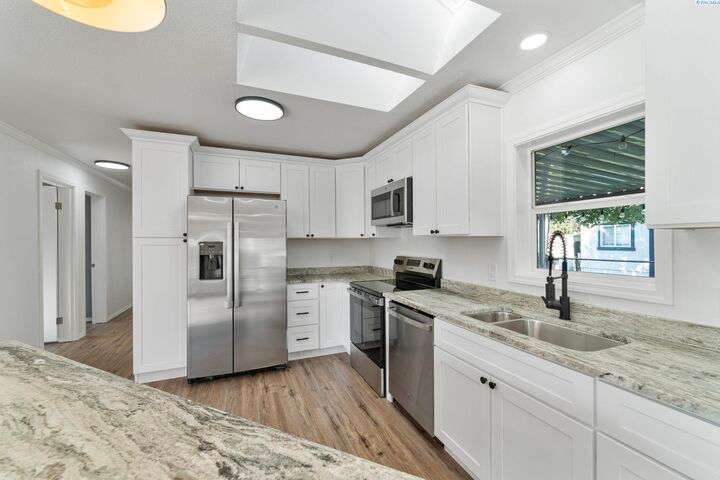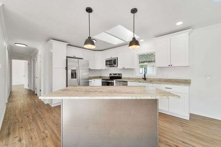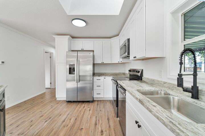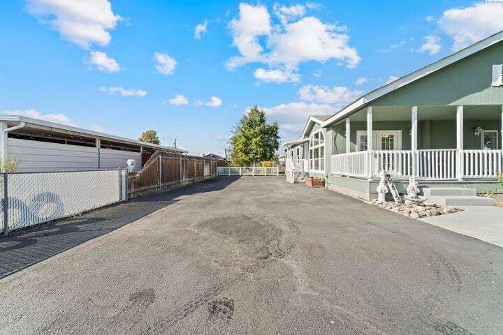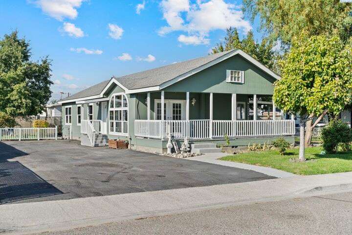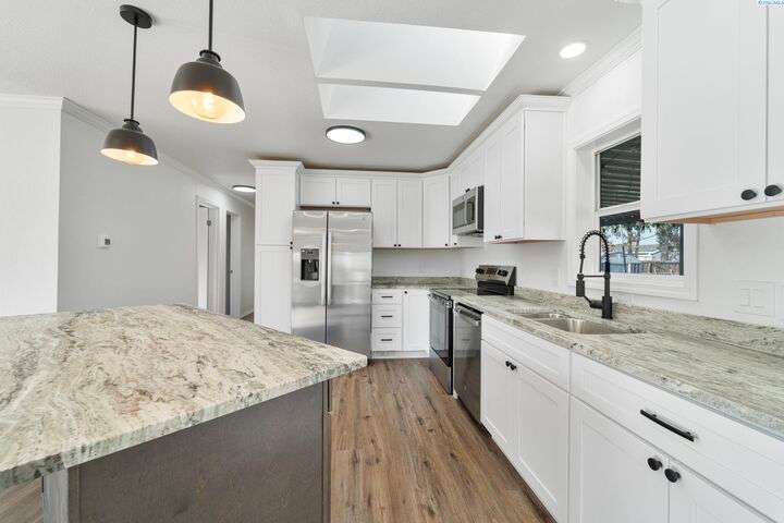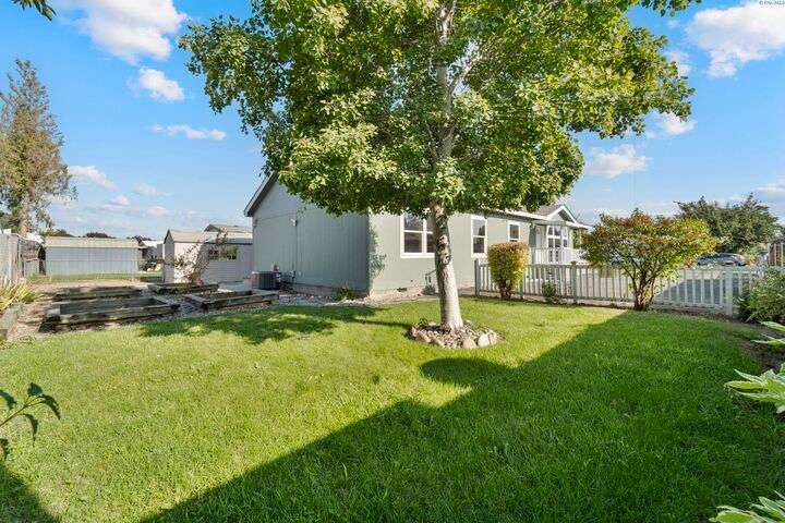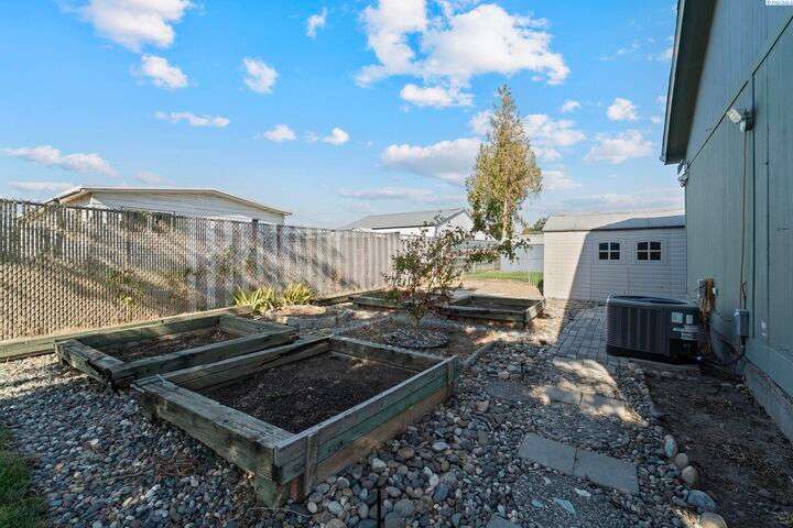 MLS# 286700 Welcome to this beautifully updated 3-bedroom, 2-bathroom manufactured home on its own lot, just minutes from the Columbia River and highway access. Built in 2005, it combines comfort, style, and functionality. Step inside to a bright, open living area with large windows and french doors that lead to a covered front porch. The kitchen is both stylish and functional, featuring marble countertops, a central island, newer stainless steel appliances, and all new cabinetry. Luxury vinyl plank flooring flows throughout the home. The primary suite boasts a walk-in closet, dual sinks with marble counters, a bathtub, and a separate shower, filled in natural light from a skylight. Down the hall, you’ll find two bedrooms and an updated bathroom with a newer vanity, and modern fixtures. A dedicated utility room adds convenience, and a newer HVAC system keeps the home comfortable year-round. Step outside and enjoy the low-maintenance backyard with four raised garden beds, a cozy fire pit, and shady trees. A detached shed gives extra storage, and the extended driveway provides plenty of parking. This home is move-in ready! Don’t wait-book your tour today!