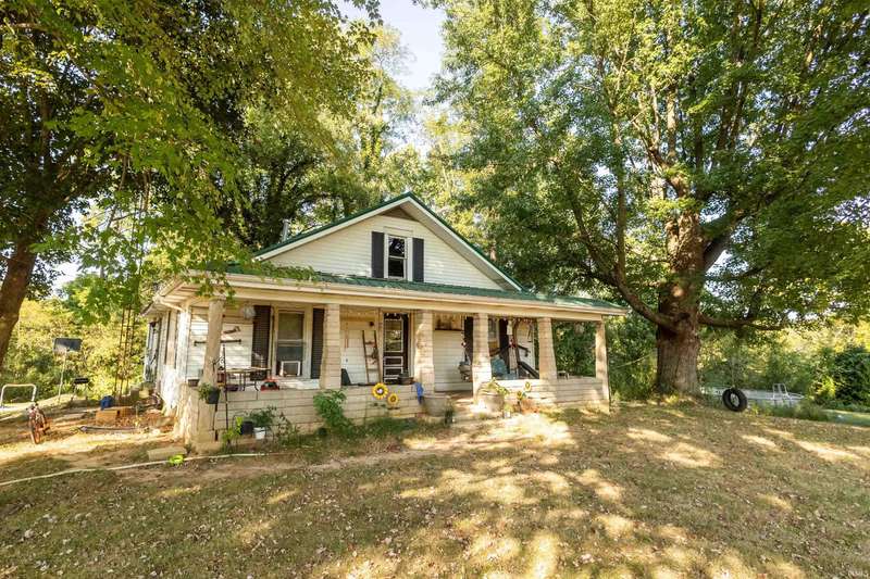 WELCOME HOME to your THREE bedroom, TWO bathroom one story sitting on 6.54 acres of partially wooded land. Step inside through your covered front porch and into your front door to be greeted by your spacious living room which flows straight into your kitchen. To the right of your living room, you will find your two bedrooms and a full bath while the kitchen and dining area will be on your left. To the right of your kitchen, you will find your master bedroom and your second full bathroom. Step outside to enjoy the scenery of beautiful mature trees. Utilities available are: Duke Energy and North Lawrence Water. Come checkout this adorable and affordable home with plenty of acreage today!
