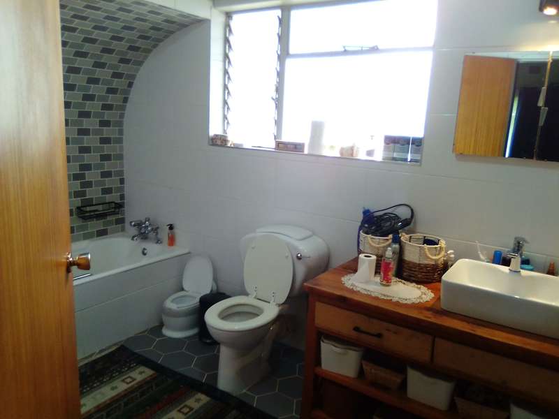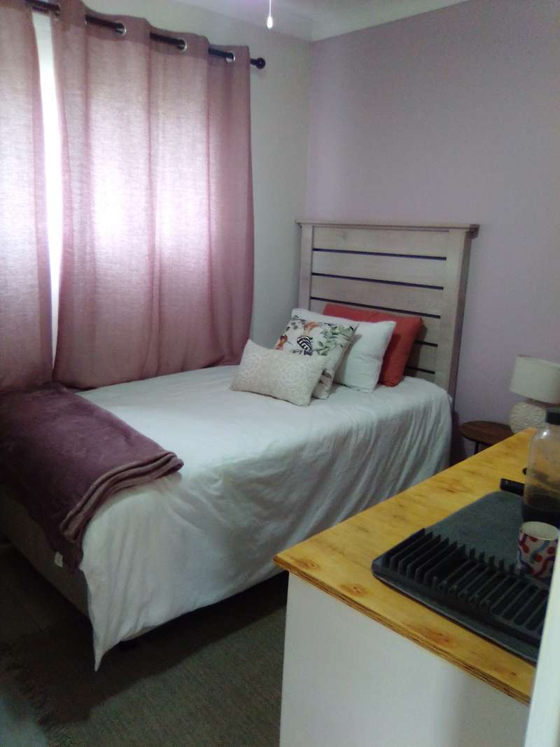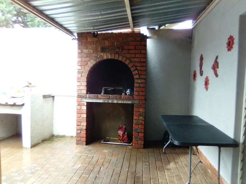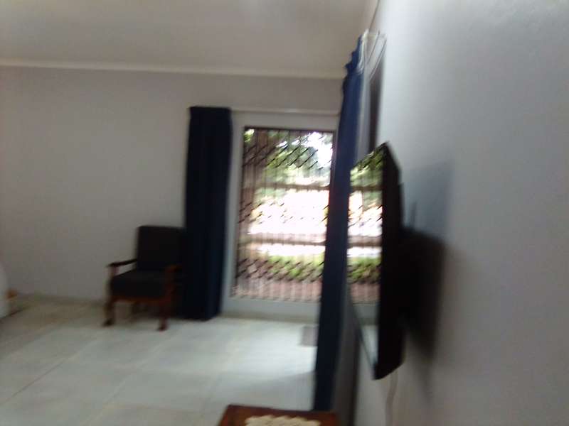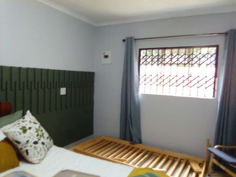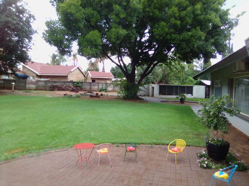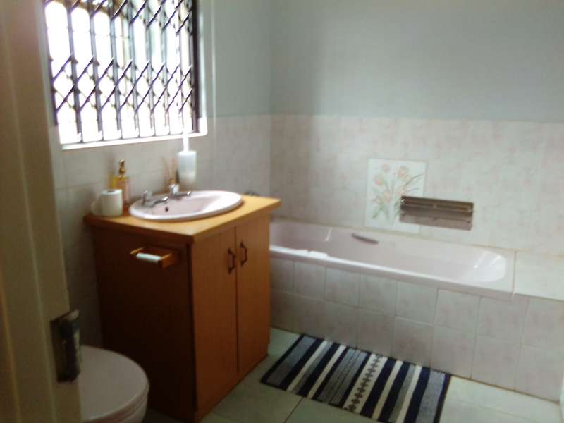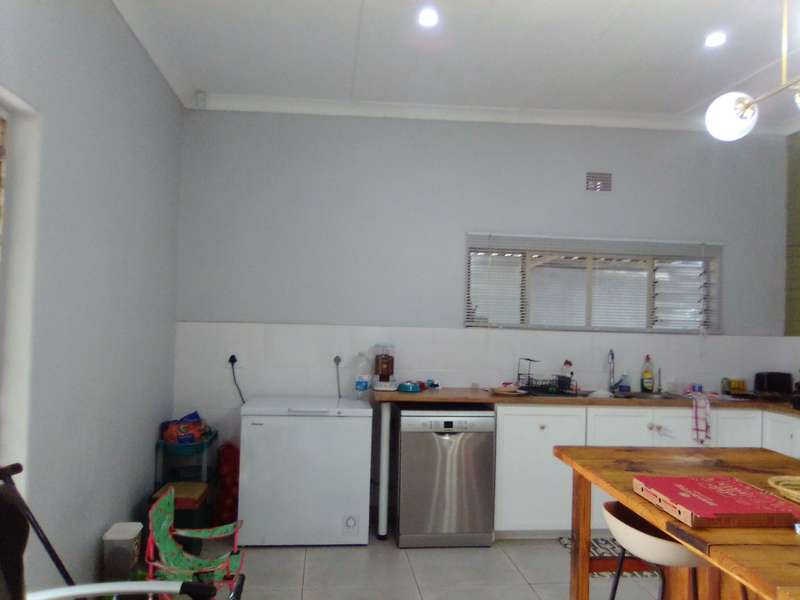 Entering the property into a entrance wall on the left side you enter a living area in to a on bedroom flat with a kitchen bath room lounge and bedroom on the right side you find a passage on the left side a spacious lounge with a door to the outside and a sunroom/entertainment area . on the right the dining room going into the kitchen with cupboards stove and a separate wash up at the kitchen side leading into the garages. There is 4 bedrooms with cupboards two bedrooms with aircons and to with ceiling fans an en - suite bathroom with bath basin and toilet at the main bedroom and a guest with a shower bath and basin with a separate toilet Outside the kitchen to the back yard is a built braai Two bachelor flats each with there own bathroom Double garage an a tandem garage electric fencing 2 boreholes of witch one is equipped and one without a pump There is two separate entrances at the garages and the other one at left side going to the flats a electronic gate and garage doors.