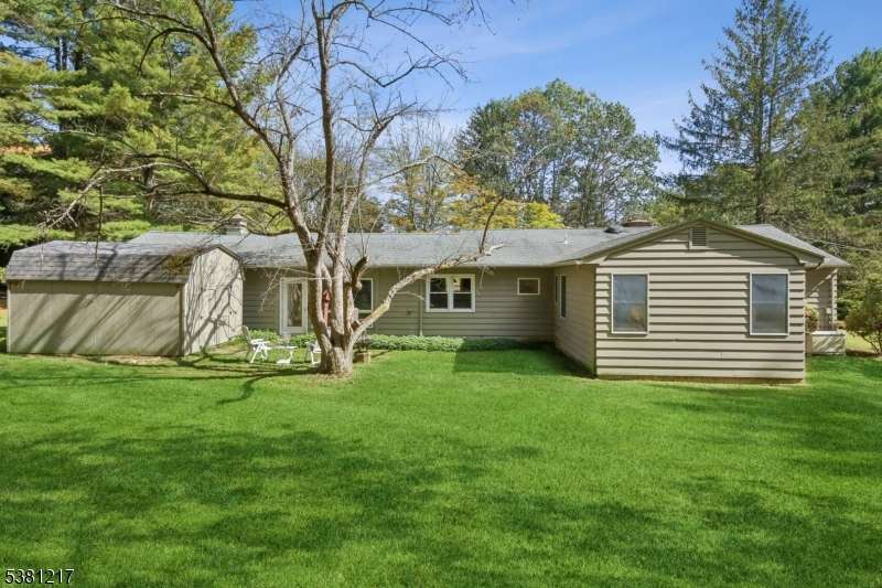 This charming three-bedroom, two-and-a-half bath ranch sits on three private, level acres in a picturesque setting. A spacious living room with gas fireplace and hardwood floors creates a warm, light-filled welcome. The front-to-back kitchen with breakfast area features shaker-style cabinetry and property views, opening seamlessly to a sunlit dining room with access to both the front and rear yards ideal as a dining area, lounge, or wonderful sunroom.The primary suite offers hardwood floors, a private bath with stall shower, a walk-in closet, and an additional double closet. Two additional bedrooms share a hall bath with a shower-over-tub, while a first-floor laundry and powder room add convenience.The lower level expands the living space with a recreation area anchored by a wood-burning fireplace. An attached two-car garage, generator, large shed and freshly painted interiors further enhance the home's appeal. Outdoors, the level acreage provides the perfect backdrop for recreation, entertaining, and everyday enjoyment.76 Ionia Road blends comfort and nature with Mendham Township's renowned Blue Ribbon Schools, the International Baccalaureate program at West Morris Mendham High School, and easy access to nearby Peapack-Gladstone, Far Hills, Bernardsville, and vibrant Morristown with Mid-Town Direct train service to Manhattan.