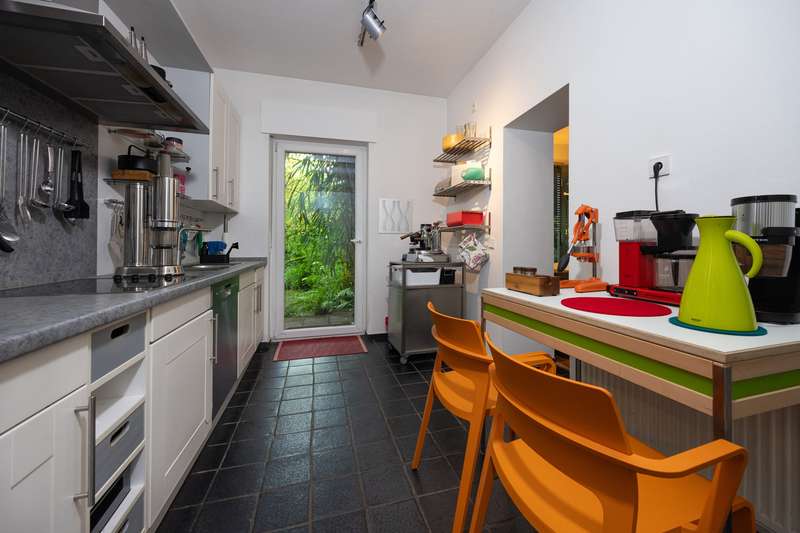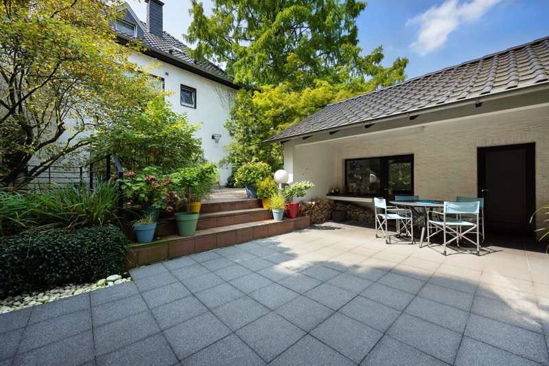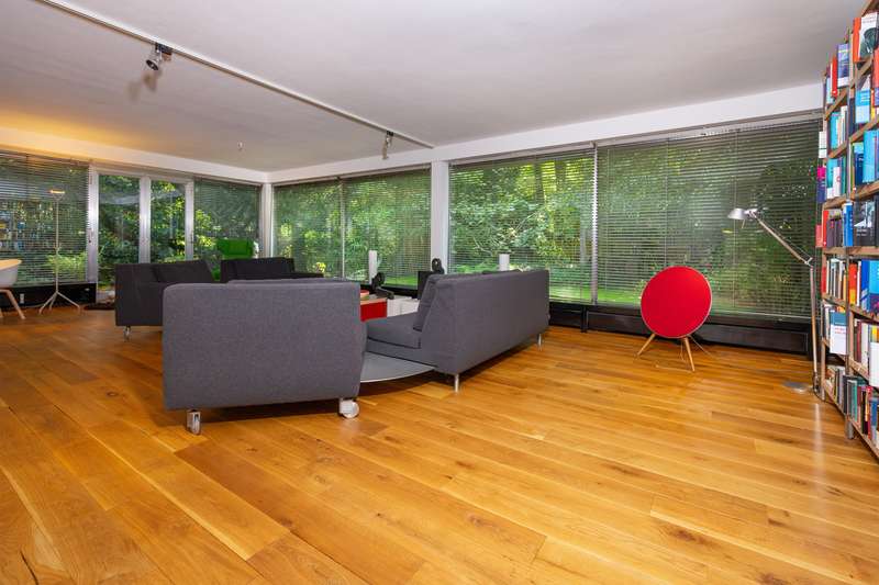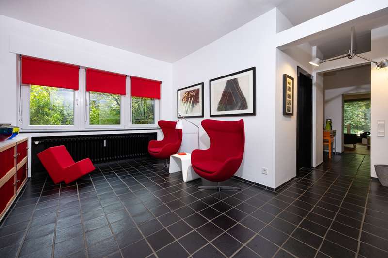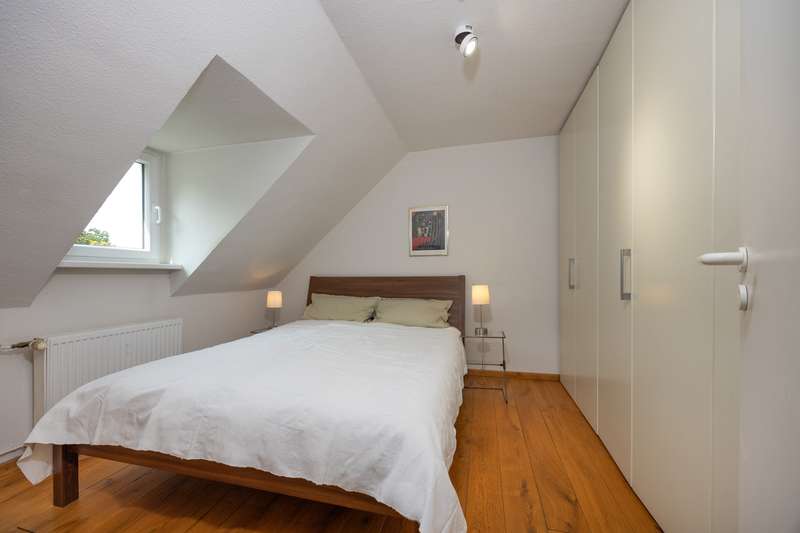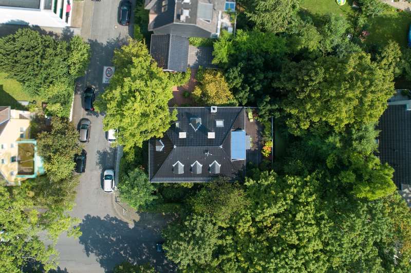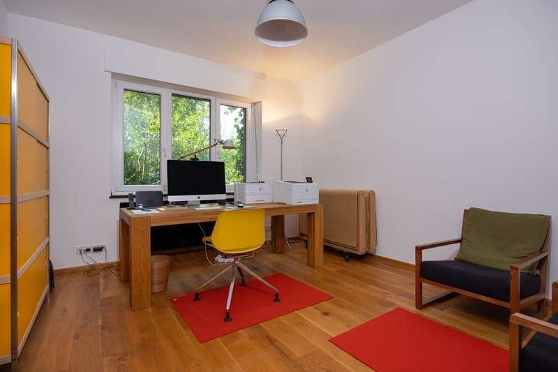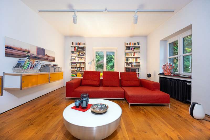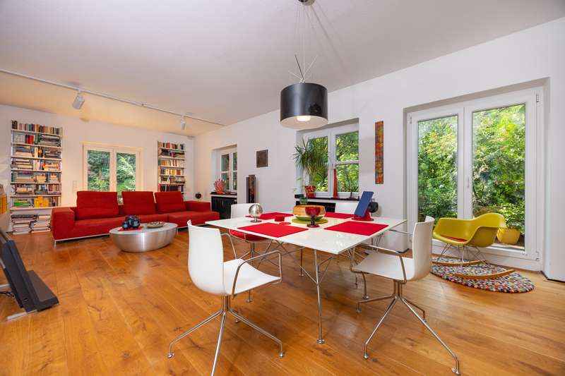 The spacious villa from 1938 was built in solid construction and offers you a total area of approx. 340 m². This extends over a total of three apartments, offering a wide range of possible uses. Each apartment occupies a full level of the house, providing privacy and comfort. Three separate residential units would be just as conceivable as a combination of living and working or intergenerational living. The building fabric of the classic villa is solid and, thanks to modernizations and renovations, the building is now in a contemporary condition with high-quality fittings. Comprehensive measures were mainly carried out between 2008 and 2012. The roof was extensively renovated and many windows were replaced (some with triple glazing). The surfaces were also refurbished. The focus here was on a sustainable choice of very high-quality materials, so that the villa has an elegant and upscale interior. On all levels, for example, there is a high-quality real wood parquet floor - French oak - laid as a floating floor. The first floor with its approx. 158 m² is currently used as an office and seminar area. The entrance offers a beautiful fireplace and provides access to the other rooms. The extension is spacious and open-plan. "Walls of glass" create a special kind of living experience that is second to none. The greenery of the garden is present on all sides. The first floor can be used as a large apartment with a living room and two adjoining bedrooms without much effort, as there is a kitchen and a bathroom. The second floor is currently used by the owners themselves as a self-contained main apartment. It offers approx. 102 m² of living space over three rooms, two of which are separate bedrooms. The bright living room of just under 38 m² has access to the roof terrace. This is another approx. 55 m² in size. On the third level, there is another small apartment with two and a half rooms in the attic. Here too, a private sunny balcony offers the opportunity to relax and enjoy the sun. The house sits on a plot of around 1,011 m². The outdoor area also follows an individual and consistently implemented concept: the unique design of a "black garden"! There are three sequoia trees on the property, three-metre-high bamboos and geometrically laid out paths leading to a pleasant pond area. Another path leads you around the entire house and to the side access - practical for maintaining the green oasis. All this gives the garden plenty of cool areas in summer. As a counterpart to the black garden, there is a large terrace with plenty of sunlight and ample space for sunbathing. Here you will find a solidly built garden shed, which is available for sociable hours outdoors and offers space for parties and guests. There is also a sun terrace on the second floor and the balcony of the top-floor apartment. The house offers plenty of additional space in the basement and side extension. A low-temperature swimming pool is currently located here. There is also a sauna in a small wellness area. Further cellar rooms with sufficient space and storage space are also located on this level. The house also has a large double garage with up to four parking spaces and sufficient space for bicycles and winter tires. The location of the property is ideal, with good connections both regionally and nationally. Overall, this villa offers an attractive home for discerning buyers with its wide range of possible uses, generous space and modern furnishings. The outdoor area offers you a "green oasis" in the city. A special and colorful modern interior design completes this unique building. Arrange a viewing appointment today to see the benefits of this property for yourself. We will be happy to provide you with further documentation and photographs on request.