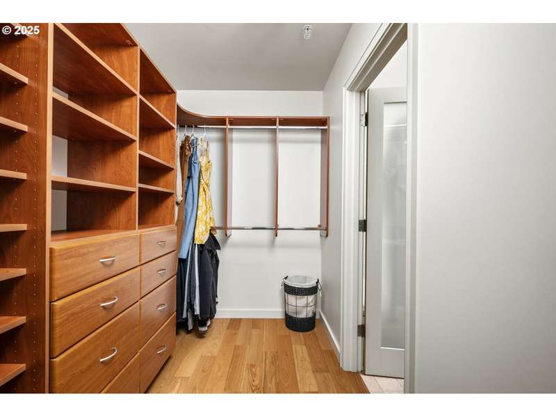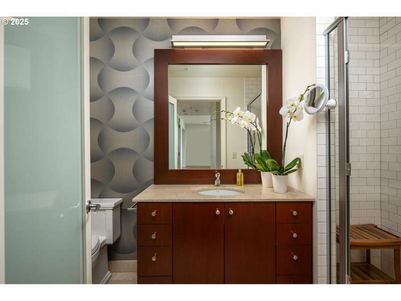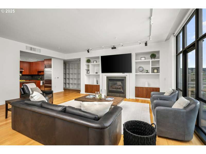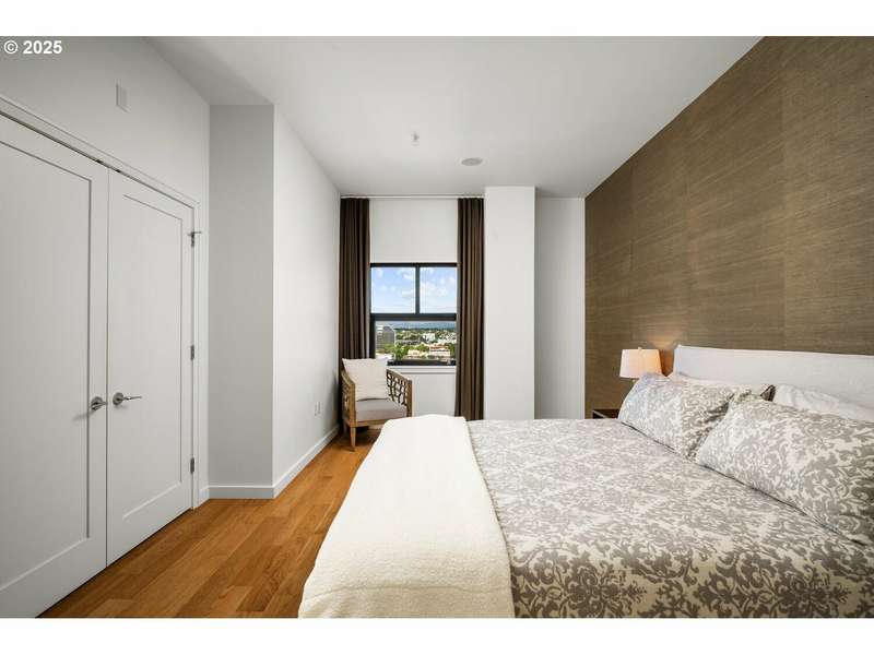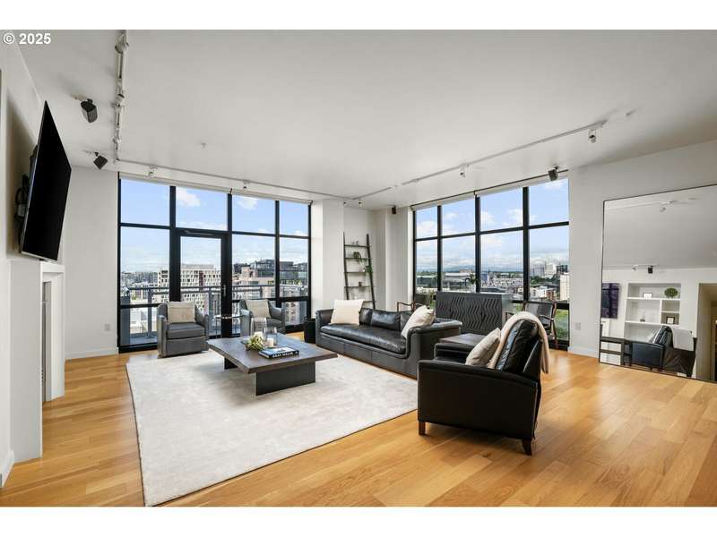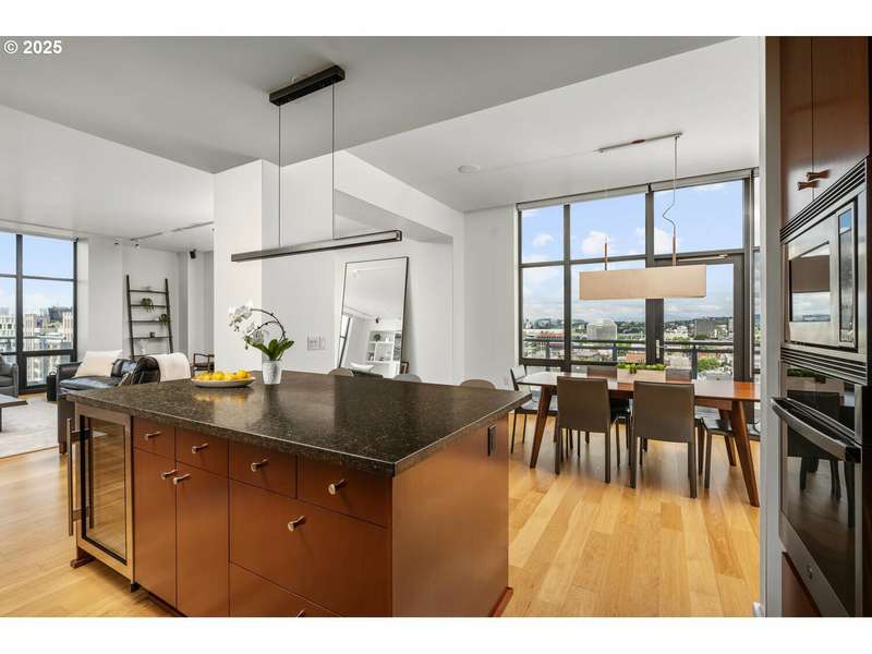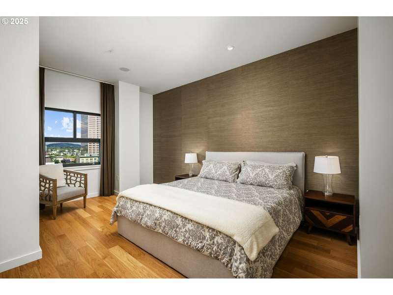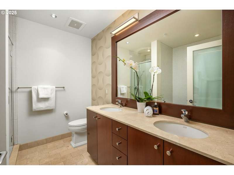 The Henry Condominiums in The Pearl District's Brewery Blocks is a testimony to the vision of pursuing architectural excellence while achieving GOLD-level LEED sustainability. This refined NE corner unit features stunning views of Mt Hood, Mt St Helens, Mt Adams, City lights, the Fremont Bridge and the Willamette River. Floor-to-ceiling windows frame the cityscape and nature's majestic mountains acts as your daily backdrop. High quality finishes include oak floors, built-in wood bookcases, Murphy bed and desks. Sleek kitchen features a 5 burner gas Viking cooktop, built-in Subzero refrigerator, wine cooler, Bosch dishwasher, Dacor oven and slab granite topped island. 2 outside viewing decks. Neighbors include Powell’s Bookstore across the street, coffee shops, award winning restaurants, Deschutes Brewery, Whole Foods, Pacific Northwest College of Art . Next door is a restored Armory now hosting Portland Center stage shows as The Gerding Theater. Jamison Square fountains and North Park blocks with shady trees and benches are nearby. Walk Score 100, catch the street car to NW Portland or take MAX to the airport. Garage parking includes 2 deeded tandem spots. Concierge service desk in the lobby and a walk score rating of 100 contribute to a convenient and luxurious lifestyle.