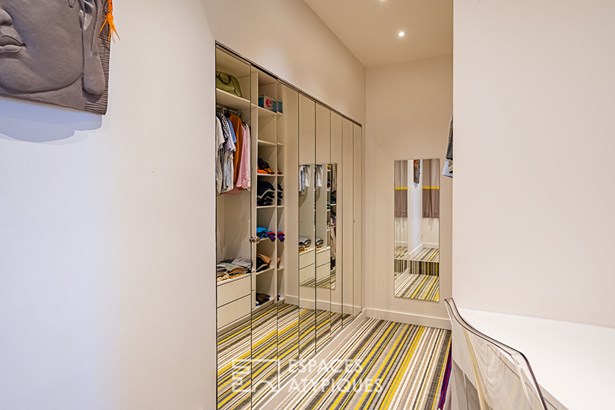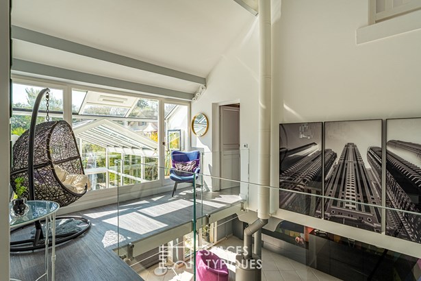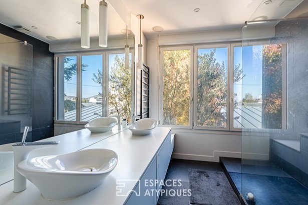 Completely redesigned in 2000 to expand with a very large veranda, this house now benefits from a 92 sqm living room, air-conditioned, with well-defined spaces, living and dining room under the glass roof, TV lounge and US kitchen with its pantry/laundry room. The light provided by the glass roof and its high ceilings make it a room with generous volumes, which opens onto the terrace and the landscaped garden.