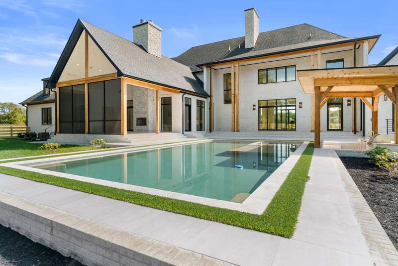 Escape to your own private oasis on 5 serene acres in beautiful College Grove. This stunning property offers a perfect blend of luxury, comfort, and functionality -- ideal for relaxing or entertaining all summer long. Enjoy a thoughtfully designed floor plan with abundant main-level living, including two spacious bedrooms, a cozy family room, a versatile library/office, a grand great room, and a private exercise room. The heart of the home is a chef's dream kitchen featuring double islands, a butler's pantry, and a dedicated wine room. Step outside to your tranquil backyard retreat, complete with a large screened-in porch (retractable screen on pool side), pool bath, and a sparkling pool -- perfect for sunny days and evening gatherings. Upstairs, you'll find generously sized bedrooms each with private baths, a second laundry room for added convenience, and tons of attic storage space. Don't miss the 4 car garage! 9 1/2" Wide Oak Flooring, 2100 sq.ft. of pool decking, 3 steps from the porch to ground. This home truly has it all -- elegance, space, and peaceful surroundings. Make this summer unforgettable in your new College Grove sanctuary!