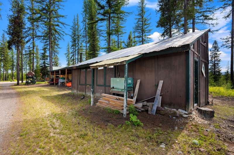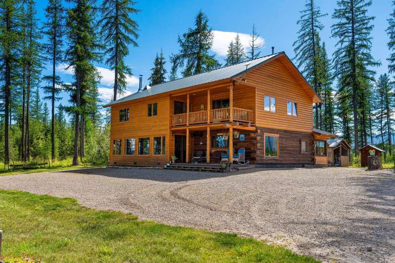 Pure Wilderness & Big Views on 20 Acres. Bordering Forest Service, this private 3-bed, 3-bath, 2,486 SF log-sided home offers a true off-grid lifestyle. Surrounded by towering larch trees and overlooking a seasonal pond, the property showcases Glacier Mountain views that feel close enough to touch. The home features warm wood finishes throughout, vaulted ceilings, a bonus room, family room, and a spacious living area. A portion of the original log cabin adds rustic charm. Enjoy granite counters, LVP flooring, a main-level primary suite, high end appliances, covered deck, balcony, enclosed porch, and outdoor sitting areas. A large garage/shop, pole barn, woodshed, and additional shop provide ample storage. Solar panels, generators, an inverter, and lithium-ion batteries ensure reliable off-grid power. Located just minutes from Tepee Lake and west of Glacier National Park, with abundant wildlife & outdoor recreation at your doorstep. You will love this property! Sold Mostly Furnished.