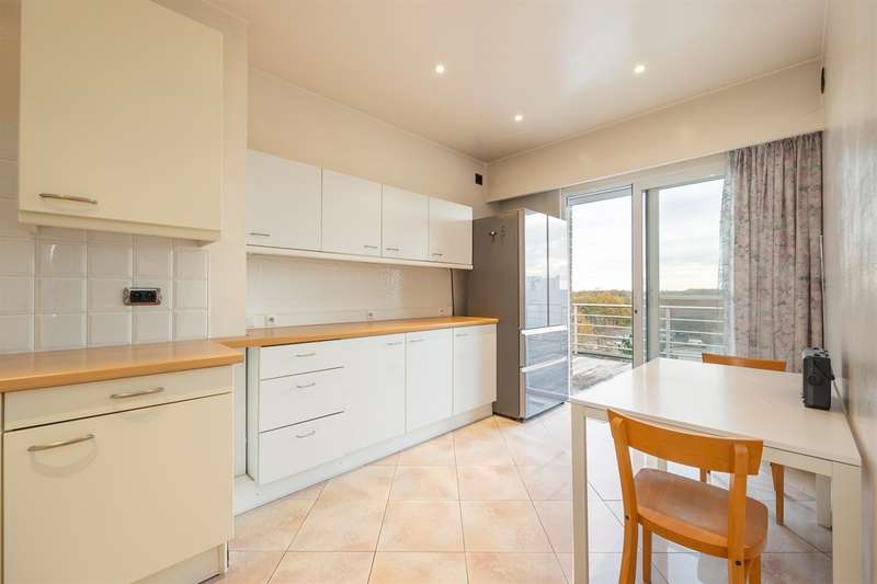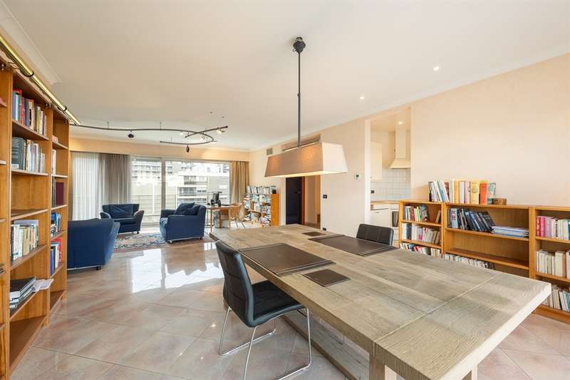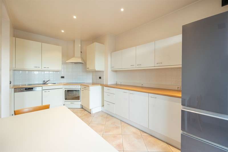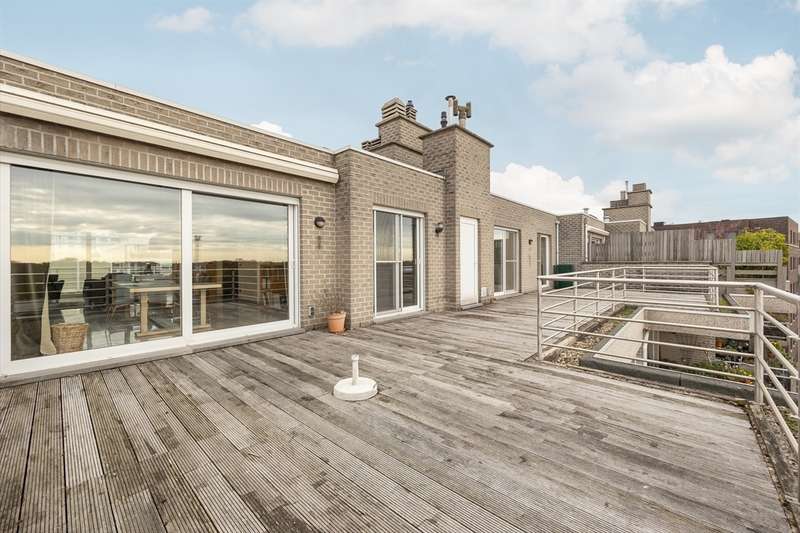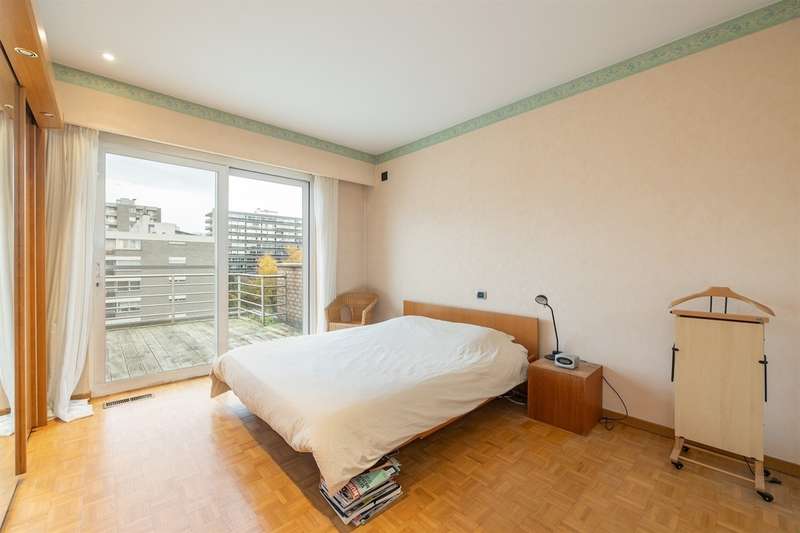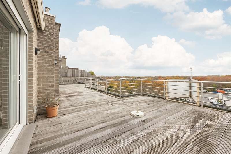 BERCHEM - Near Fruithoflaan: Superb penthouse with 3 bedrooms, 2 bathrooms, 155m² terraces and garage box. EPC label C. ; DESCRIPTION: ; On the top floor of this well-maintained and classy residence, you will discover this magnificent penthouse with unique terraces. Direct access to the flat via the lift with security door. Entrance hall with storage room. Very spacious and bright living and dining room (approx. 50m²). At the front, it opens onto a magnificent south-facing terrace of approx. 83m² with a sun awning and at the rear onto a west-facing terrace of approx. 72m², both via ceiling-high sliding windows. Fully fitted kitchen (approx. 13m²) with cupboards and all appliances. The night hall gives access to 3 bedrooms and 2 bathrooms: At the rear, master bedroom (approx. 15.5m²) with adjoining bathroom with bath, washbasin and toilet. This opens onto the rear terrace. At the front, 2 bedrooms of 14.5m² and 13.5m² and shower room with toilet. On the front terrace there is a storage room with the individual central heating boiler. ; Private storage room next to the lift in the basement. Garage box with automatic door at €45,000. ; SPECIAL FEATURES: ; * Unique terraces totalling approx. 155 m² * Beautiful light * Electricity is compliant * Very well located near all shops, access roads and public transport * Electric shutters at the rear. * Sun awning at the front * Monthly service charges approx. €200 ;