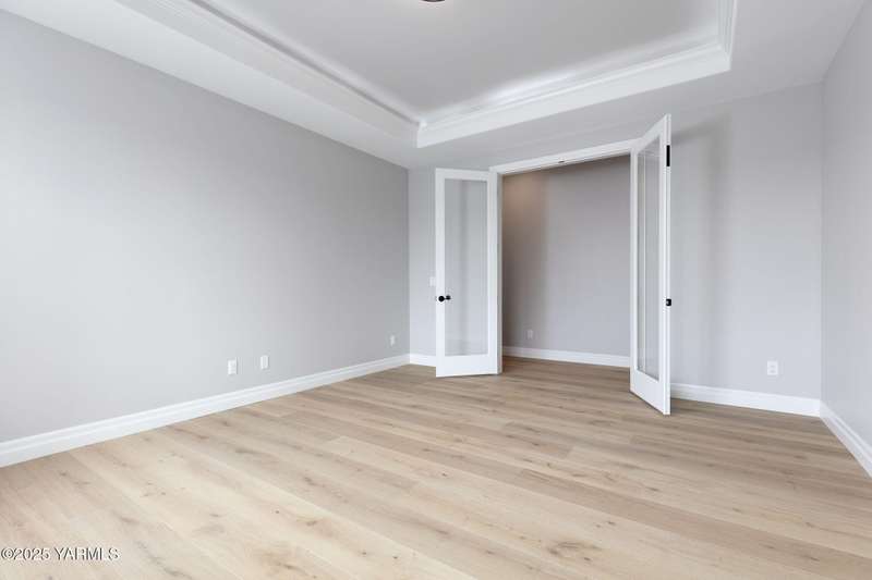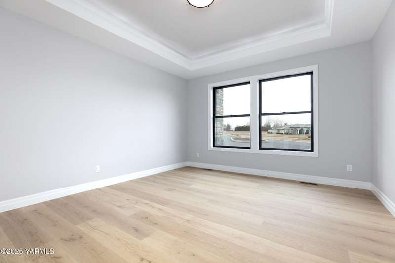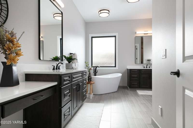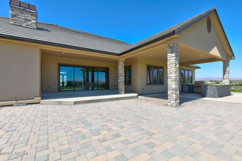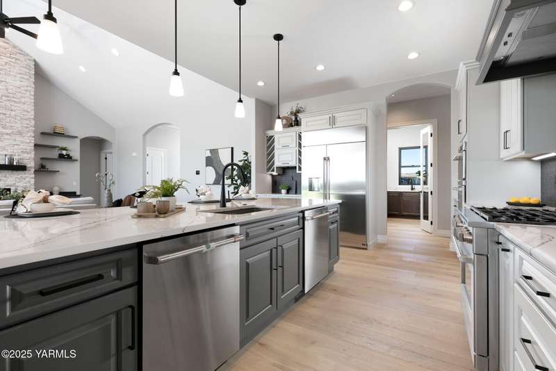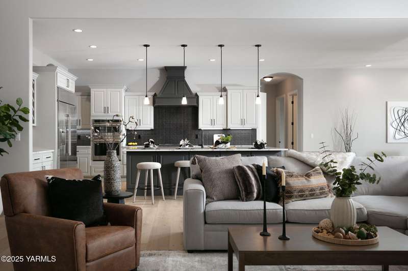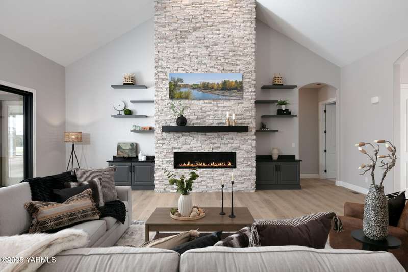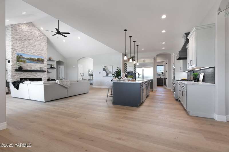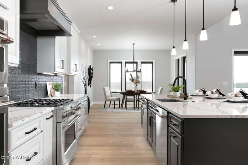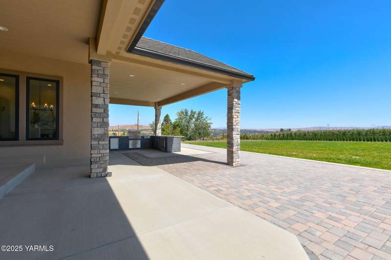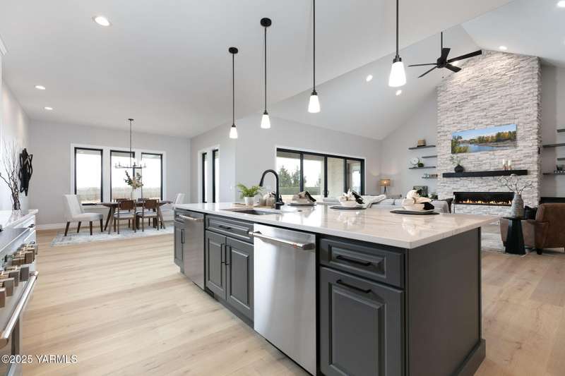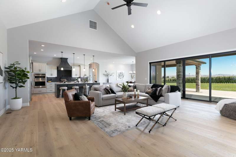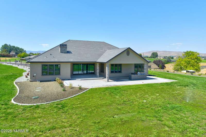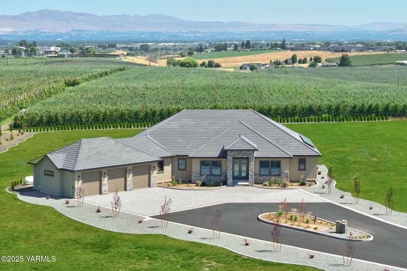Discover modern luxury and elegance in this meticulously crafted 4,200+ sq ft home, situated on 3.18 acres within an exclusive West Valley gated community. Thoughtfully designed for both entertaining and everyday comfort, this home welcomes you with a vaulted foyer and an expansive open-concept living area anchored by a stunning floor-to-ceiling gas fireplace. The gourmet kitchen is a chef's dream, featuring granite countertops, top-of-the-line stainless appliances, double ovens, and double dishwashers, all complemented by a butler's pantry, perfect for meal prep and storage. A formal dining area and dedicated home office/den offer additional functional and elegant spaces. The luxurious primary suite is a serene retreat with a spa-inspired en-suite bathroom, including a custom tiled walk-in shower, soaking tub, dual vanities, and a generous walk-in closet. A junior suite with a private en-suite bath ensures comfort for guests or multi-generational living. Outside, the possibilities are endless with expansive grounds, a covered back patio, and a fully equipped outdoor kitchen. Energy-efficient solar panels and a 3-car garage with an EV charging station add to the modern conveniences. With a tile roof and stucco siding for low-maintenance living, this property is both elegant and practical. Located in a secure gated community, this one-of-a-kind home offers unparalleled luxury, comfort, and the space to bring your lifestyle dreams to life.
