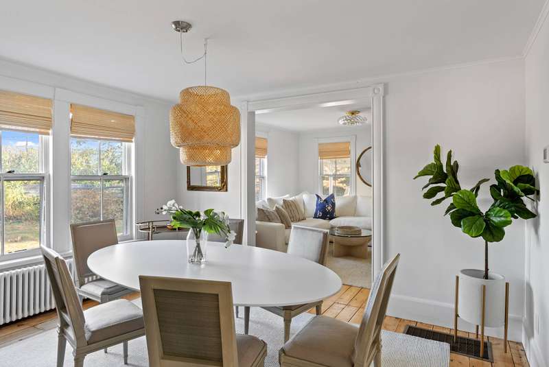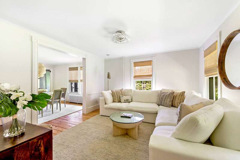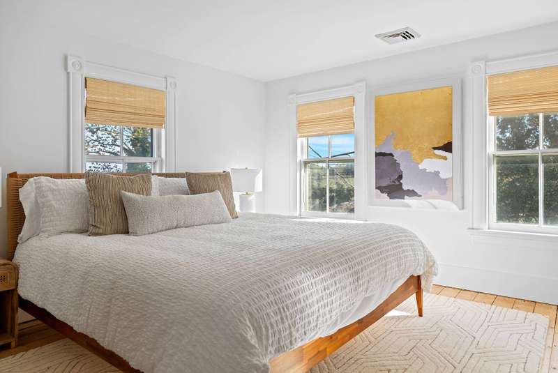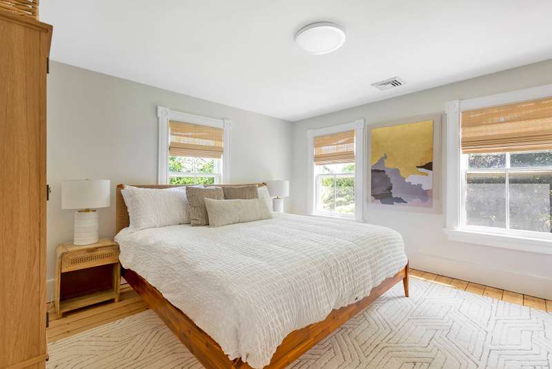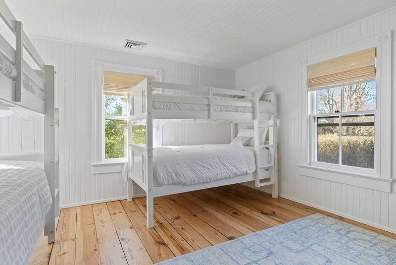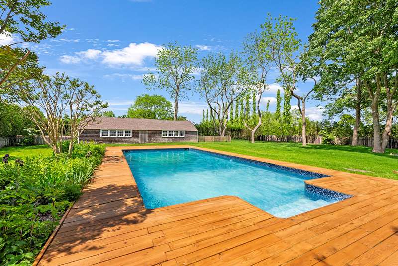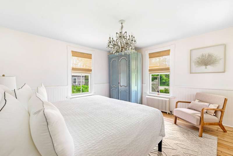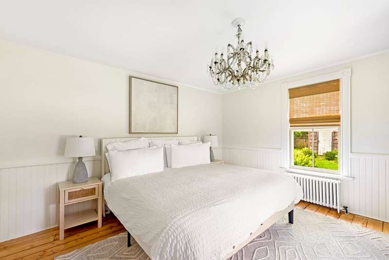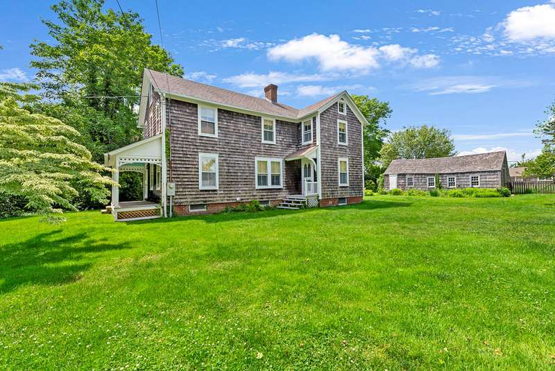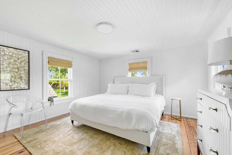 Rental Reg. #RP 240585 New owners on this turn of century farmhouse in Bridgehampton North. Surrounded by pastures and tree nurseries, this shy acre property is ready to be enjoyed for summer 2025! Enter the fully fenced yard and pass koi ponds and flower beds to the screened in back porch and covered front porch. This home, totally renovated by current owner in 2024, offers 5 BEDROOMS and 3 FULL BATHS - plus HEATED POOL, TONS OF PARKING & HUGE PRIVATE YARD! The first floor offers a bright & airy Living room, spacious Dining room, a huge kitchen with solid surface counters and stainless appliances, access to a screened in back porch, an entry foyer, a King size first floor bedroom with private entrance, a full bath, laundry room and home office. The second floor houses the Master Bedroom with King sized bed, an en suite bath and corner exposure, as well as three additional bedrooms (one King, one full and one with a kids room with 2 sets of bunkbeds) as well as a third full bath & walk in linen closet. A MASSIVE, fenced in, flat & sunny yard surrounds the decked 20 x 40 heated pool area. Off the Kitchen area is a picturesque outdoor dining area with seating for 8, gas grill, a separate seating area with firepit and serene Koi pond. Pets on a case by case basis with additional pet fee. Listing ID: 911695