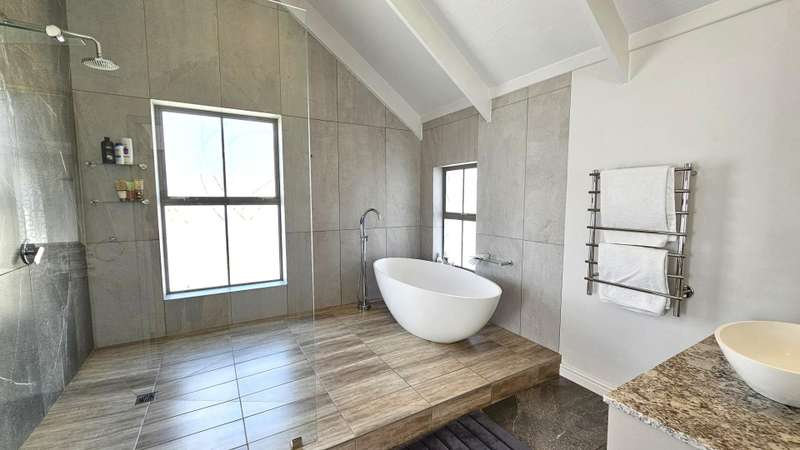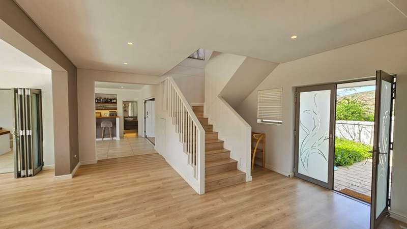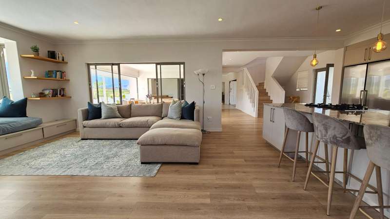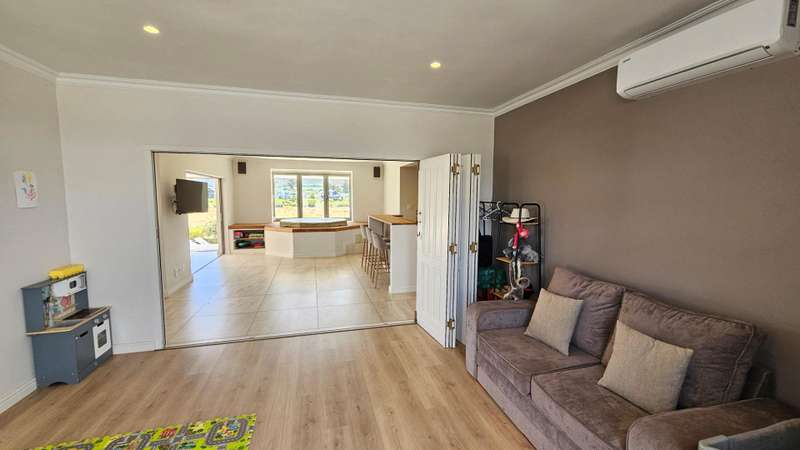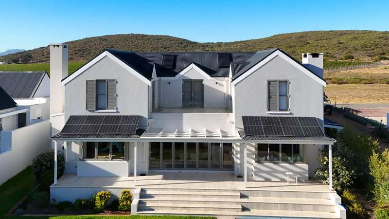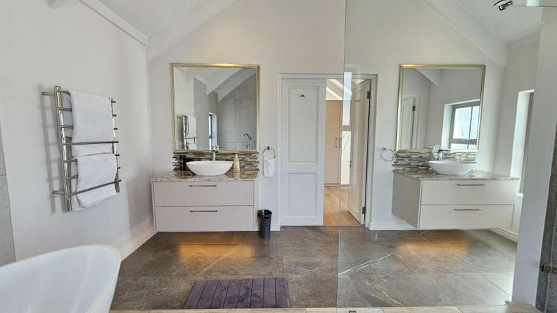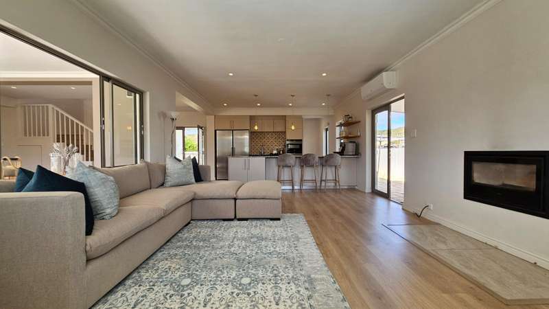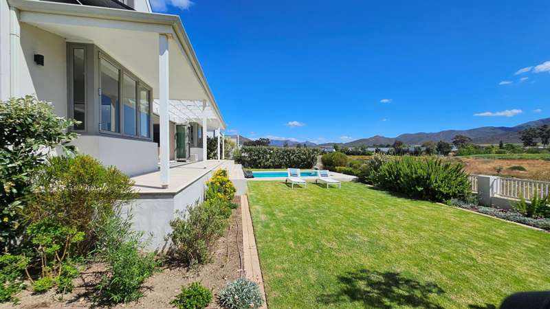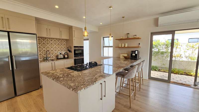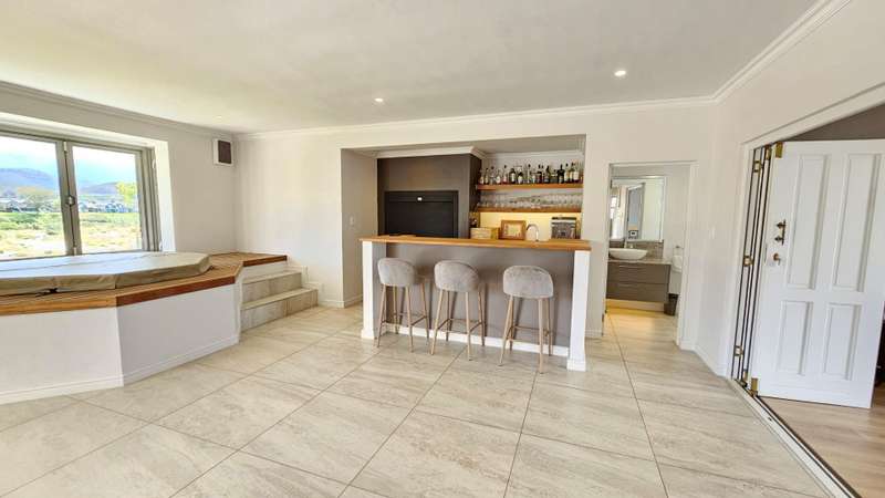 EXCLUSIVE MANDATE: This distinctive modern home, set within the 24-hour gated Silwerstrand River Estate, captures sweeping views of the Langeberg Mountains and Breede River the moment you step inside. The ground level offers light-filled, open-plan living spaces designed for easy flow and modern comfort. The lounge features a built-in window seat where you can enjoy your morning coffee while soaking in the north-eastern views. The dining area extends seamlessly to the garden and sparkling swimming pool, creating an all-season space for family and friends. The entertainment area is a true showpiece, complete with a built-in braai, bar counter, jacuzzi, and clever ice bucket slots alongside the sliding windows assuring the views are always center stage. The striking, modern kitchen is fitted with premium Siemens appliances and includes a separate scullery and pantry for convenience. A versatile air-conditioned bedroom on the ground floor doubles perfectly as a home office or children?ÇÖs playroom, with a bathroom nearby. Upstairs you?ÇÖll find three bedrooms and two bathrooms, two of which open onto a private patio. The main en-suite impresses with soaring double-volume ceilings and a beautifully designed open-plan bathroom. This home is equipped with an inverter, solar panels and battery backup system, automated irrigation, a fireplace, Fibre connectivity, and guest parking. Experience the best of estate living combined with modern luxury and timeless design in this exceptional Silwerstrand home.
