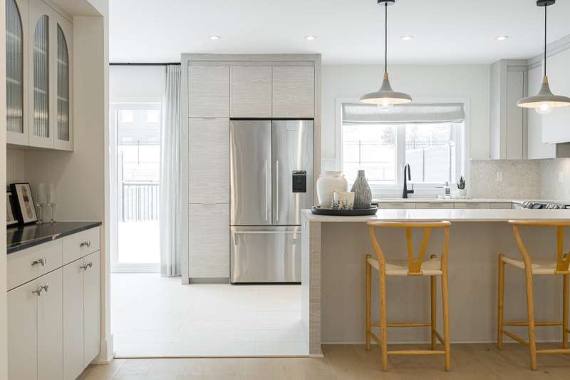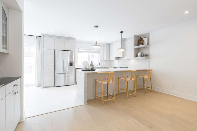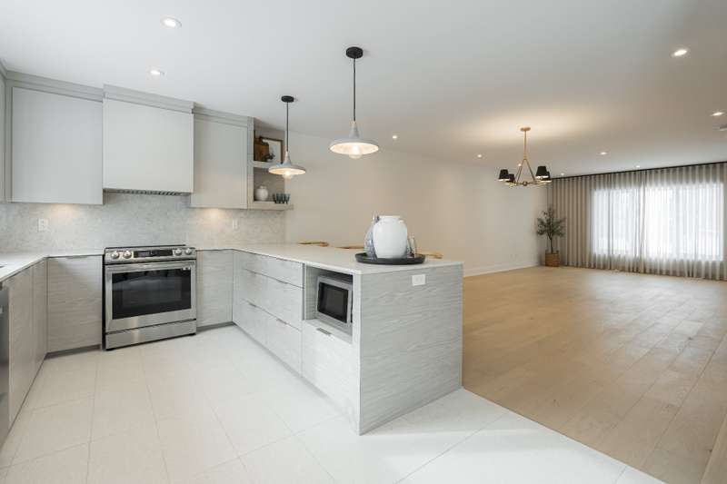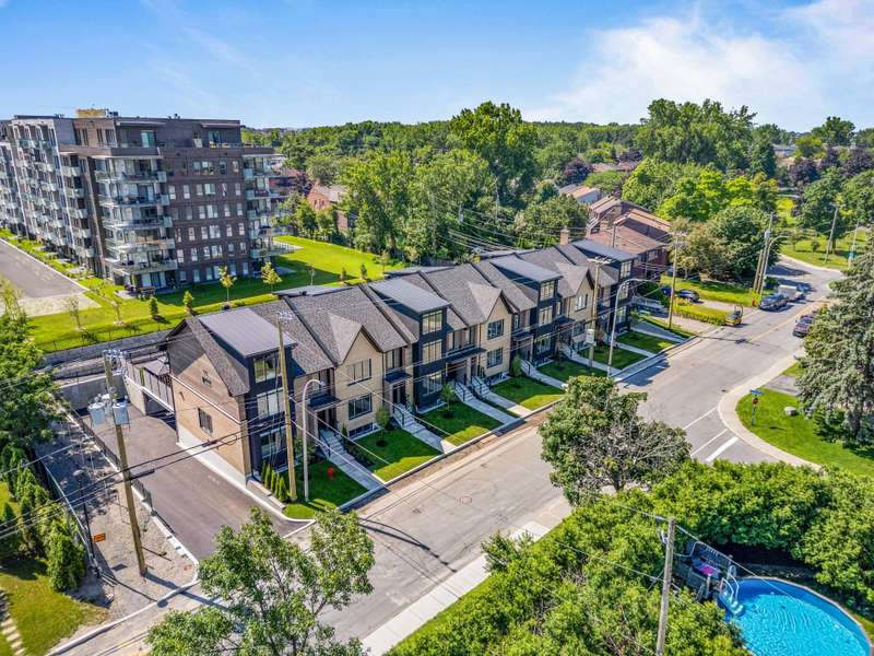 Newly constructed executive townhome designed with care and finished with impeccable precision and elevated finishes. Located in a wonderful family-oriented community, a quick 10 minute walk to the future Pointe-Claire REM station and under 10 minute walk to Fairview mall/bus terminus. Hermitage Park is only steps away! Offering 3 bedrooms, 3rd floor bonus room, 3 full bathrooms plus powder room and spacious private 2-car garage. Central heating & cooling. Expansive open-concept main living space with oak floors, impressive kitchen, desk area and coffee/wine bar. Bright south-east facing backyard with low maintenance lawn and huge terrasse!