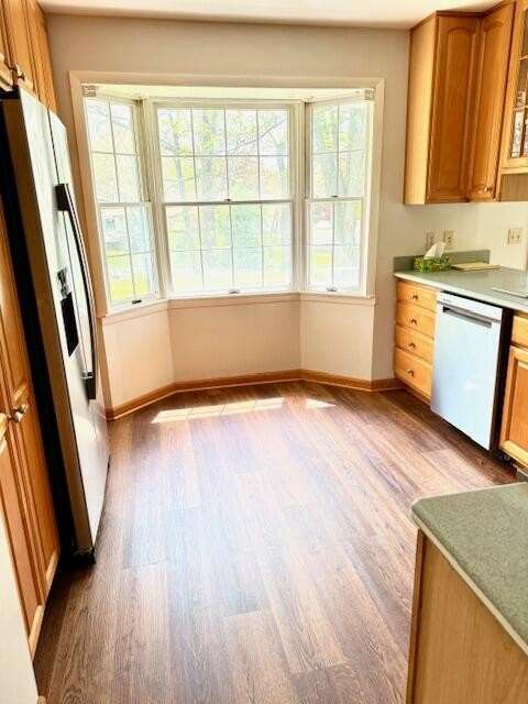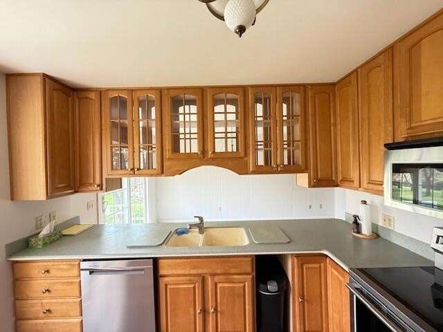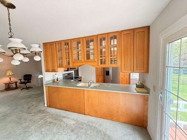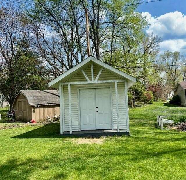 Just the facts. Estate sale, As Is of well-maintained bilevel in established Lowell subdivision. Enter front door and up the steps to expansive carpeted living room with gas fireplace. Living room flows to dining area that overlooks the deck to the back yard. At dining room notice the see through cupboards into the kitchen. Kitchen has refrigerator, microwave, new dishwasher, new electric stove and Corian-like counter tops and built in cabinetry. Kitchen bay window overlooks back yard. Down the hall to Jack and jill full bath with tub-shower combo and entrance into main bedroom with two closets and new carpeting. S.E. bedroom also has new carpeting, and the third bedroom has hardwood flooring [estate says there is hardwood under the new carpet in the other two bedrooms]. Next go downstairs to huge, newly carpeted family room with gas stove. Pass the 1/2 bath on the way to the den with woodburning stove. Also on the lower level is the laundry room with washer, dryer, laundry tub and so many storage drawers and counter space for folding clothes. From laundry room are steps up to the 2-car heated garage with garage door opener and work areas. [Tools and equipment will be removed for auction.] From the garage is a door to the back yard and cute storage shed. Assessor notes that the upper level is 1,232 sq ft and lower level is 1240 sq ft with the property containing approximately 1/3 acre. Heirs have spent many resources fixing up and adding new carpet, flooring and some appliances.