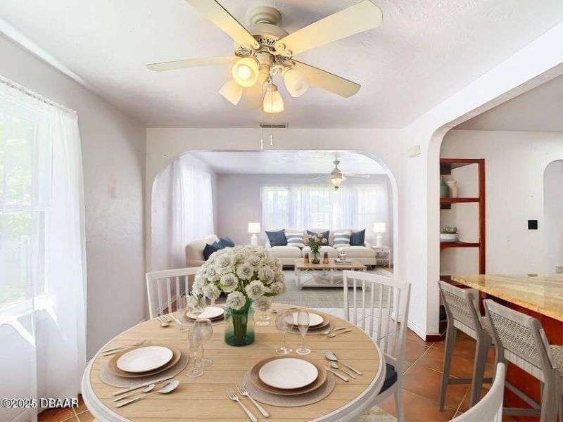 Adorable Beachside Bungalow-Steps from the Ocean! Welcome to this charming 3 bedroom, 2 bath home just two blocks from the Atlantic Ocean, nestled in the heart of the Seabreeze Historic District"with no HOA and a brand new roof scheduled for installation in mid-June! Step inside to discover tile flooring throughout and a fabulously updated kitchen complete with an island, granite countertops, solid wood cabinets, stainless steel appliances including a gas range and hood (yes, there's natural gas in this neighborhood!), a new refrigerator, and a new washer and dryer. It's a perfect space for entertaining or enjoying a quiet night in The home's layout is bright and inviting, and the private, fenced backyard offers a peaceful retreat"ideal for relaxing after a beach day or even adding a pool. The garage offers flexibility, whether you need a home gym, workshop, or just extra storage for your beach toys. Beyond the home itself, the location is truly special. You'll love the occasional ear early morning sound of ocean waves - a perfect backdrop for your morning coffee. Just a short walk away are favorite local spots like the Ocean Deck and Beach Bucket, where you can enjoy great food and ocean views. The quiet building across the street houses school administration offices, adding to the peaceful vibe of the neighborhood. Living here means you're just moments from sunrise walks on the beach, watching local fishermen, spotting dolphins and sometimes even a whale. Additional updates include a 2017 A/C system and tankless hot water heater, adding peace of mind and energy efficiency. Located in the heart of Daytona Beach, you're just minutes from shopping, restaurants, and all the activities that make this area one of Florida's most iconic destinations. (Some photos have been virtually staged. All measurements approximate.)
