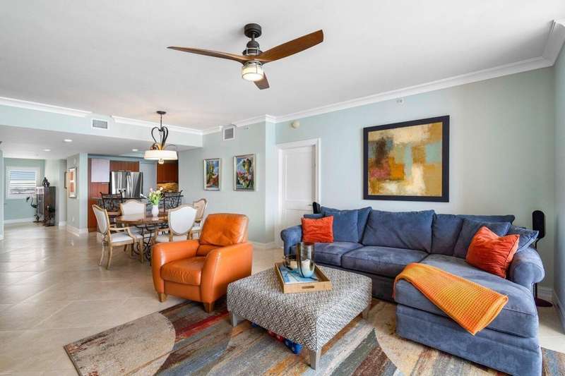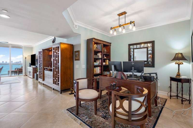 Beautifully updated 14th floor END UNIT w/2BR + den, 2BA overlooking the Intracoastal, impact glass, semi-private elevator access. Open concept, split floor plan with spacious owners suite w/his & her walk-in closets. Amazing primary bathroom w large walk in shower, glass enclosure, modern finishes with a spa like feel! New doors throughout, neutral paint & fully tiled. plantation shutters & a newer A/C unit! Assigned garage parking & climate-controlled storage unit. 24/7 manned gate, valet. Newly renovated rooftop oasis w/pool, spa, BBQ areas, tennis/pickleball. Walking path w/gazebo, clubhouse, billiard room & fitness center. Adjacent marina w/dry docks available, minutes to ocean; no fixed bridges! Pet friendly & social community. Seller will consider 50% seller financing, up to 3 yrs