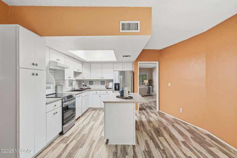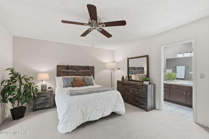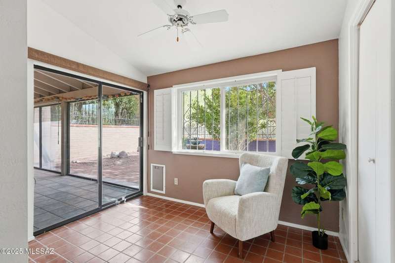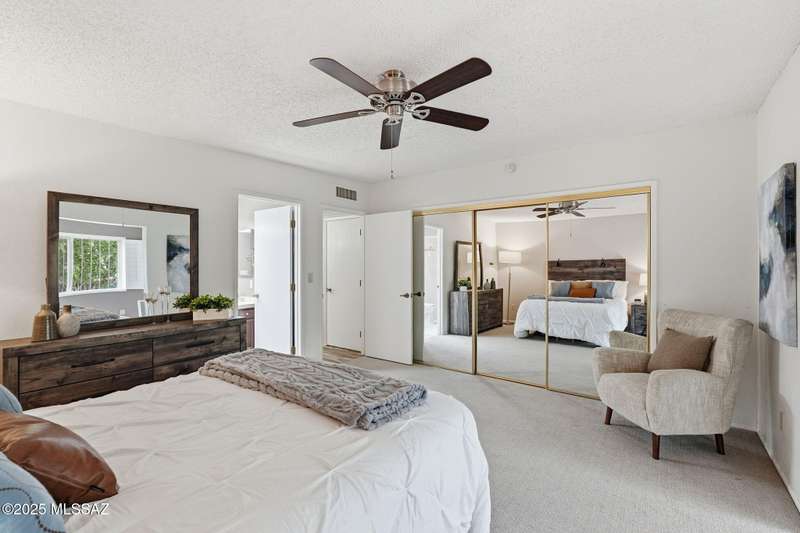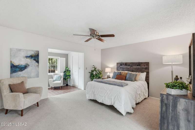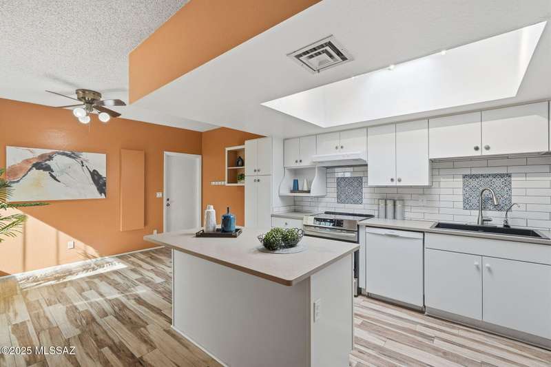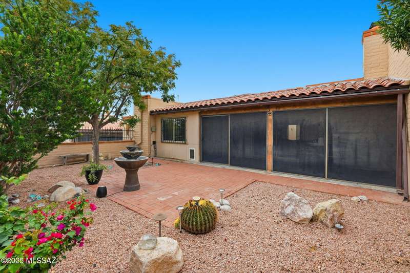 You will love this peaceful and private townhome in the heart of Fairfield. Located on a quiet cul-de-sac. Perfect part-time or full time home. A delightful front courtyard and back covered patio sets the stage for easy desert living. Beautifully updated kitchen w/white cabinets, leathered quartz counters & large skylights. Updated baths with Travertine. Bonus room off primary bedroom - not included in square ft - could be office, sitting room or exercise space. Fireplace is wood burning - currently has electric insert. Neighborhood has 2 pools, 2 tennis courts. Welcome to Fairfield and your new home!