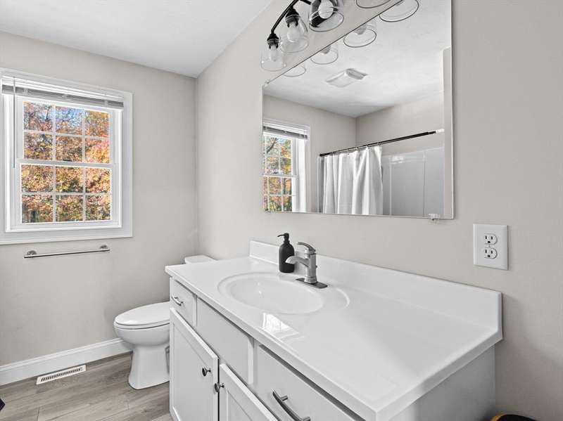 Nearly new and central to everything! This pretty 2022 home has everything you need and is ready to go. New solar panels add to the super efficiency of this sweet property. Open concept living room flows to eat-in kitchen with sliders to deck and easy living spaces. Three bright bedrooms, two full baths upstairs plus another half bath for your guests on the main floor. The walk out basement has a finished area for playroom and utility area for laundry and extra storage. A newly fenced yard provides privacy in the rear of property abutting natural greenspace. Sidewalks lead to tree lined neighborhood, conservation land, school or even nearby golf course! Less than 5 minutes to commuter train, and easy access to both highway and medical facilities.