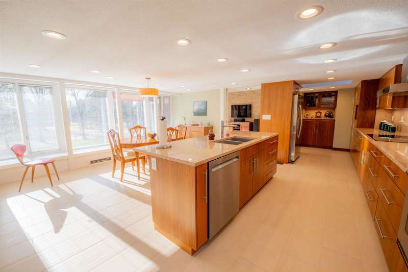 Welcome to the Blessing House, a classic mid-century modern home designed by Glenn Beach, AIA and built in 1957. This ranch style home features four bedrooms, three full baths and over 4,200 square feet of flexible living space. Located in one of Midland’s most sought after neighborhoods, this .67 acre parcel backs up to Valley Park, an expansive open space perfect for any outdoor activity. The updated kitchen offers heated ceramic flooring, quartz countertops and custom walnut cabinetry. The en-suite master bedroom is a spacious retreat complemented by an array of original, built-in fir storage closets and drawers and a full bath. See how the big, west facing windows overlooking the backyard and park fill this home with sunlight. The walk-out basement is 1,932 SF (1,800 SF finished) and features a sizeable family room, full bath, fourth bedroom, covered patio and more. A huge, multi-level wrap around deck overlooks the backyard and park and is perfect for entertaining or just relaxing with a glass of wine at sunset. This home has never flooded and is situated outside of the flood plain. The attached garage (28x32) easily accommodates two cars with additional room for a mini workshop and more storage. The design of this home is true Mid-Century - lower ceilings that lead to soaring, airy common areas. Dinner in downtown Midland is a leisurely stroll away. Emerson Park and the Rail Trail are even closer. The design makes this a must see, the home and location make it a must have. Contact your agent to schedule your tour today.