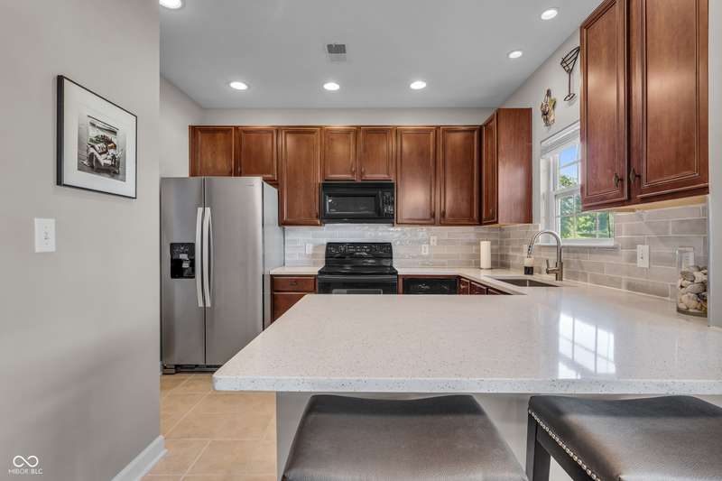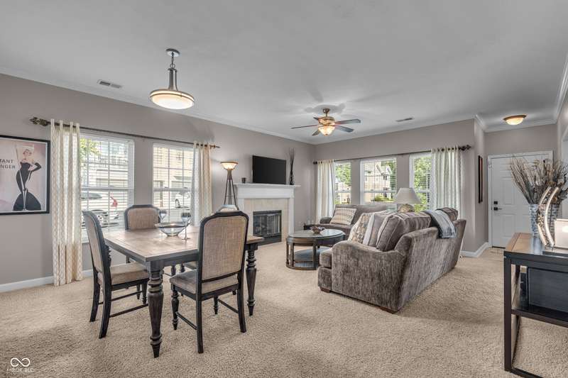 The perfect place to call home! Welcome to your own BEAUTIFULLY UPDATED, GROUND LEVEL condo in a wonderfully convenient CARMEL location, just steps from the MONON TRAIL! Enter into this spacious home with large living room anchoring its inviting, open concept layout. Updated kitchen is the heart of the home, with its brand new sparkling countertops and stylish tile backsplash. Tucked away, the primary bedroom boasts a walk-in closet and en suite bath with updated vanity. Versatile second bedroom is currently staged as an office. Attached garage provides extra space for all your needs and protection from the elements. Neighborhood offers amenities galore, including a shimmering swimming pool, clubhouse, fitness facility, walking trails and pickleball courts. Come see this his well-appointed first floor Carmel condo today!
