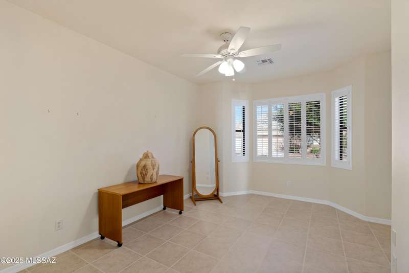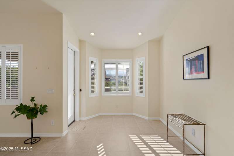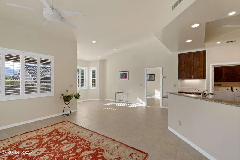 OUTSTANDING, UPGRADED 2 BR, 2 BA end unit is located in the vibrant age 55 gated community of Vistoso Village. Lightly lived in over the last 24 months, over $20K has been invested during that time in new HVAC, whole house water softener and filtration systems, epoxy coating in garage, walkways and patio, water heater, appliances and the interior has been fully painted. View includes a patio peek through at the mountains. Features include louvered plantation shutters throughout, vaulted great room ceiling and split BR plan. HOA fee includes on-site mgt., clubhouse with two pools, spa, gym and community activities galore. Also included are water, trash, cable TV/Internet, exterior pest control, roof, exterior paint and landscape maintenance. Simple, secure, serene living at its best.
