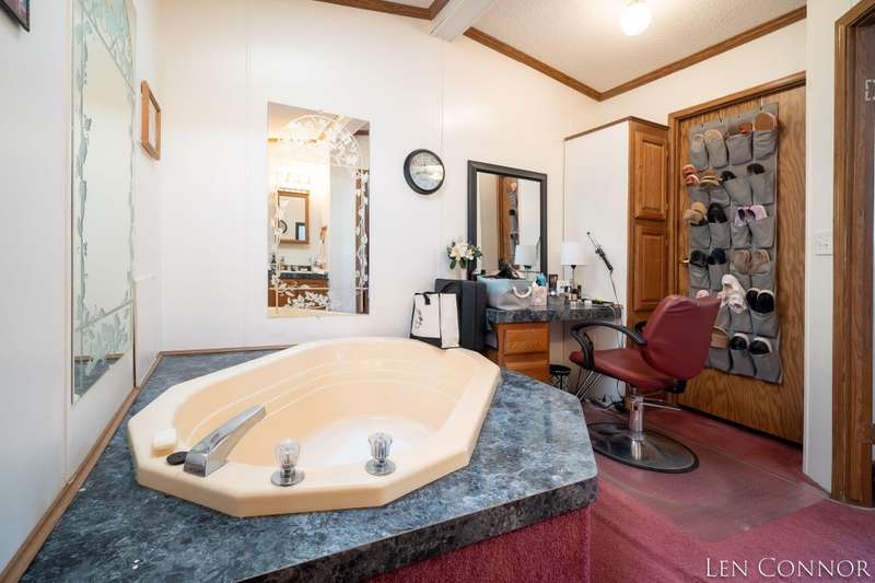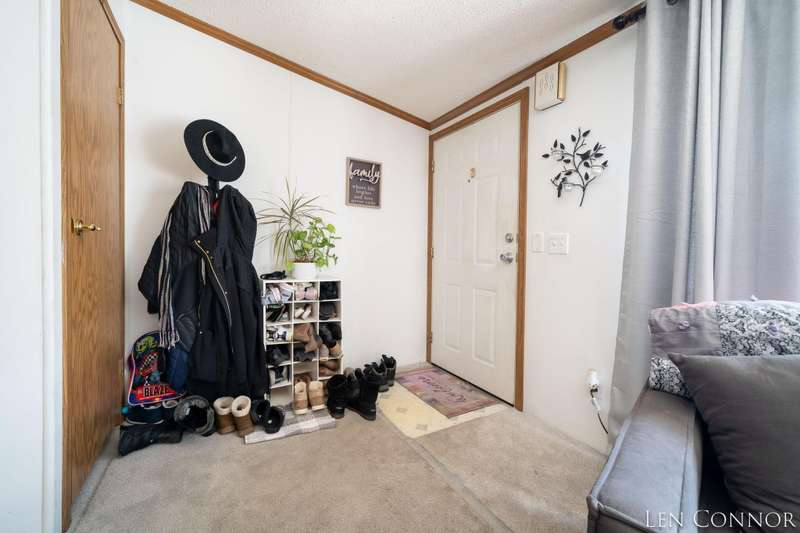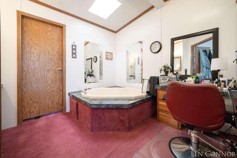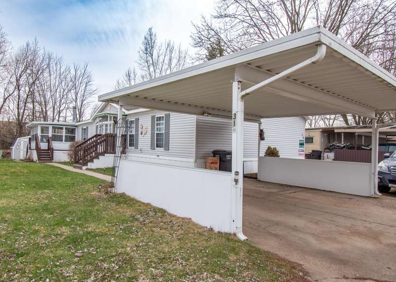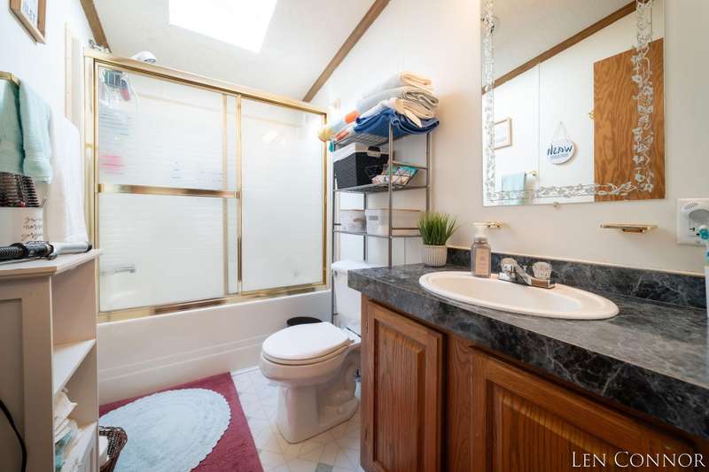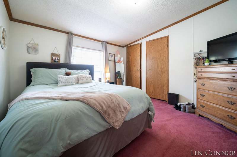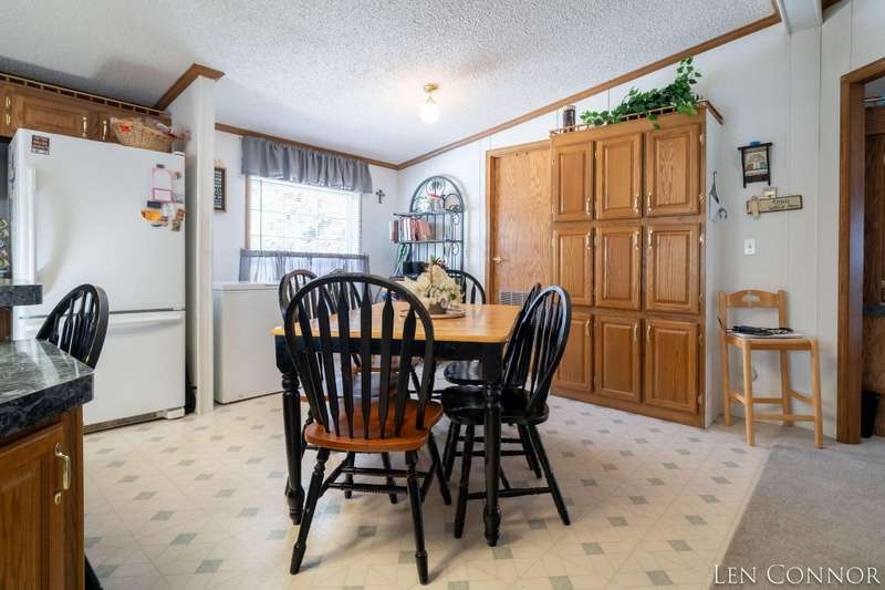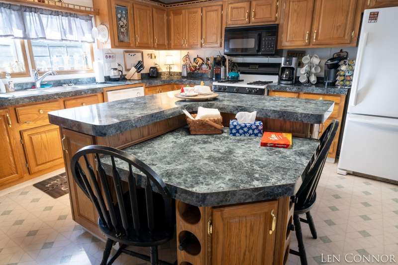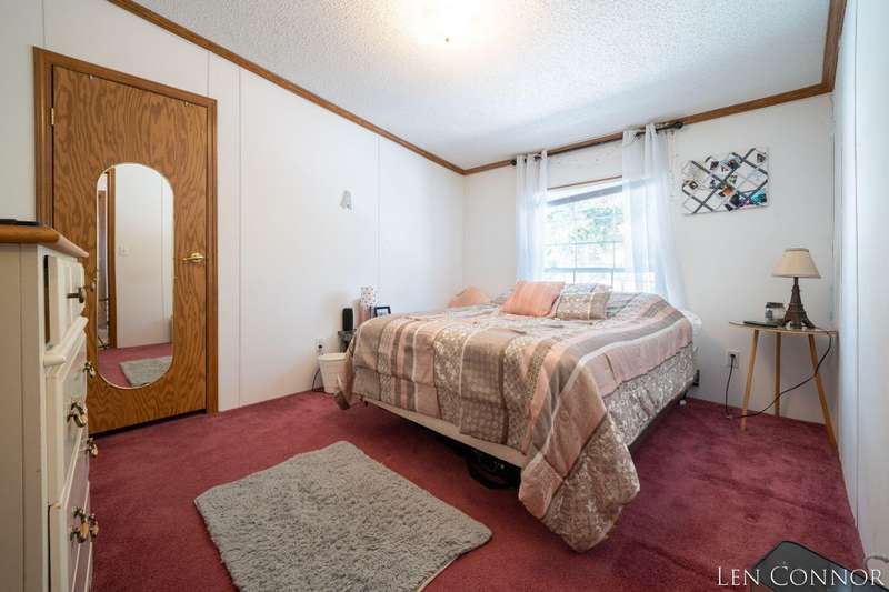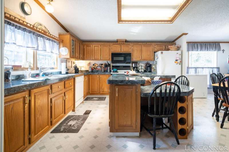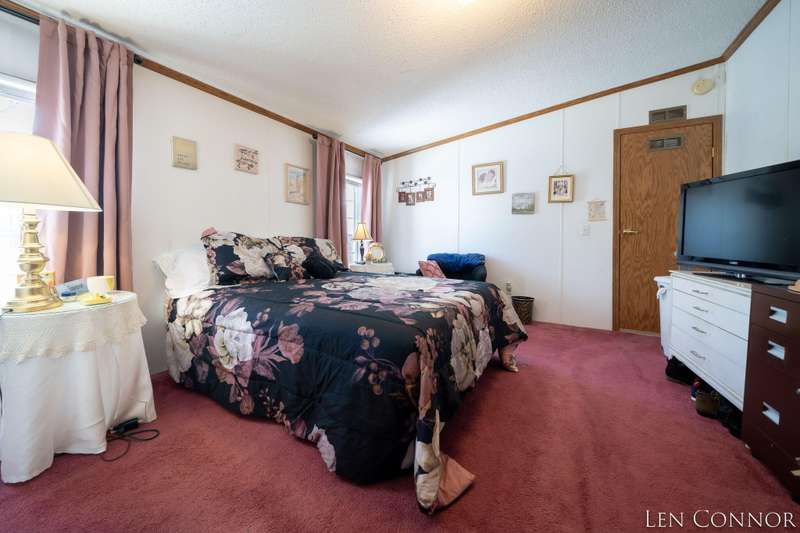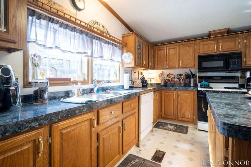 This well-maintained manufactured home offers over 1800 square feet of living space, perfect for those seeking extra room to. Step inside to discover a spacious and inviting layout, highlighted by a beautiful kitchen featuring a large center island-ideal for meal preparation and entertaining. Enjoy a peaceful view with trees right from your kitchen window. The family room, complete with a working fireplace, provides a warm and inviting space to relax and unwind during cooler evenings. Outside, you will find a lovely deck perfect for enjoying your morning coffee or hosting a summer barbecue. In a convenient location with nearby stores and restaurants, everything is just moments away. Schedule your showing today! Possession 45 days or sooner.