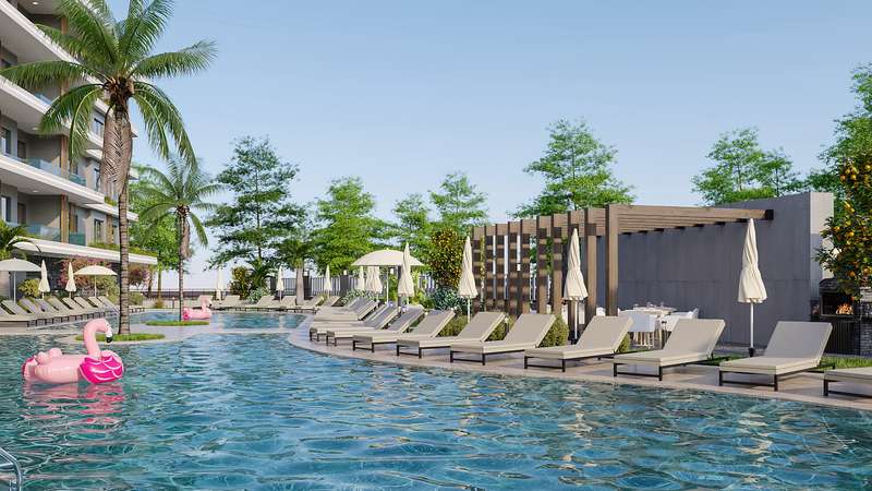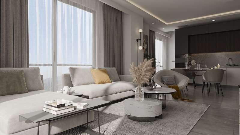 These Alanya apartments for sale are located 2 km from the beach, 5 km from Alanya center, 5.9 km from Dimcayi, 35 km from Gazipasa Airport, and 120 km from Antalya Airport.