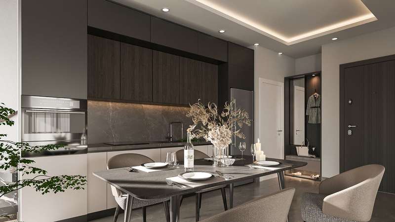 The apartments within the project will be delivered with satellite TV, flooring, lighting, bathroom and kitchen cabinets and countertops, water, heat, and internet insulation, indoor and entry doors, windows, and balcony and staircase railings.