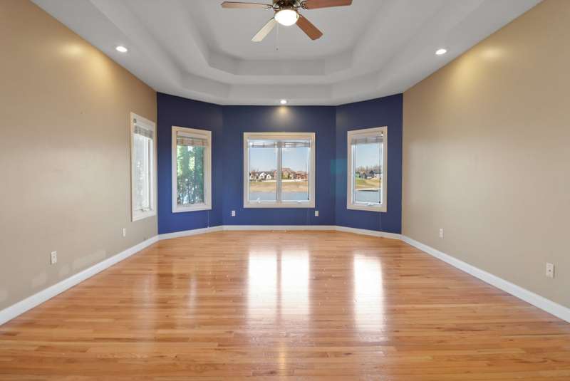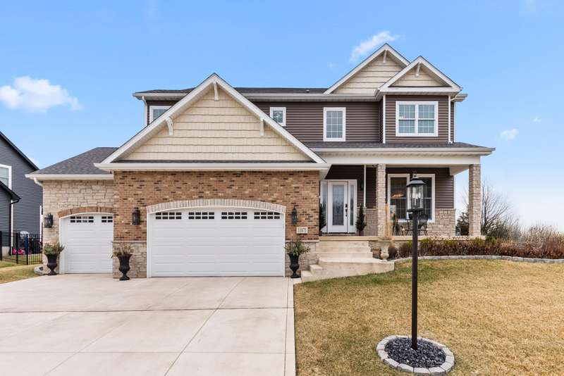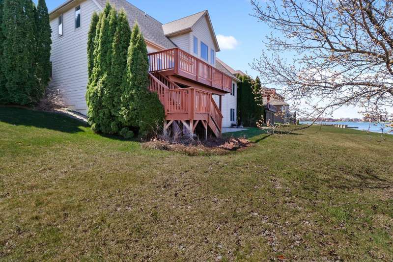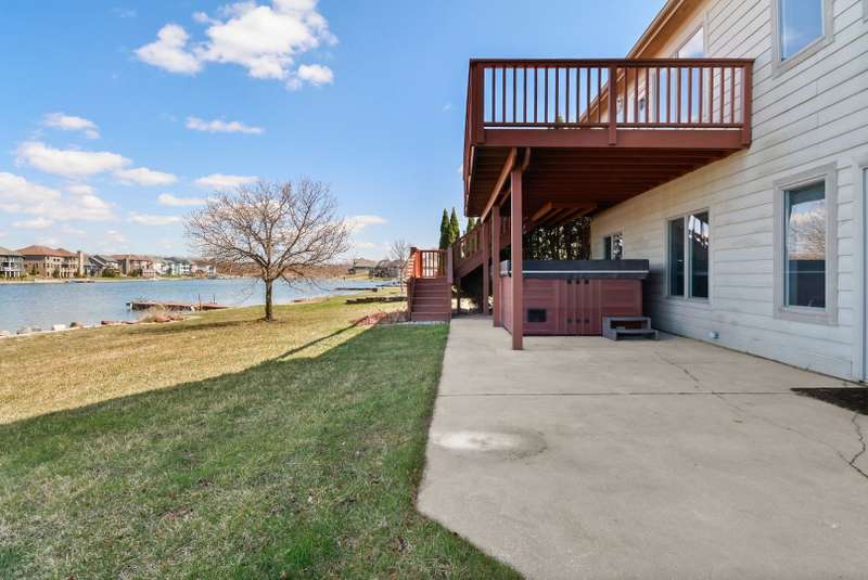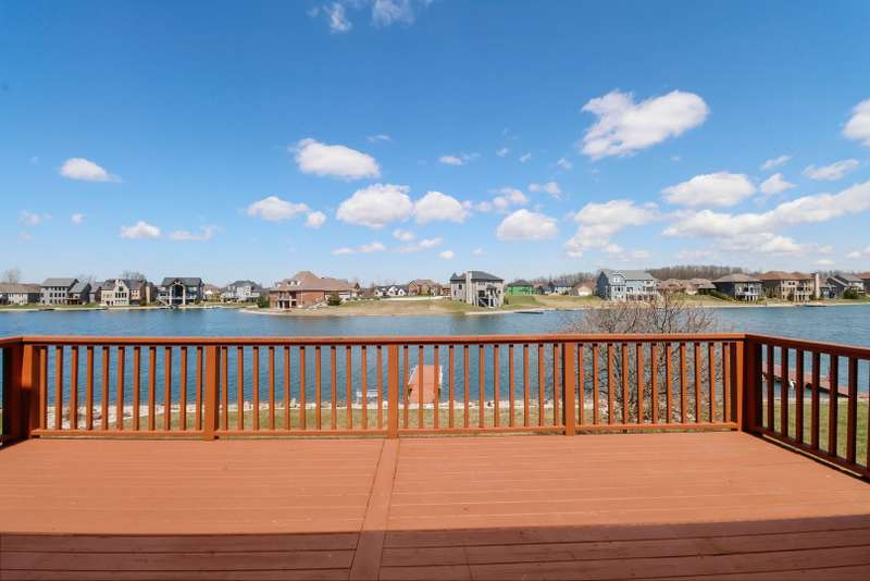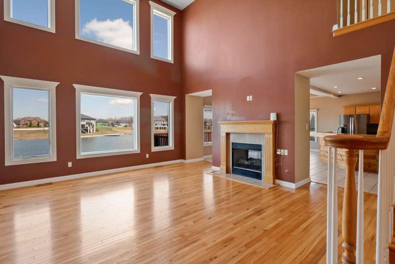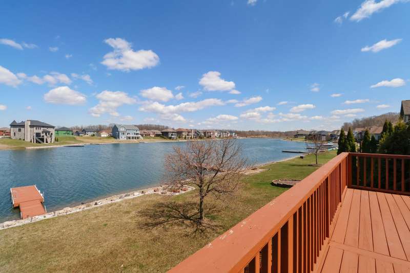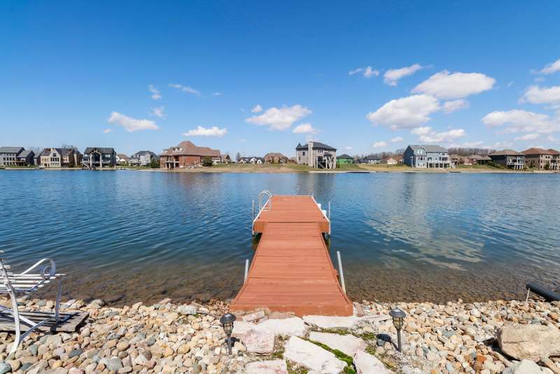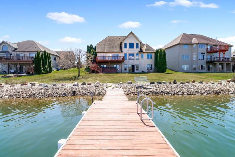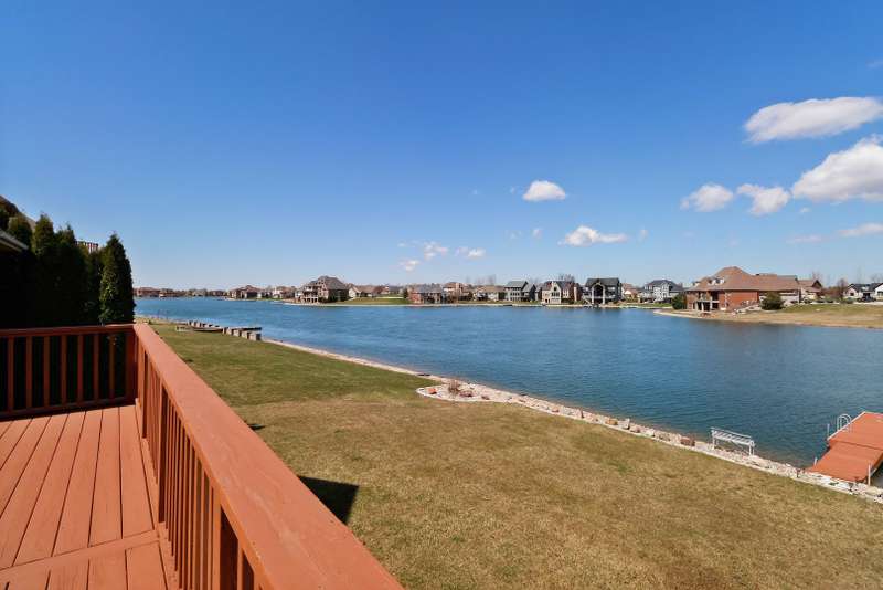 Nestled on a breathtaking lakefront lot in the prestigious gated community of Doubletree Lake Estates, this stunning story-and-a-half home offers an unparalleled living experience. Boasting 5 spacious bedrooms and 4 beautifully appointed bathrooms, this residence features nearly 4,965 square feet of total living space, including a bright and inviting finished walkout basement. Step inside and be captivated by the soaring two-story living room, where gleaming hardwood floors meet walls of windows framing picturesque lake views. A magnificent double-sided fireplace adds warmth and ambiance, seamlessly connecting the living space to the expansive eat-in kitchen. The kitchen is a chef's delight, offering abundant cabinetry, a large center island, a convenient pantry, elegant granite countertops, and easy access to the sprawling deck - the perfect spot for outdoor dining and enjoying the tranquil lake scenery. The finished walkout basement is an entertainer's dream, featuring a huge family room complete with a wet bar, flowing effortlessly to the back patio and providing effortless access to the lake. Imagine hosting gatherings and creating lasting memories with the stunning lake as your backdrop. The expansive backyard, private dock, and relaxing swim-spa create the ultimate outdoor lakefront oasis. Retreat to the main floor primary bedroom, a true sanctuary boasting serene lake views, rich hardwood flooring, and a luxurious private bathroom featuring a jetted tub and separate shower. The generously sized walk-in closet is thoughtfully divided into two sections, offering ample space. The convenience of a main floor laundry room adds to the ease of living. Upstairs, you'll find three additional bedrooms, including a versatile bonus room, and a full bathroom. The fifth bedroom, located in the walkout basement, also enjoys beautiful lake views. Two dedicated storage areas in the basement provide ample organizational space. Recent updates include a new blower motor in the furnace (2025) and a hot water heater (2022), ensuring comfort and peace of mind. This exceptional property also features a spacious three-car garage. Doubletree Lake Estates is a premier gated community renowned for its 60+ acre lake, perfect for boating, swimming, and fishing. Residents also benefit from Lake Michigan water, low Winfield taxes, and access to the highly acclaimed Crown Point School System. Don't miss this rare opportunity to own your piece of lakefront paradise! Schedule your private showing today and start living the lake life you've always dreamed of.