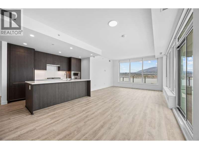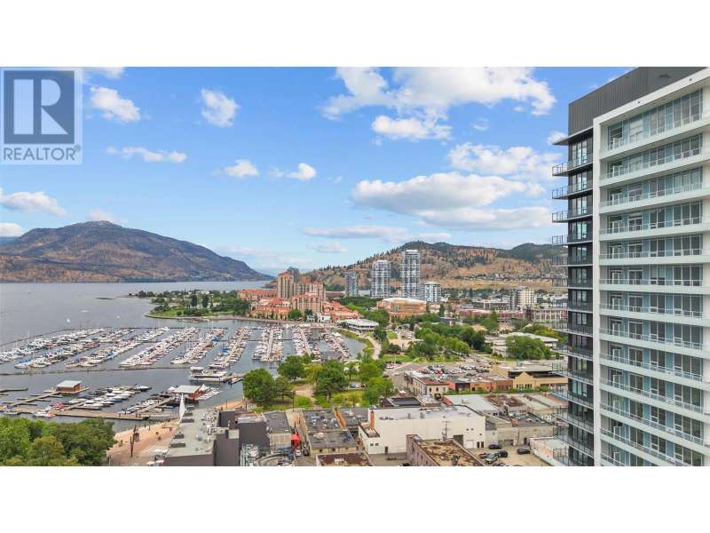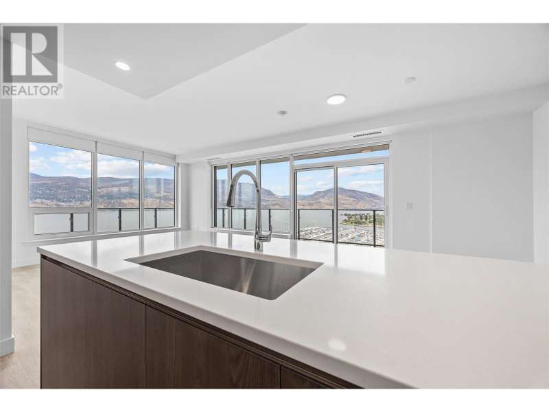 Welcome to the essence of penthouse living: breathtaking views, elevated interiors & a perspective like no other. Arguably one of the nicest homes in the entirety of Water Street, this spacious 3-bedroom & den residence is the epitome of world-class Okanagan living. From the moment you step inside, you're greeted by breathtaking, uninterrupted views of beautiful blue waters visible from every angle of this stunning home. Spanning over 1,400 sq ft, this residence provides thoughtfully designed spaces to relax, recharge & gather with ease. If your goal is to feel truly connected to the water, this is a must see. The expansive wraparound deck spans corner to corner, offering over 400 sq ft of outdoor space — the perfect perch to dazzle your guests while watching the vibrant boat activity below. Every inch of this home is curated with superior-quality finishes that exude timeless elegance. Exclusive access to 42,000 sqft of world-class amenities at The Deck, featuring 23 thoughtfully curated spaces to enjoy, entertain & unwind —including a fitness centre, art studio, kids’ playroom, sauna, steam room, golf simulator, yoga studio, putting green, games room, movie theatre, coworking space, and business centre. Enoy the expansive terrace w/fire pits, BBQ stations, outdoor dining, pool, hot tubs, dog run & dog wash. 2 parking stalls. Strata fees & room measurements are approx. 2 parking stalls. GST paid. Experience penthouse living, without the penthouse premium. (id:58403)
