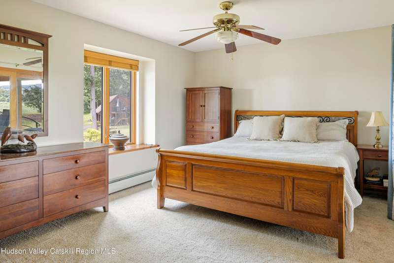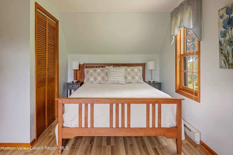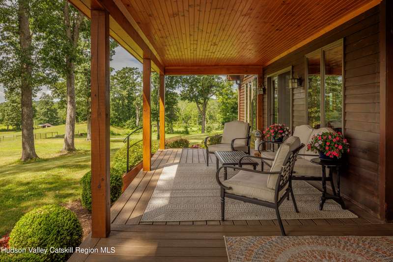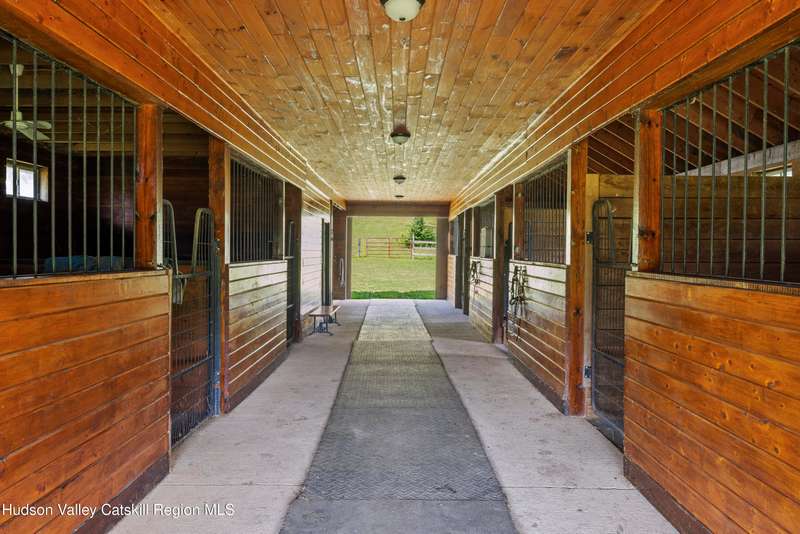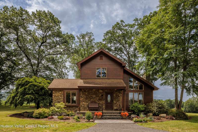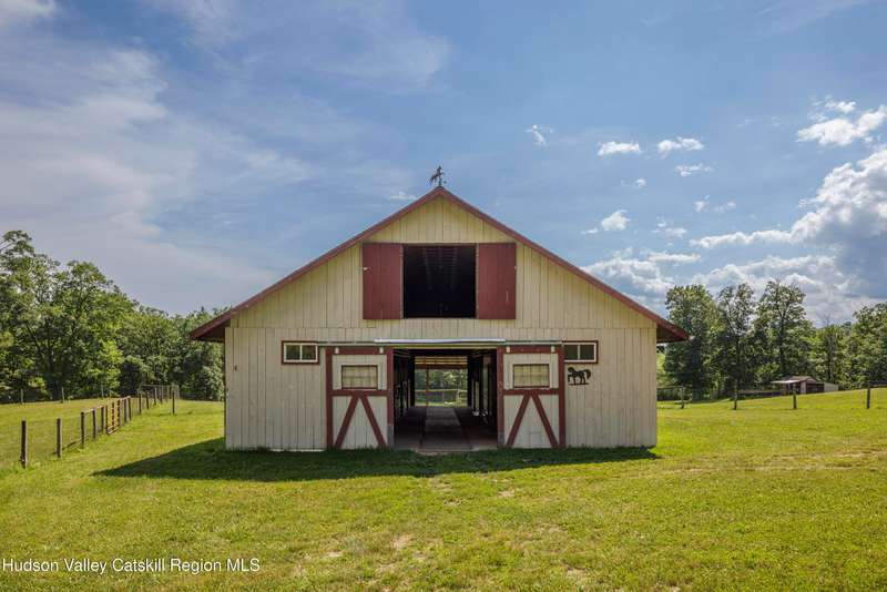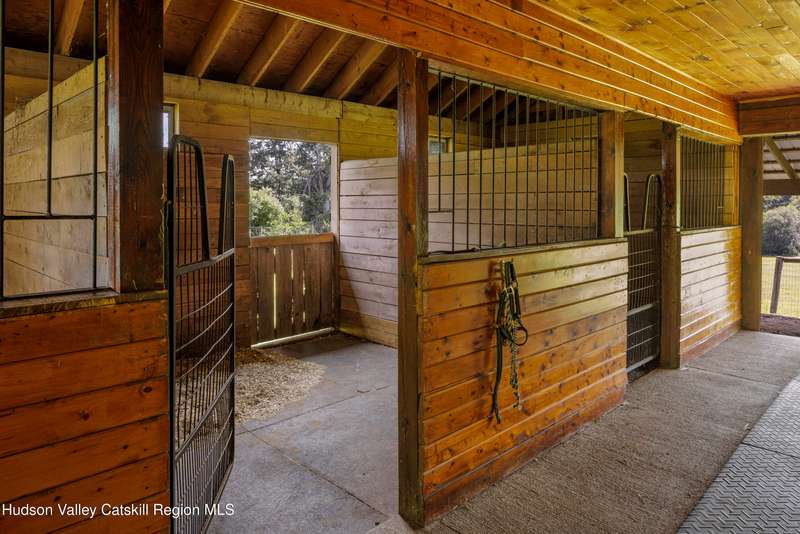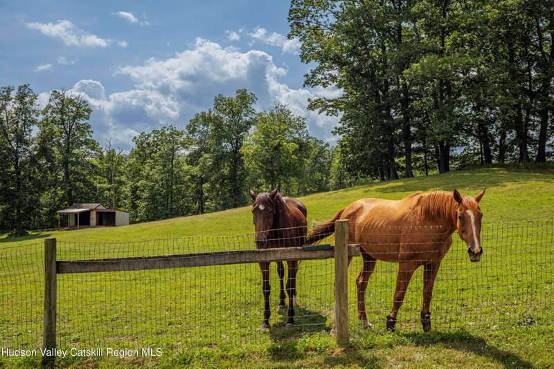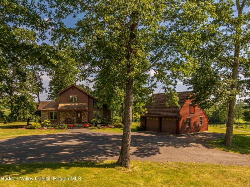 Introducing Long View Farm & Stable, a convenient yet tranquil Equestrian hide-way just minutes from the culture, shopping and dining of Hudson, New York. Long View Farm provides the perfect blend of Hudson Valley country serenity with an easy connection to Amtrak to New York City and Albany. A 1476,SF residence with detached two car garage, Coach house with a 576SF apartment and studio space, a six-stall stable, pastures and a picturesque swim pond with mountain and apple orchard views in all directions make this property exceptional. Situated at the crest of the 24-acre parcel is a 2-Bedroom, 2-Bath Adirondack contemporary residence with a ground level Primary Bedroom and Bath. Great open Living/Dining areas with wrap around windows, a soaring cathedral ceiling, and a wood burning stone fireplace with an overlook loft library. The two bedrooms are spacious and the dedicated Office/Library could easily be converted into a third bedroom. The surrounding land features mature perineal plantings and trees with a gently sloping lawn down to the pasture and barn. The panoramic ''pinch me'' views of the majestic Catskill Mountains and the surrounding rolling farmlands from every room are very captivating or take it all in with a morning coffee or relaxing at the end of day on the wrap-around porch taking in the view of the horses, ponds, surrounding orchards and the dazzling sunsets. Convenient detached 2-car garage for vehicles and gardening equipment. The separate Coach House offers 2.5 car garage with workshop, bathroom and laundry room on the ground level. Upstairs is a complete 1-Bedroom apartment that is currently used as an popularly booked AIRBNB.As a fully operational equestrian farm, Long View Farm & Stable boasts exceptional amenities including a 6-stall, 3200SF horse barn. Yellow Pine interior with two Cherry lined Stalls for foaling, four Oak lined stalls, a Yellow Pine interior tack room equipped with electric and water, Ample loft space for hay storage or office build out. There is also a double Run-In for shelter tucked away at the far end of the rolling pasture land. There is enough land for jumping, endurance or cross country courses, If you're an equestrian enthusiast looking for a versatile property with hospitality and boarding income opportunities, (or for an alpaca or llama enthusiast! ) Long View Farm & Stable offers unparalleled functionality, and charm. Come view this unique farm in one of Columbia Counties most sought after locations. And meet the current, very friendly, retired Thoroughbred residents, ''Renee'' and ''Queen of The Night''. Trailering convenience to HITS in Saugerties, Saratoga and Berkshire equestrian venues. Located under 2.5 hours from NYC.