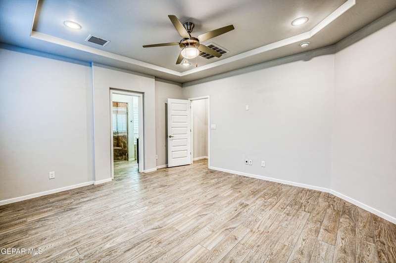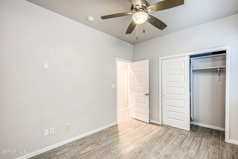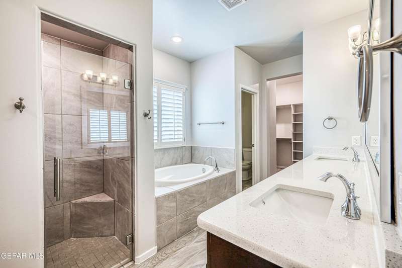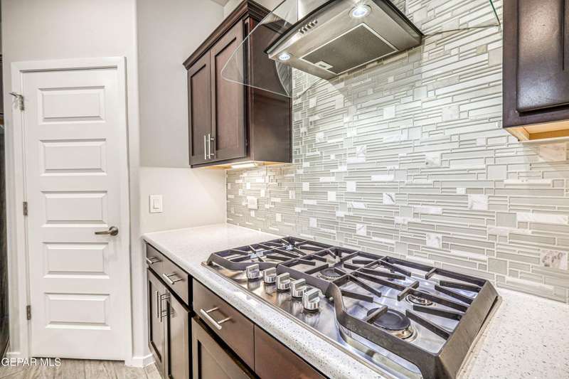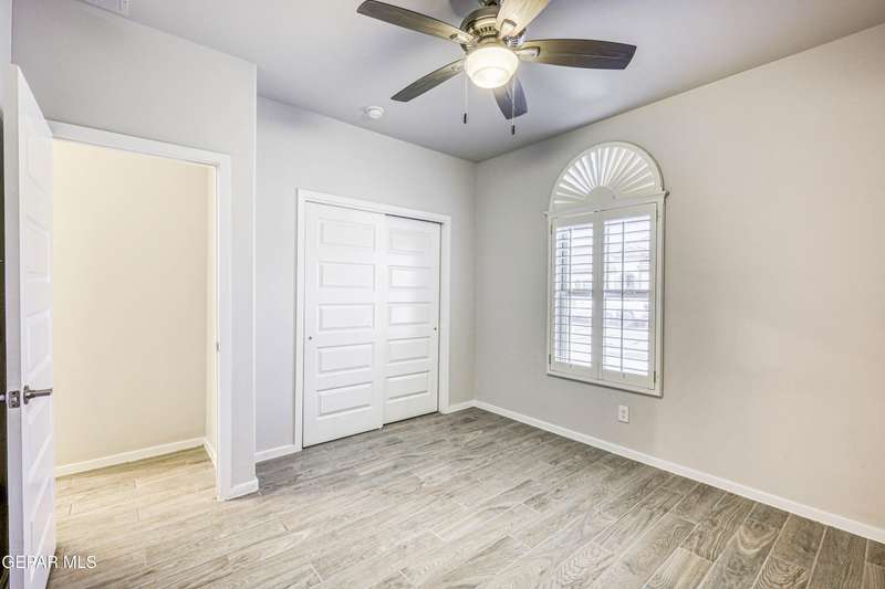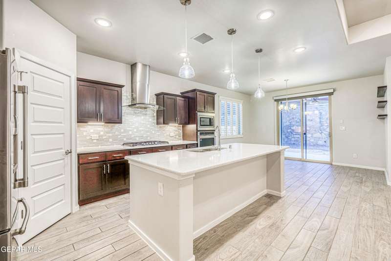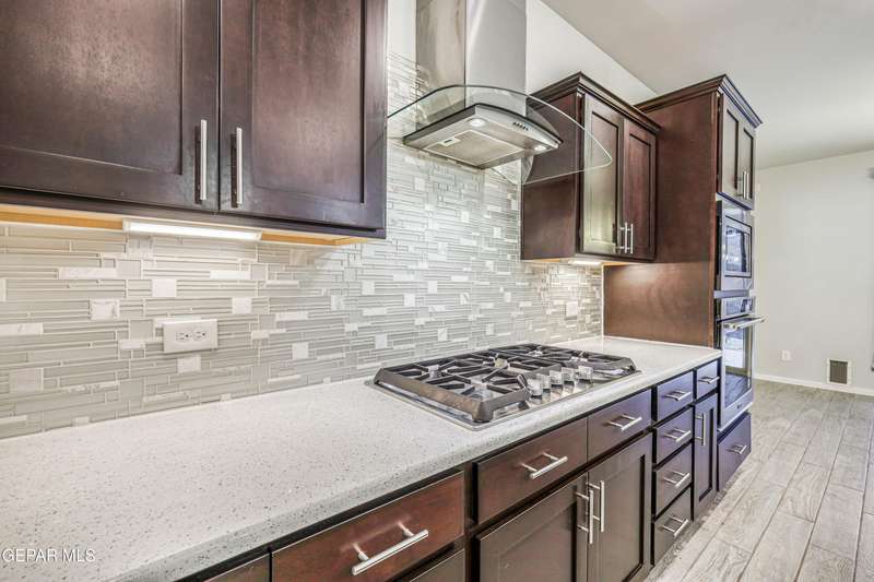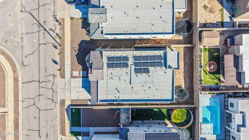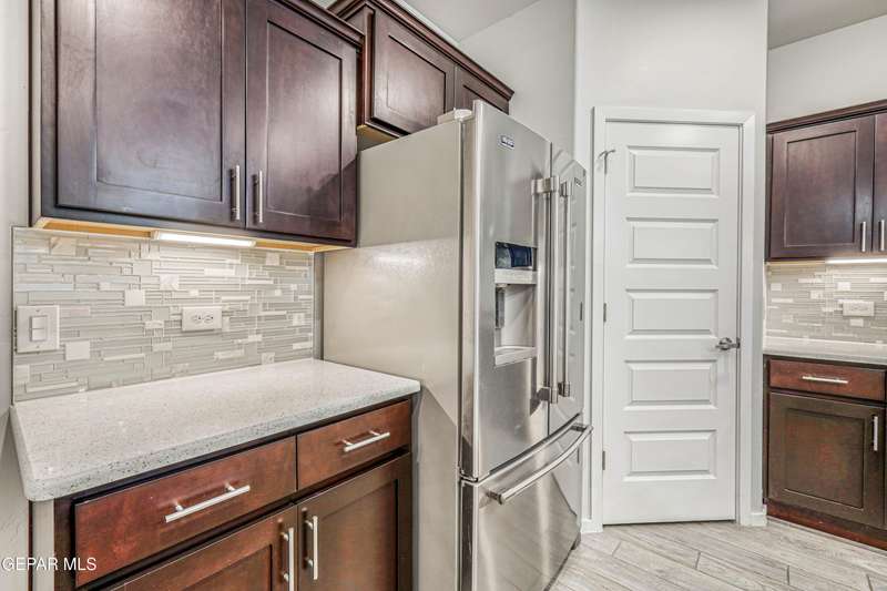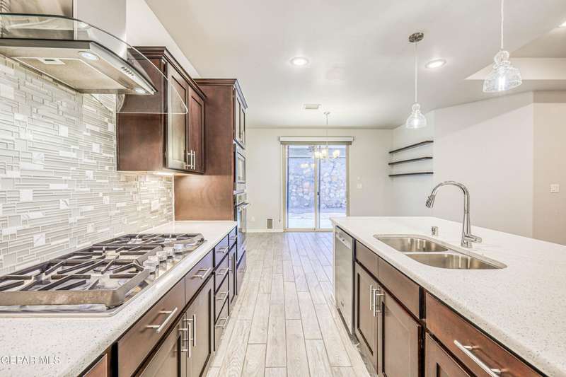 Beautifully maintained 4-bedroom, 3-bath home in the desirable Hillside at Mission Ridge subdivision. This upgraded Hakes Brothers Canyon floor plan offers approximately 2,045 sq. ft. of open, modern living space. Enjoy tile flooring throughout, quartz countertops in the kitchen and bathrooms, under-cabinet lighting, and pendant lighting in the kitchen. The primary suite features an upgraded full-glass shower door, double sinks, and a spacious walk-in closet. Every room includes ceiling fans, tinted windows, and ethernet ports. Additional highlights: refrigerated air, pre-wiring in the living room and patio, keyless front entry, and security cameras. Stainless-steel appliances-refrigerator, built-in microwave, oven, and dishwasher-convey with the sale. Pride of ownership shines throughout, and solar panels will be paid off at closing, providing lasting energy efficiency and savings!