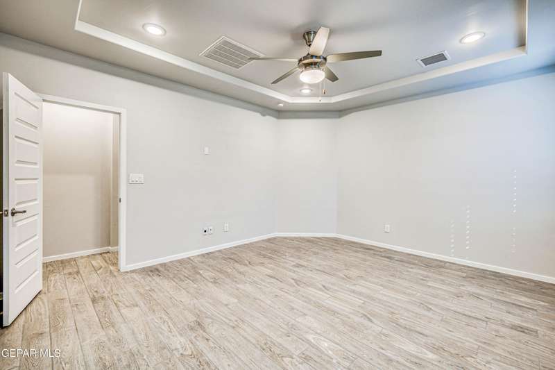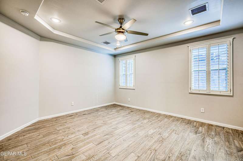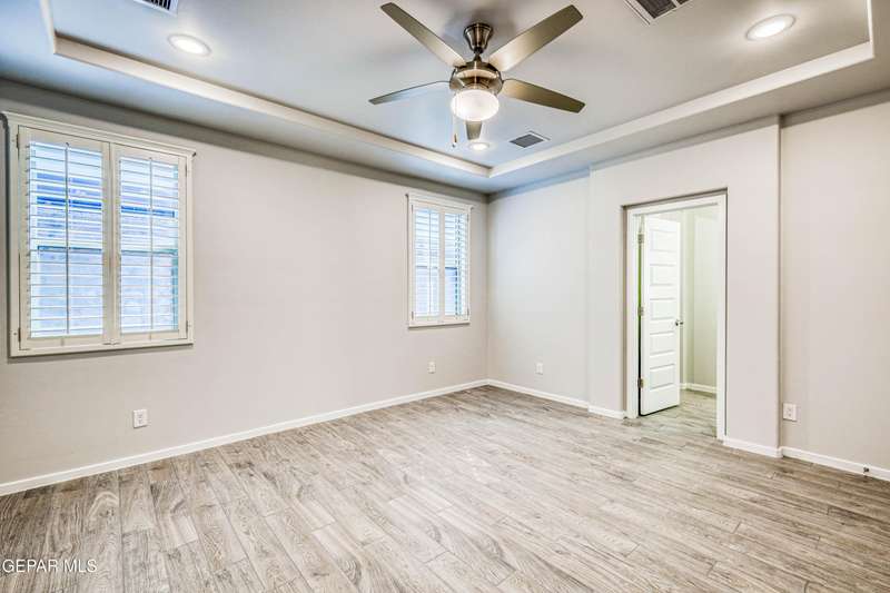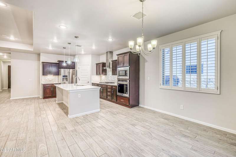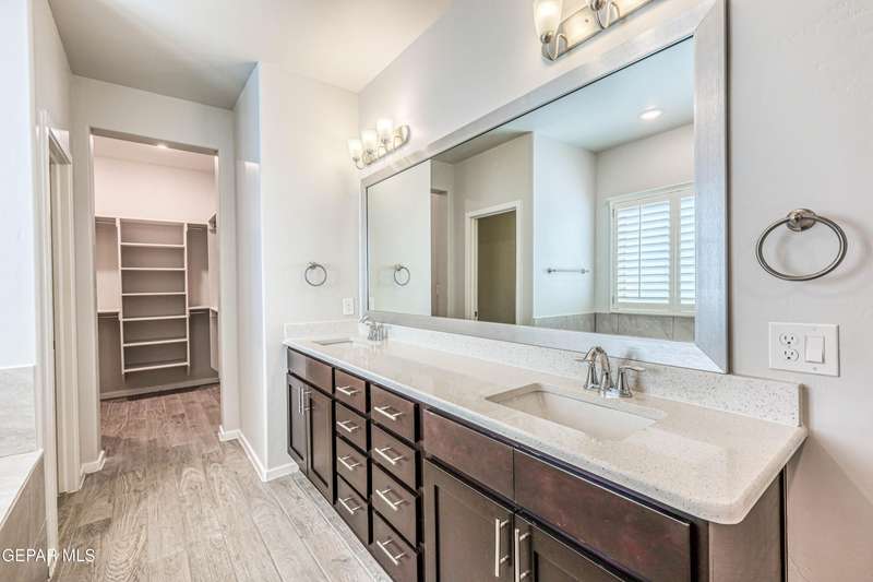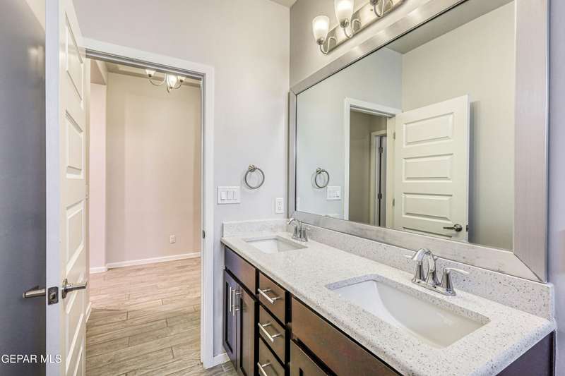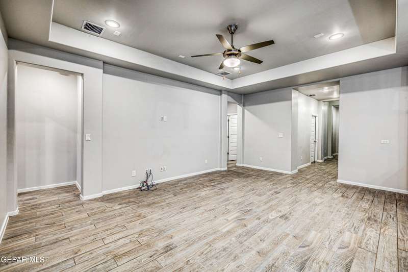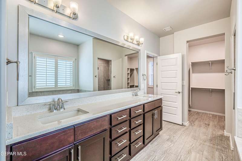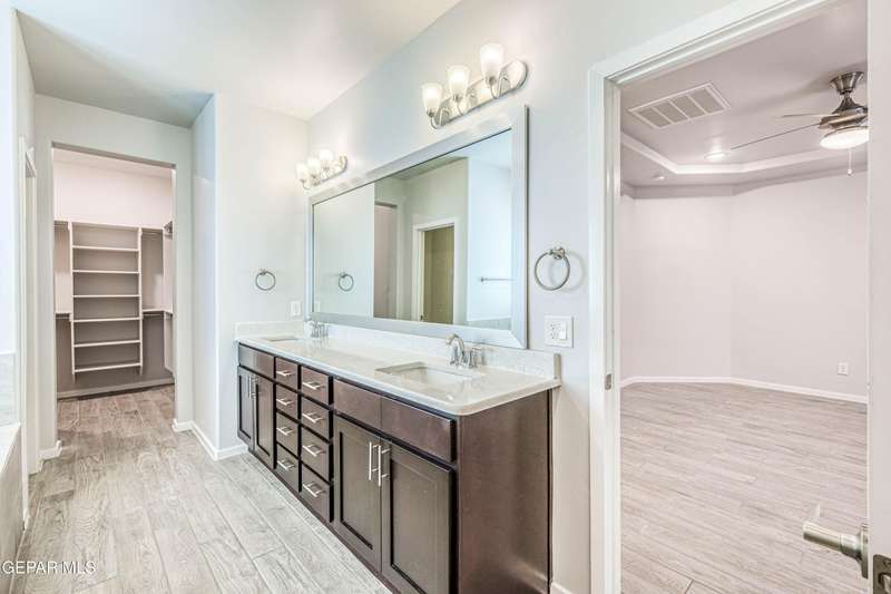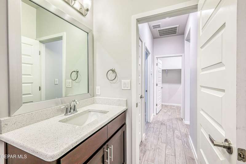 Beautifully maintained 4-bedroom, 3-bath home in the desirable Hillside at Mission Ridge subdivision. This upgraded Hakes Brothers Canyon floor plan offers approximately 2,045 sq. ft. of open, modern living space. Enjoy tile flooring throughout, quartz countertops in the kitchen and bathrooms, under-cabinet lighting, and pendant lighting in the kitchen. The primary suite features an upgraded full-glass shower door, double sinks, and a spacious walk-in closet. Every room includes ceiling fans, tinted windows, and ethernet ports. Additional highlights: refrigerated air, pre-wiring in the living room and patio, keyless front entry, and security cameras. Stainless-steel appliances-refrigerator, built-in microwave, oven, and dishwasher-convey with the sale. Pride of ownership shines throughout, and solar panels will be paid off at closing, providing lasting energy efficiency and savings!