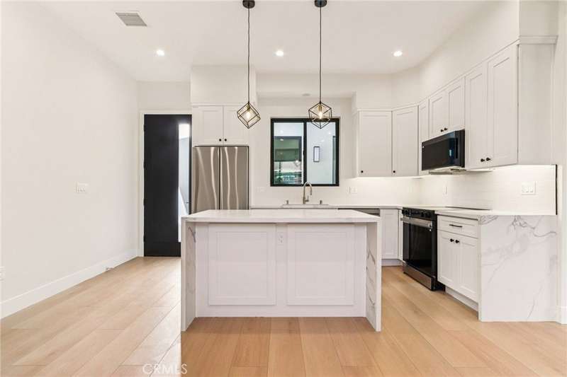 A Rare North Hollywood Offering — Custom-Built Estate with Brand New ADU & JADU. Discover an extraordinary opportunity to own a meticulously crafted, fully upgraded home with both a newly constructed 2-bedroom ADU and a 1-bedroom JADU in one of North Hollywood’s most coveted neighborhoods. No expense was spared—hundreds of thousands of dollars in designer upgrades elevate every inch of this exceptional property. Main Residence (4 Beds | 3 Baths) - Step into an elegant, sun-filled living room highlighted by a stunning modern fireplace, seamlessly flowing into a bespoke chef’s kitchen complete with a generous center island, quartz countertops, and premium stainless-steel appliances. A dedicated dining area opens to a private entertainer’s backyard, featuring a covered patio, built-in BBQ, and cozy fire pit—perfect for hosting gatherings year-round. The home boasts laminate flooring throughout, surround-sound speakers, and beautifully crafted custom closets. The primary suite offers a spacious walk-in closet with custom built-ins and a luxurious spa-inspired bathroom with dual sinks and a walk-in shower wrapped in floor-to-ceiling tile. Brand New ADU (2 Beds | 2 Baths) - The detached ADU showcases an airy open floor plan with a large living area that flows into a modern kitchen featuring a center island, quartz counters, and stainless-steel appliances. Ideal for guests, rental income, or multi-generational living. JADU (1 Bed | 1 Bath) - The thoughtfully designed JADU offers an efficient layout with its own kitchen, living area, and bedroom—perfect for an office, studio, or additional income opportunity. Property Highlights - Each unit has a private entrance - Separate electrical meters and individual laundry units - Tankless water heaters in all units - Designer finishes and high-quality craftsmanship throughout. The owner’s passion for perfection is evident from the moment you step inside. This is a true turnkey luxury compound—ideal for investors, multi-family living, or anyone seeking a custom home with exceptional versatility and style.