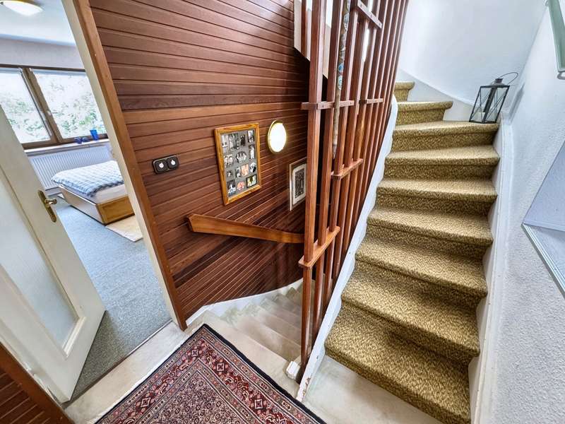 This property is currently being marketed as part of a secret sale. For this reason, we are deliberately refraining from publishing pictures at this point. We will be happy to send you a full exposé with informative photos on request. We will also be happy to provide you with a 360-degree online tour so that you can gain a comprehensive impression. This mid-terrace house was built in 1956 on a 218 m² plot and impresses with its solid building fabric and exciting architectural layout. The property not only offers a quiet and family-friendly living environment, but also plenty of potential for individual design. Particularly noteworthy is the interesting split-level design, which gives the house a special spatial effect. The living room is located in the slightly offset basement and opens directly onto the sunny terrace and the spacious, green garden - ideal for relaxing hours outdoors or sociable evenings with family and friends. The house is in a well-kept condition, but also offers future owners the opportunity to incorporate their own style through targeted renovations and modernizations and create a very personal home. An added bonus: the property comes with a garage on a separate plot in the immediate vicinity - a real advantage in this residential area, where parking space is in particularly high demand. A property with character, solid substance and lots of potential - perfect for anyone who values individuality and a well-thought-out room concept.