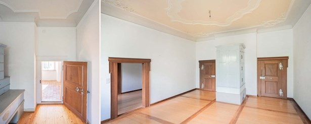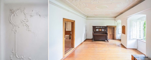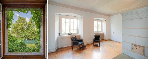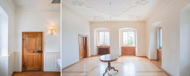 Nestled between the Thur Valley and Lake Constance, this magnificent Baroque castle from 1723 features a moat, a charming chapel, and beautifully restored interiors with original stucco ceilings, elegant parquet floors, and a grand Rococo ballroom with stage. The estate’s wings surround a peaceful courtyard with a fountain, creating a perfect blend of history and elegance. With over 20 spacious rooms and nearly 3,000 m² of living and usable space—including a barn and coach house—the castle offers versatile potential as a private residence, boutique hotel, gourmet restaurant, seminar center, or multi-family home. Set on extensive grounds with gardens and forests, it boasts stunning panoramic views of the Alps and the Thur Valley. Located just minutes from Kreuzlingen, Konstanz, and within 45 minutes of Zurich, the property combines serene countryside living with excellent accessibility. This unique, protected historic estate is a rare chance to own a prestigious landmark with timeless charm and modern functionality.
