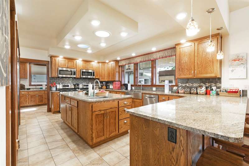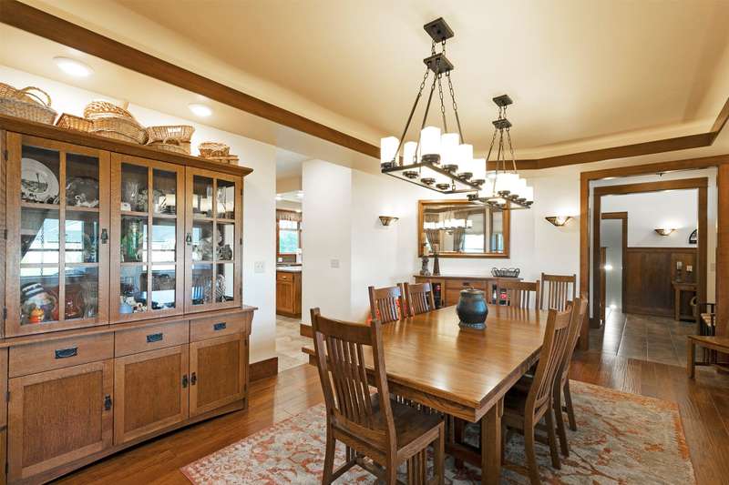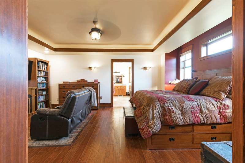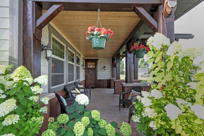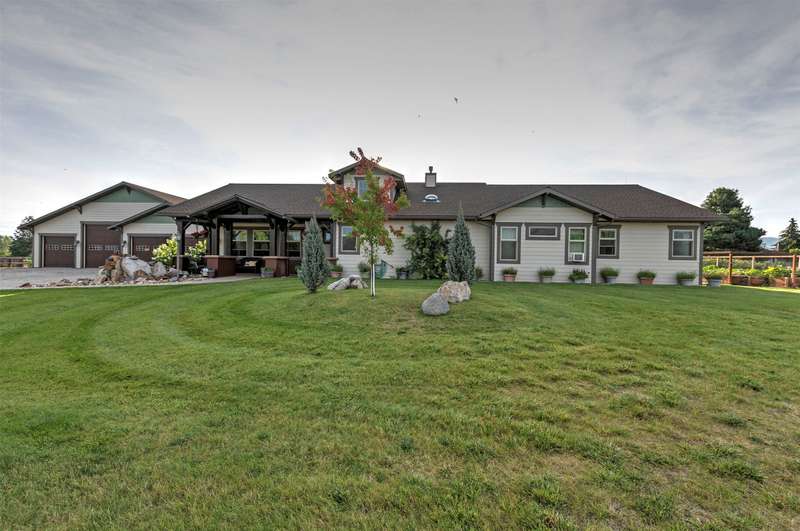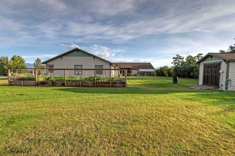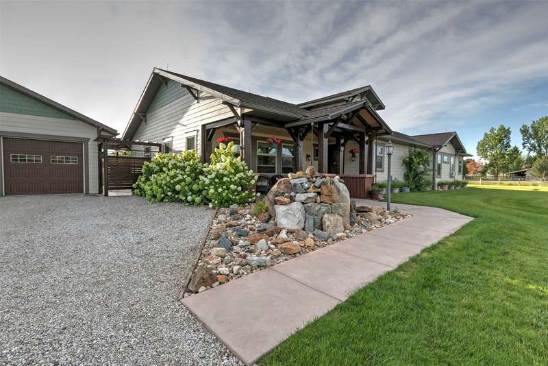 Exquisite Custom Craftsman Between Hamilton & Corvallis ~ Step into this stunning, custom-built Craftsman-style home, offering over 6,000 sq. ft. of gracious living space and exceptional storage throughout. The heart of the home is a soaring great room with open-beamed ceilings, gleaming hardwood floors, and a dramatic focal wall featuring a gas fireplace framed by elegant library shelving. The chef's dream kitchen boasts a massive island with prep sink, granite countertops, a commercial-grade double-door refrigerator and single-door freezer, dual gas ranges, and more. The formal dining room, with its tray ceiling, is ideal for hosting large gatherings. The primary suite is a private retreat, complete with ambient tray lighting, a cozy sitting area with electric fireplace, and a massive walk-in closet with center island dresser. The luxurious bath offers a dual-headed walk-in shower, soaking tub, and dual vanities. Two additional main-floor guest rooms include handy in-room sinks, while sharing a full bath. You'll also find a home office, powder room, and oversized mudroom. The lower level is entertainment central-featuring a vintage-style soda fountain/bar, movie theater area, additional bedroom with bath, bonus room, oversized rec room, second laundry room, and spacious mechanics area. Outdoors, enjoy the front covered patio with tranquil water feature, or relax by the natural gas fireplace on the rear covered patio. The impressive 3,000+ sq. ft. heated garage includes four bays (one RV-sized), extensive storage, and a fully equipped wood shop. The landscaped grounds feature underground sprinklers, raised garden beds with strawberries, a berry grove of blackberries and raspberries, plus a charming garden shed on its one acre. Don't wait-schedule your private showing today!