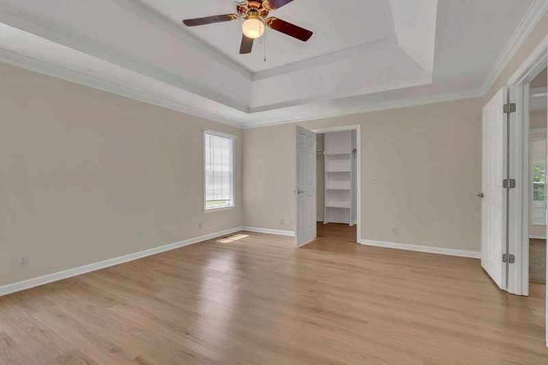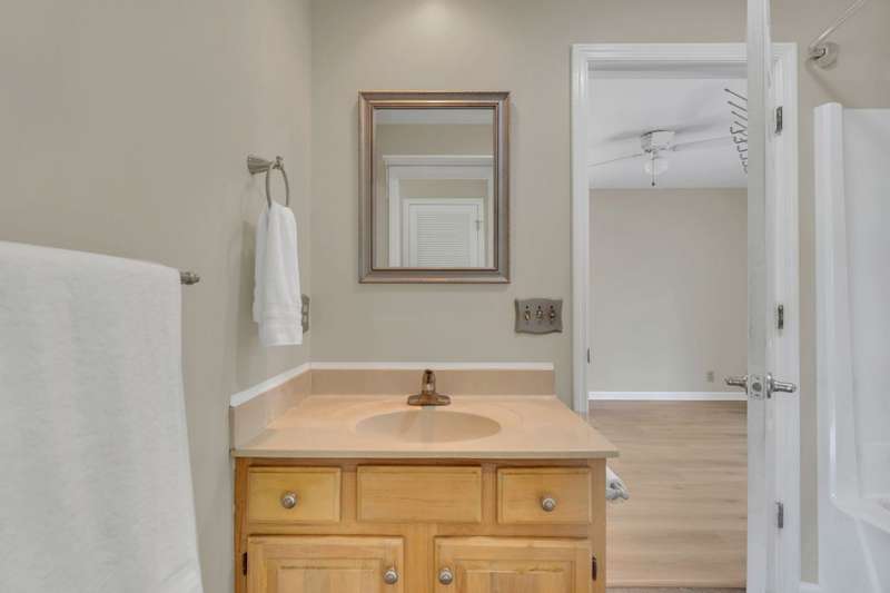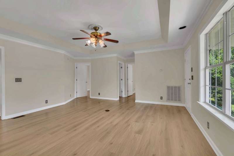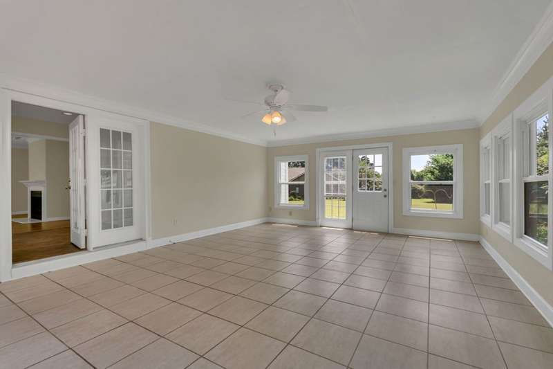 Primary photo has been virtually staged to enhance your vision of this beautifully renovated one-level home, nestled in a quiet cul-de-sac on a spacious one-acre lot, and at the lowest square footage price in the neighborhood! New luxury vinyl flooring and crown molding throughout, 3br/2ba, SUN ROOM! NEW ROOF ! The expansive primary suite includes a large walk-in closet and a private en suite bath, accompanied by two additional well-sized bedrooms. Enjoy outdoor living on the freshly painted, private rear deck-perfect for grilling and relaxing. The bright and airy sunroom, with a brand-new roof and a transferable 2-year warranty, adds valuable living space and is ideal for entertaining guests or hosting family game nights. 100% USDA financing.Additional highlights include a storage shed with electricity, an extra cement pad for added convenience, and a Trane HVAC system that's just 3 years old. This move-in ready home offers modern updates and thoughtful features throughout-all in a peaceful, desirable setting.