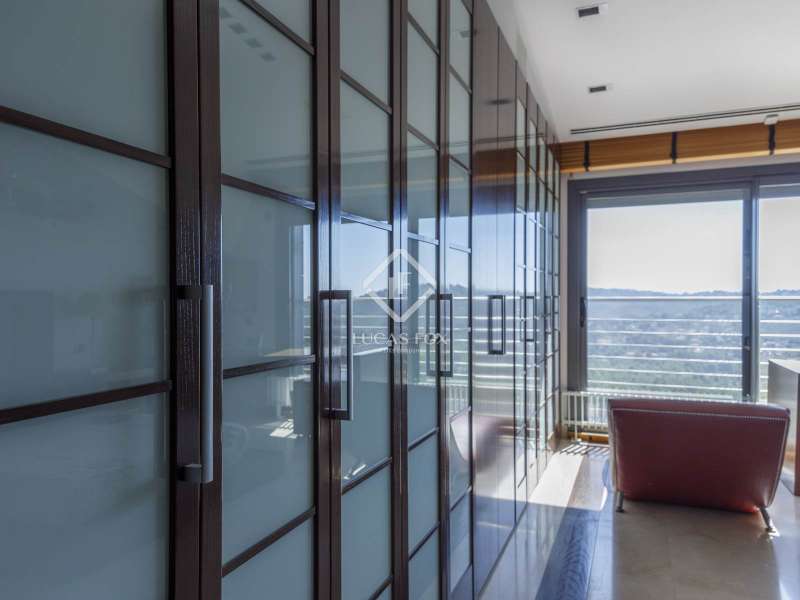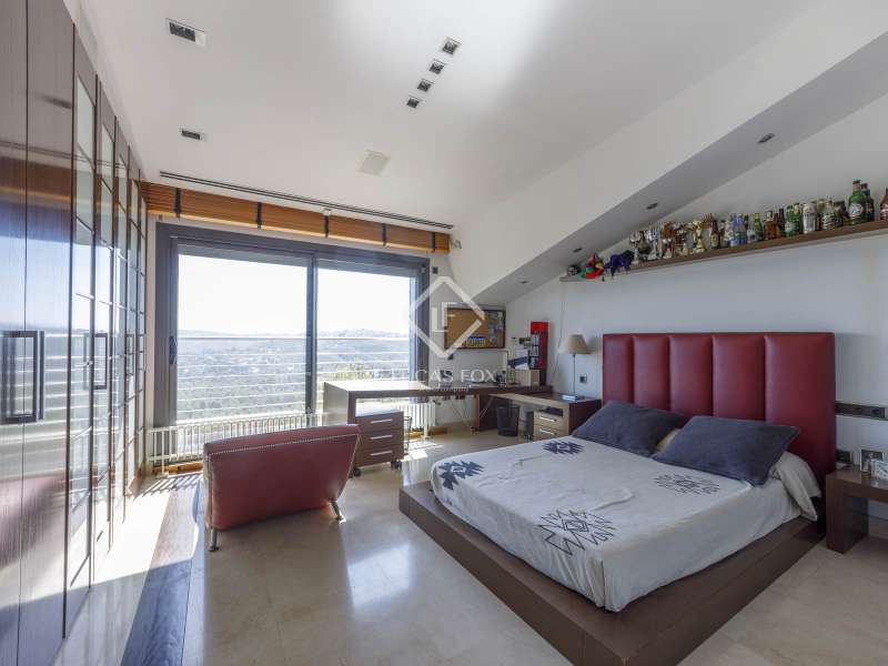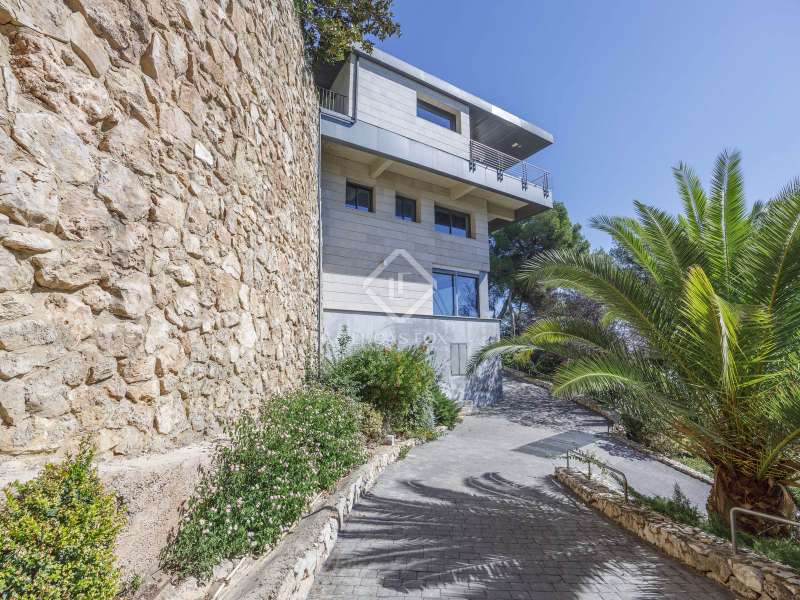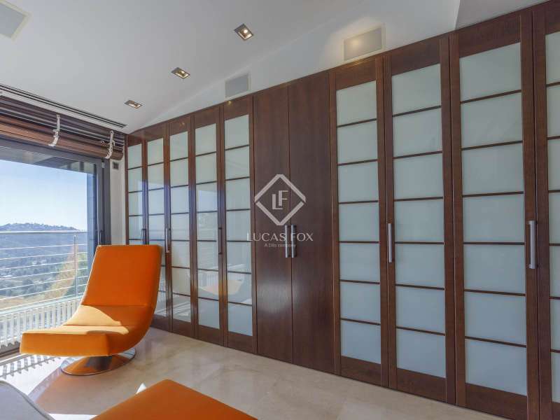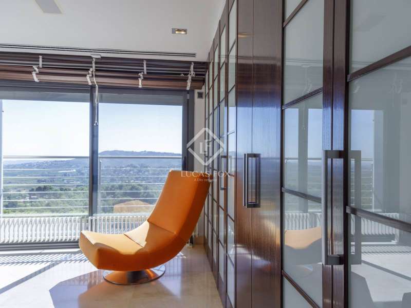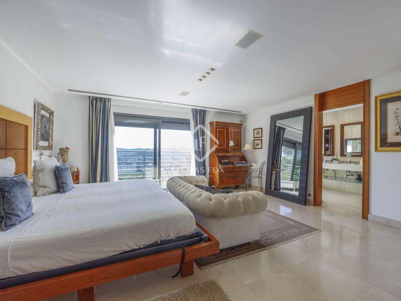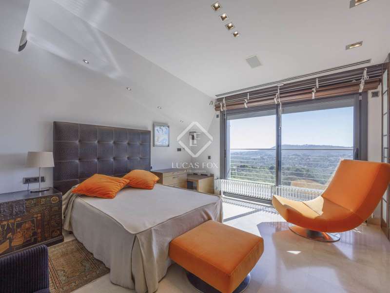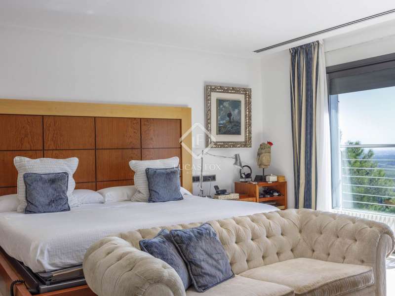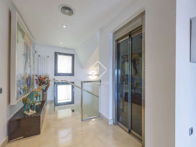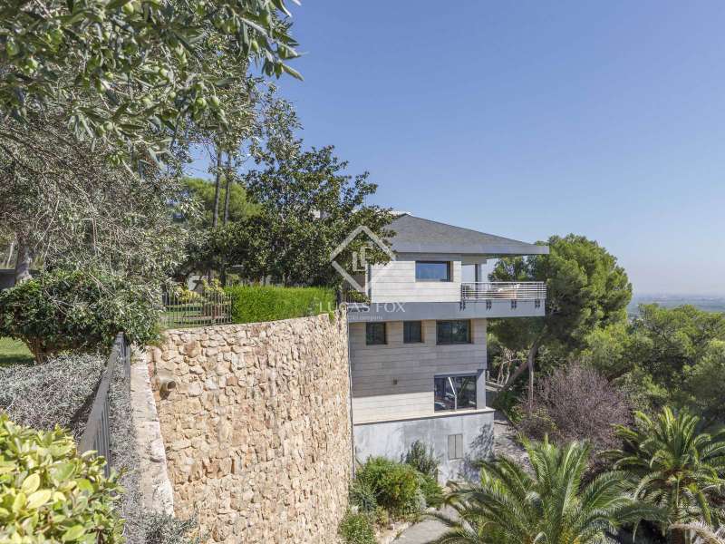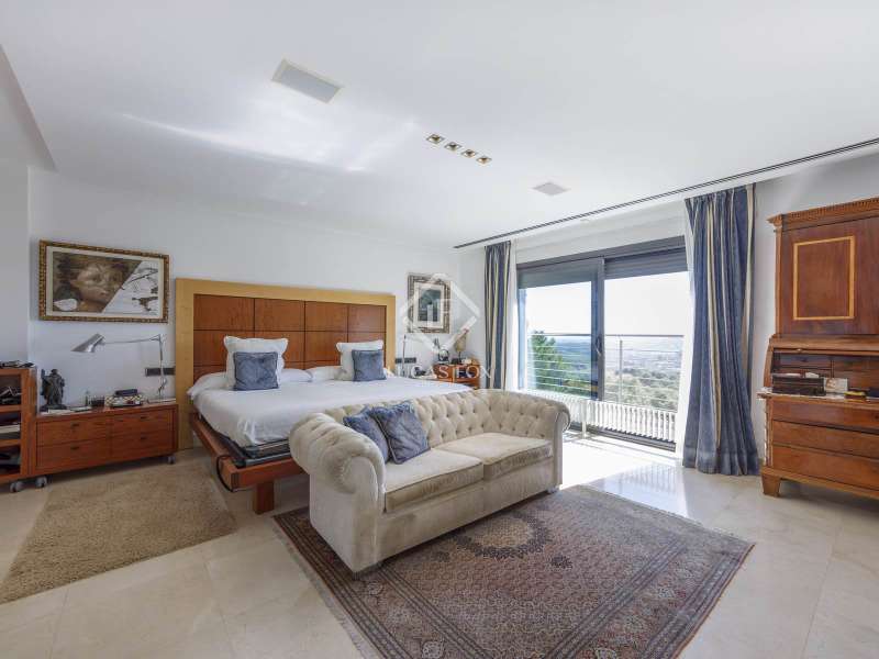 Lucas Fox is proud to present this unique property for sale in Chiva, Valenica. The house sits on a sloping terrain, which is actually formed of four plots, covering an impressive total area of more than six thousand square metres. This large surface area offers different environments, some with a steep slope that provide dreamlike panoramic views, other large flat surfaces and even a wooded area with walkways and countless trees. The southeasterly aspect of the plot allows you to enjoy unique views, over extensive orange groves which eventually merge with the city of Valencia and the intense blue of the Mediterranean Sea. This is, in all probability, one of the best plots and houses in the El Bosque development, famous for its golf course and for the privacy and security it provides. The plot has different entrances, the two main ones are at the top, depending on whether you want to park inside the house or outdoors on the plot. The terracing and stone retaining walls have been beautifully crafted and the entire façade of the house is made of selected natural stone (marble), in some cases polished and in others honed, which combines perfectly with materials such as aluminium (Alucobond) and safety glass. The sloping plot provides this property with abundant light and views from all its rooms (including the parking area), yet the interior layout of the house is very comfortable as the main living areas are all on one level, including the living rooms, kitchen, terraces and the main bedroom with two very generous dressing rooms and a stunning exterior-facing bathroom. The house has a lift that delivers you to the various levels. The property includes separate staff accommodation, and the lower floor of the main home boasts a sauna, jacuzzi, indoor pool with counter-current swimming system, games room, study, etc., all exterior facing and with views. Additional features include an independent electricity generator and solar panels that provide significant savings in energy costs. In short, a truly sophisticated property that will satisfy the demands of even the most discerning home buyer.