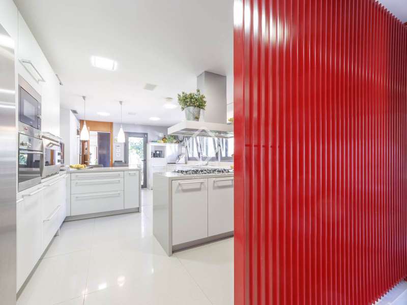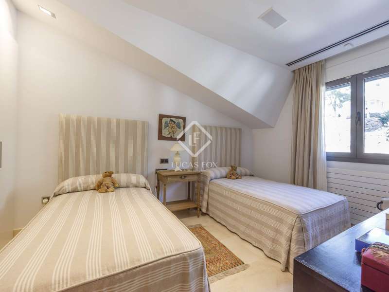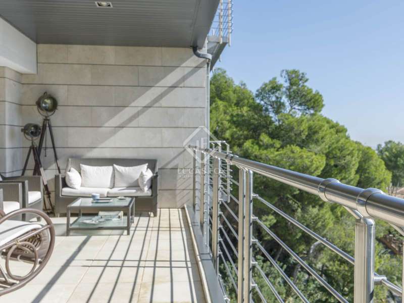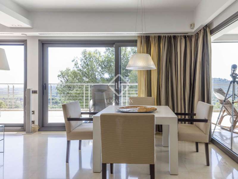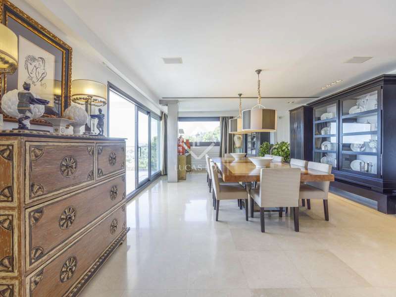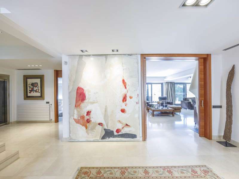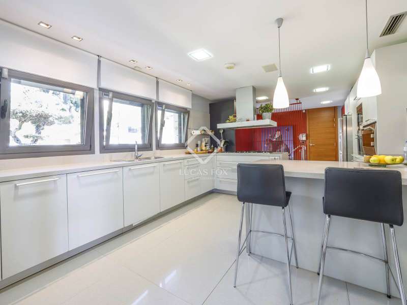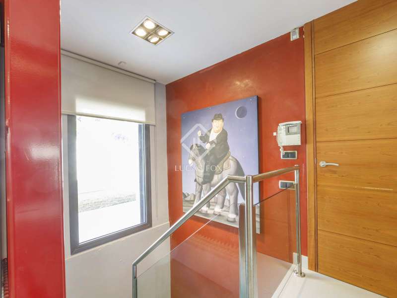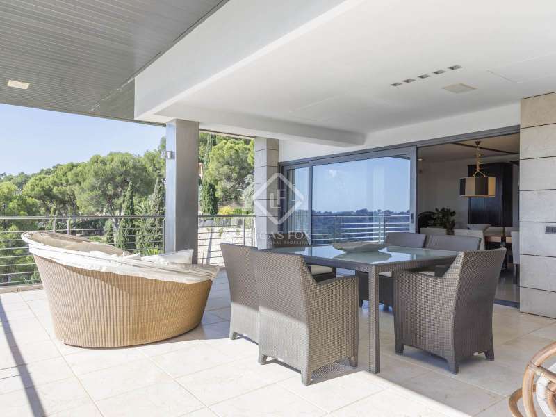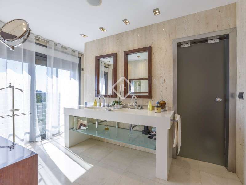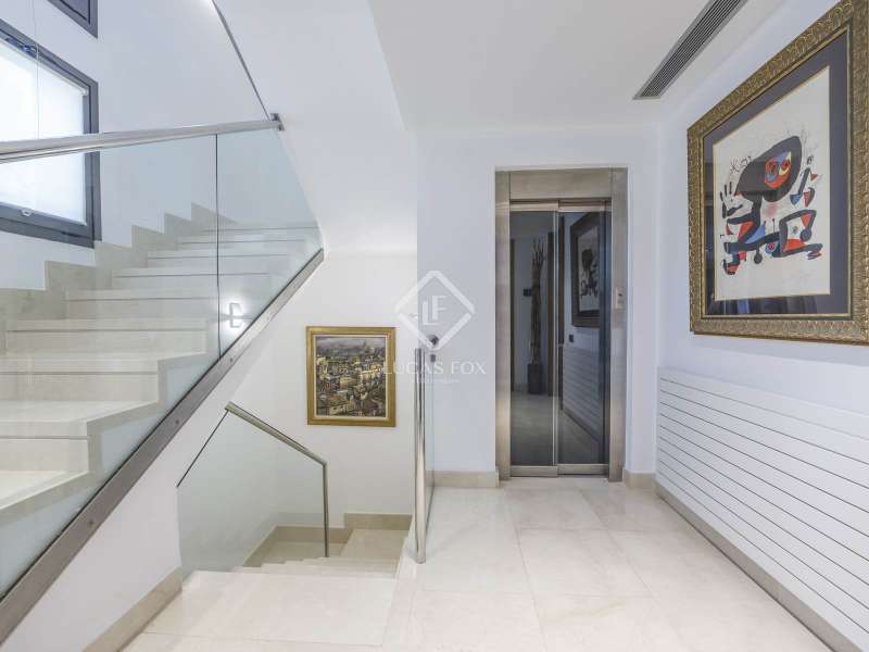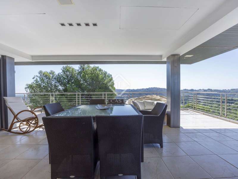Lucas Fox is proud to present this unique property for sale in Chiva, Valenica. The house sits on a sloping terrain, which is actually formed of four plots, covering an impressive total area of more than six thousand square metres. This large surface area offers different environments, some with a steep slope that provide dreamlike panoramic views, other large flat surfaces and even a wooded area with walkways and countless trees. The southeasterly aspect of the plot allows you to enjoy unique views, over extensive orange groves which eventually merge with the city of Valencia and the intense blue of the Mediterranean Sea. This is, in all probability, one of the best plots and houses in the El Bosque development, famous for its golf course and for the privacy and security it provides. The plot has different entrances, the two main ones are at the top, depending on whether you want to park inside the house or outdoors on the plot. The terracing and stone retaining walls have been beautifully crafted and the entire façade of the house is made of selected natural stone (marble), in some cases polished and in others honed, which combines perfectly with materials such as aluminium (Alucobond) and safety glass. The sloping plot provides this property with abundant light and views from all its rooms (including the parking area), yet the interior layout of the house is very comfortable as the main living areas are all on one level, including the living rooms, kitchen, terraces and the main bedroom with two very generous dressing rooms and a stunning exterior-facing bathroom. The house has a lift that delivers you to the various levels. The property includes separate staff accommodation, and the lower floor of the main home boasts a sauna, jacuzzi, indoor pool with counter-current swimming system, games room, study, etc., all exterior facing and with views. Additional features include an independent electricity generator and solar panels that provide significant savings in energy costs. In short, a truly sophisticated property that will satisfy the demands of even the most discerning home buyer.