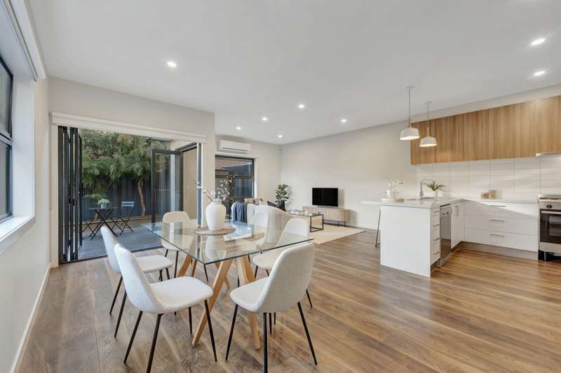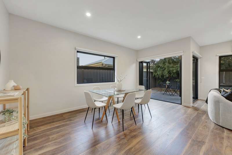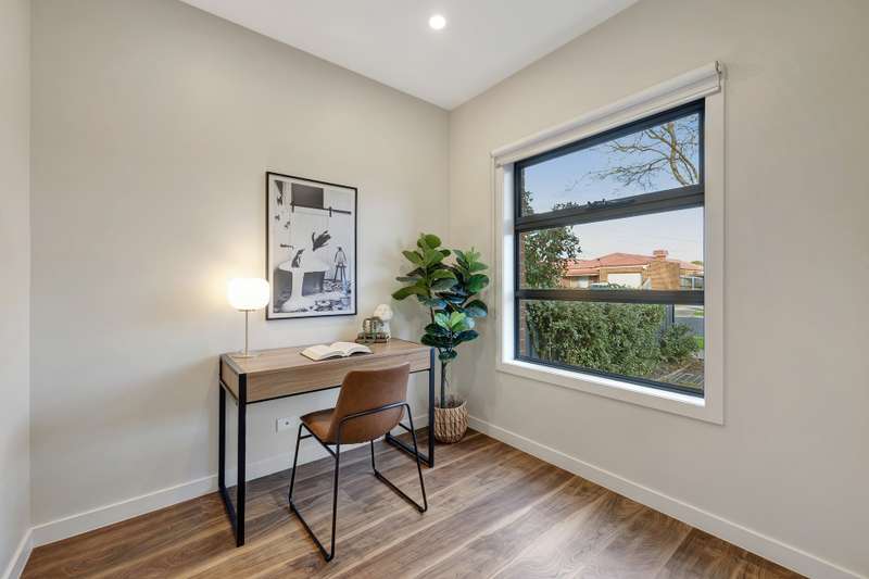 Welcome to 32B Church Street, a home that blends modern design, quality finishes, and unbeatable convenience in one of Werribee’s most highly sought-after South Side pockets. Offering three bedrooms plus a study (or optional fourth bedroom downstairs), two bathrooms, and a single-car garage, this property is perfect for families, professionals, and investors seeking a stylish, low-maintenance lifestyle. From the moment you arrive, the striking modern façade sets the tone for what’s inside -a home that radiates contemporary elegance. Step inside and be greeted by a bright, airy interior filled with natural light. The ground floor features warm wooden flooring that flows seamlessly through the open plan living and meals area, creating a welcoming space for everyday life. The kitchen is the true centrepiece, complete with stone benchtops, quality appliances, and pendant lighting over the breakfast bar. The open plan design invites connection, while bifold doors lead you effortlessly to the private rear courtyard, making indoor-outdoor entertaining a breeze. Upstairs, you’ll find three generously sized bedrooms, all with cosy carpet underfoot, providing comfort and warmth. The master suite is a serene retreat, serviced by a stunning ensuite with floor-to-ceiling tiles, mirroring the style of the main bathroom for a cohesive, elegant finish. A well-sized study downstairs offers flexibility – ideal as a home office, guest room, or fourth bedroom if needed. Comfort is guaranteed year-round with split-system heating and cooling, and the low maintenance front and rear yard mean your weekends are free to enjoy the vibrant lifestyle this location offers. There are no body corporate fees and no shared driveways, giving you total independence and privacy. Location is everything, and 32B Church Street delivers in every way. You’re just 700m (approx.) from Watton Street, where you can explore a fantastic array of restaurants, cafes, nightlife, supermarkets, chemists, and the picturesque Wyndham Park. Families will love being zoned to two of Werribee’s most highly regarded schools - Werribee Primary School (400m approx.) and Werribee Secondary College (1.2km approx.). Commuters will appreciate the easy freeway access just down the road, making travel to both Melbourne CBD and Geelong CBD a breeze. Pacific Werribee Plaza is also just a short drive away, giving you even more shopping and entertainment options. 32B Church Street isn’t just a home - it’s a lifestyle. Modern, low-maintenance, and perfectly positioned, it’s ready to welcome its new owners who will love everything about living here. If you think this is your next dream home - give us a call today!