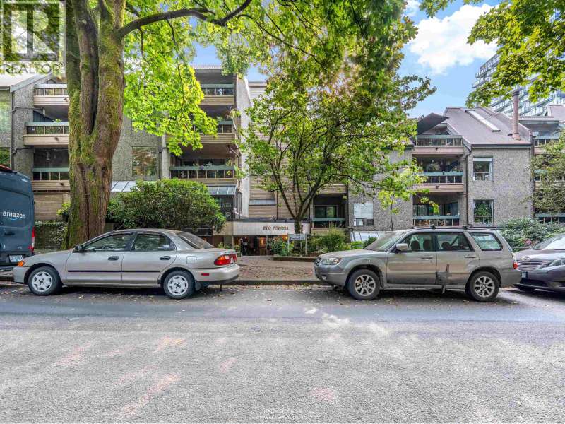 This spacious one bedroom home at Pendrell Mews is more than a condo--it's a community of kind people who say hello in the elevator and help each other out. This home has been tastefully updated--a new walk-in shower was added in 2022, and $50,000 was spent opening up the enclosed kitchen and adding pot lights in 2023. The home features an open concept living space, a large bedroom, and in-suite laundry. A spacious balcony, with a view over a tree lined pedestrian mews, is the perfect spot for entertaining or relaxing after a long day. For a building of this era, the amenities are impressive: a modernized gym, rooftop terrace, entertainment lounge, 2 saunas and updated showers and a squash court. If you are looking for a quiet home within steps of the action of Davie and Denman Streets, English Bay, and all that the West End has to offer, this is it! Pendrell Mews has a healthy contingency fund and a proactive strata council. Some photos digitally staged. (id:58403)