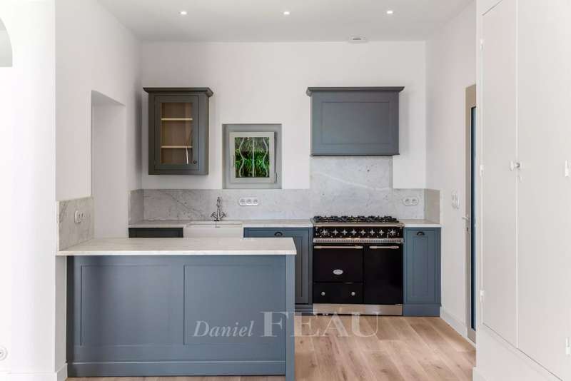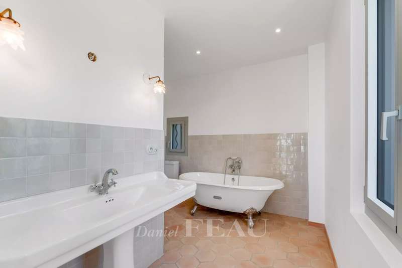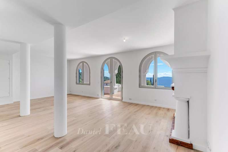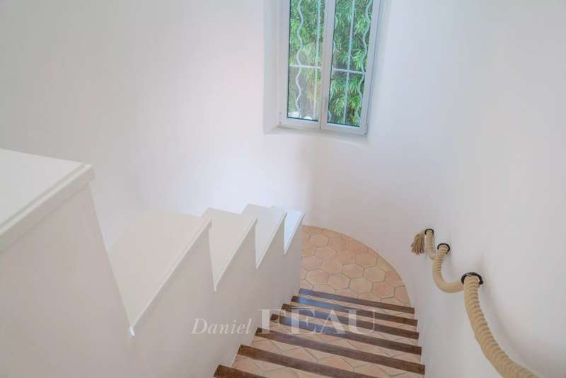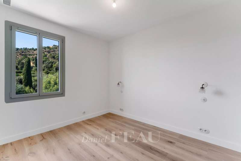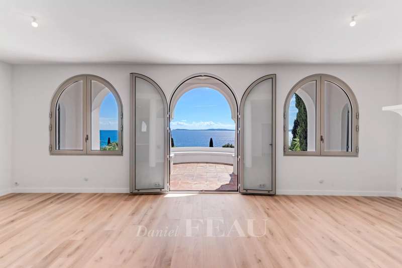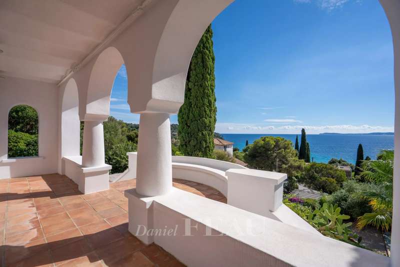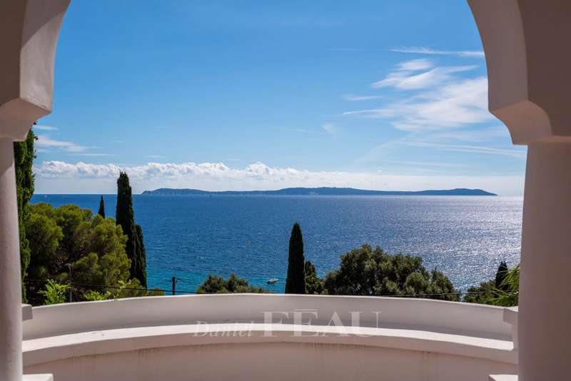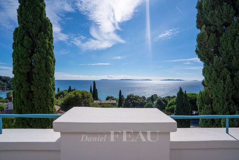 This superb 1930s property enjoying a panoramic view and boasting an architectural style typical to the era is located just 100 metres from Canadel beach. Recently renovated throughout under the supervision of an interior decorator and allying period charm with contemporary style and comfort, it includes a bright and spacious living/reception room with an open-plan kitchen, and three suites each with a bathroom opening onto a balcony commanding an open sea view. The lower floor comprises a separate area with a kitchen which could create a self-contained apartment. The garden features several terraces, a swimming pool, a boules pitch and a garage.