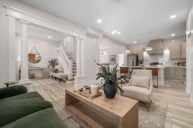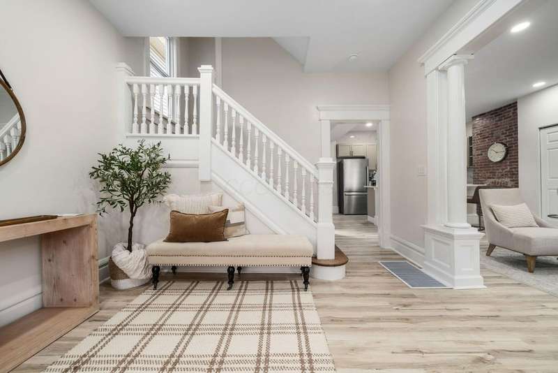 Experience the joy of urban living in this beautifully redesigned home located in Olde Towne East with over 2100 sq ft of living space. Historic charm of exposed brick walls, sleek design of custom kitchen with classic cabinetry and baths, modern lighting throughout and 2nd floor laundry. Fabulous owner suite with walk-in closet, double sinks & custom shower. Finished 3rd level offers a 4th bedroom with a really cool vibe. This gem showcases beautiful finishes that elevate each room. Fenced yard and huge 1+ car garage. Basement (dry!) is freshly painted top to bottom. This size of home is priced competitively for the area - you need to see this!!