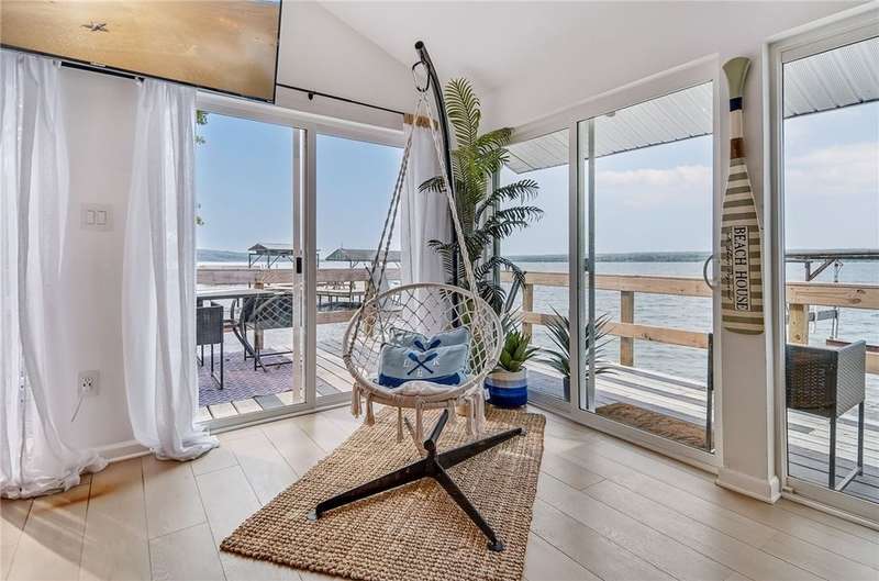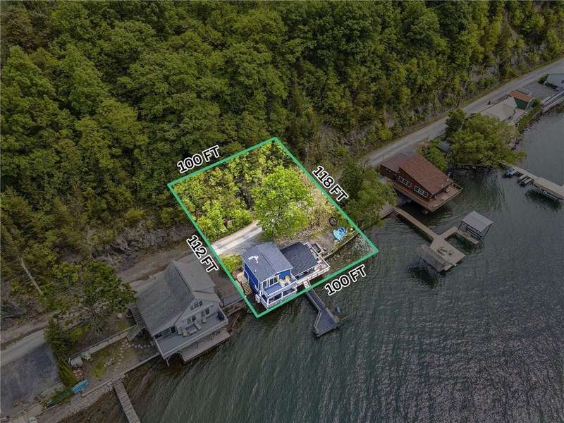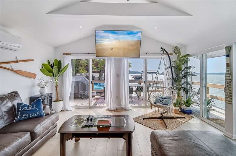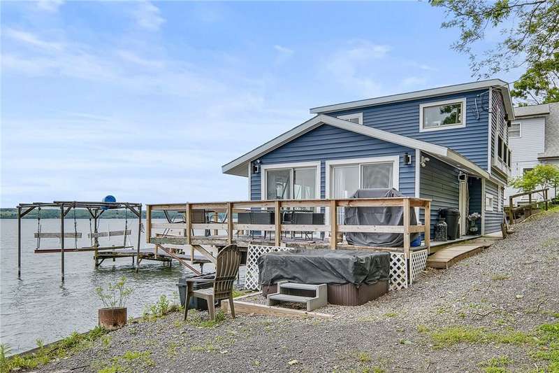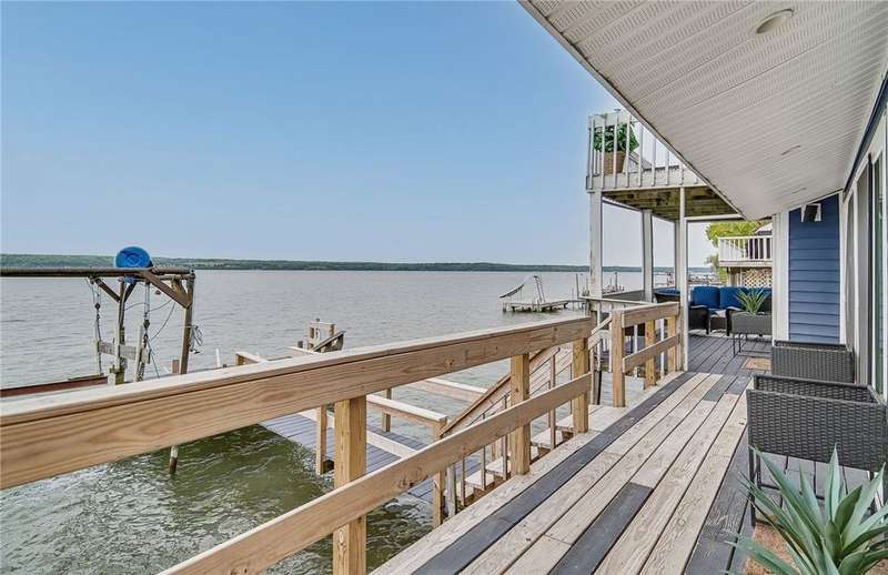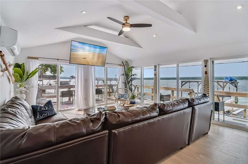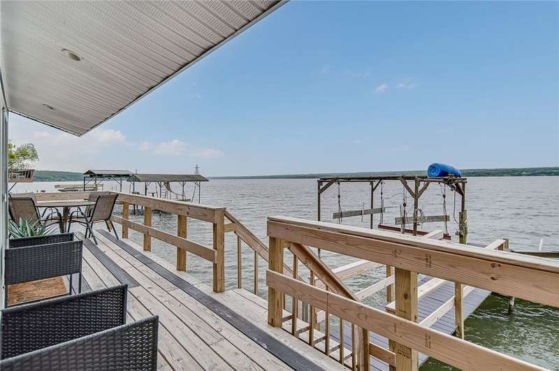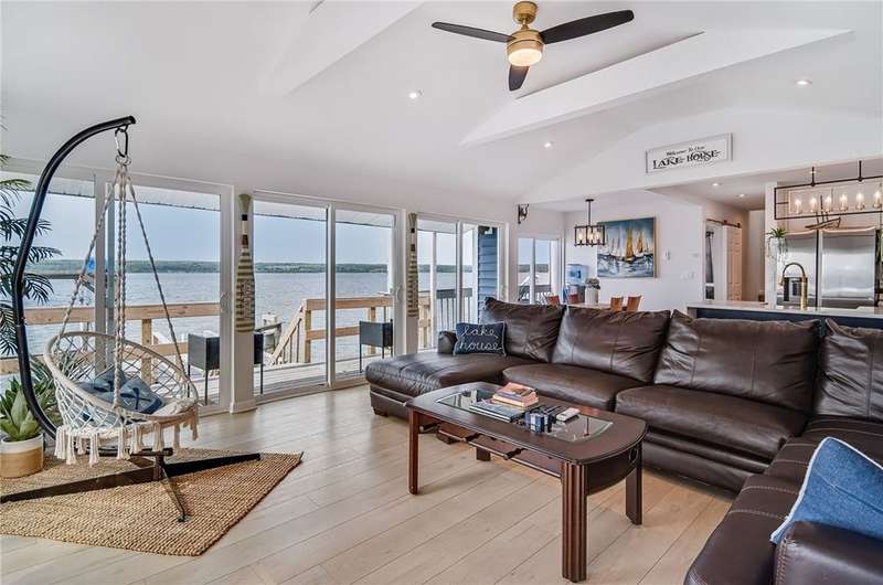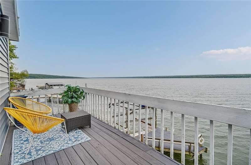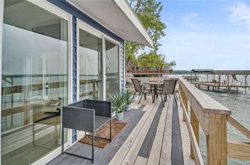 Welcome to your dream lakefront getaway! This exceptional property boasts?100 feet of pristine lake frontage, offering panoramic water views and endless opportunities for recreation and relaxation. Enjoy the beauty of the lake from the?expansive wrap-around deck, perfect for entertaining, dining al fresco, or simply soaking in the sunset. The property features a?private dock and boat hoist, making it effortless to hit the water at a moment's notice. Completely renovated with impeccable taste and top-of-the-line materials, the home blends modern comfort with timeless style. Every detail has been carefully curated to create a space that is both elegant and functional. This property is not only a personal oasis but also a?high-income producing investment?with a strong Arbnb rental history, pays for itself with extra cash flow! Financial report available upon request.