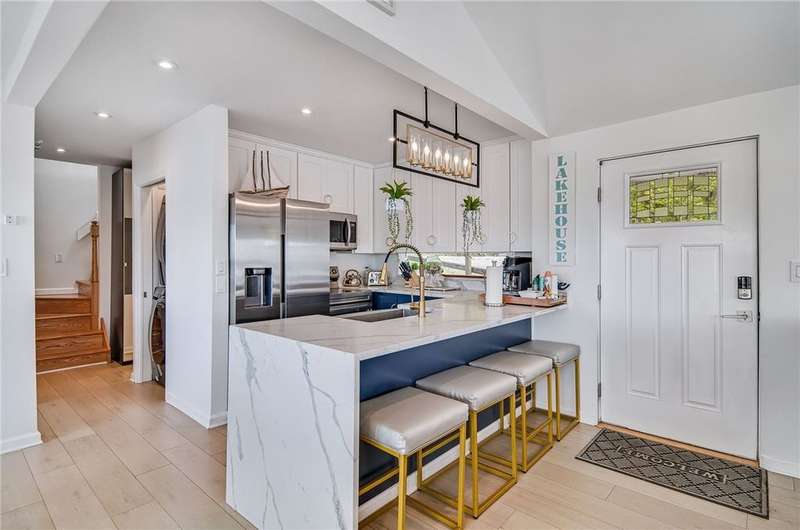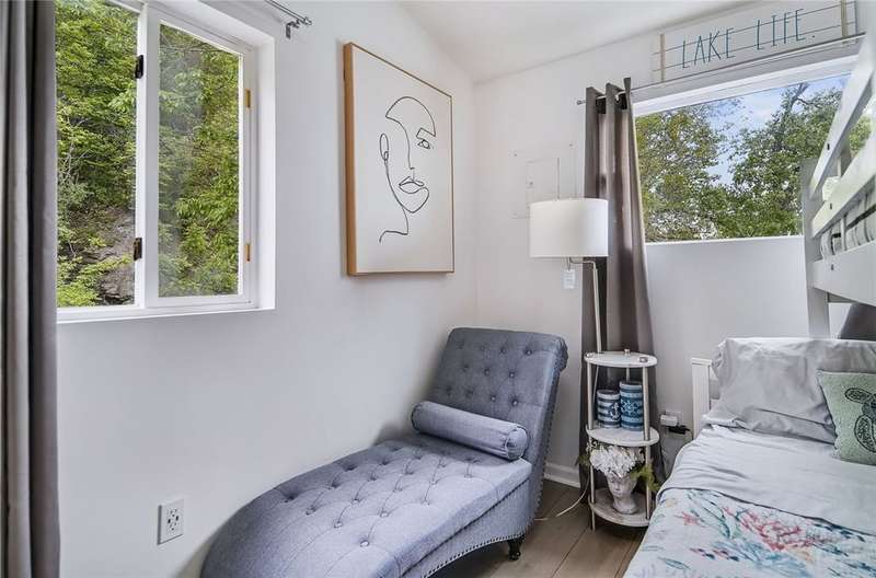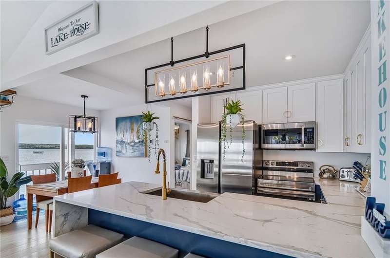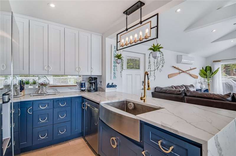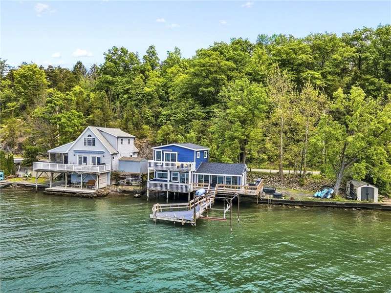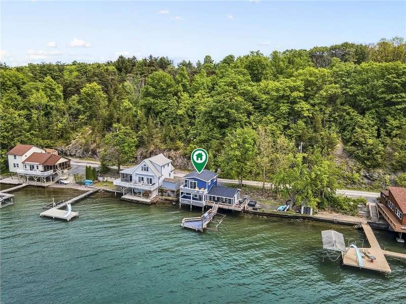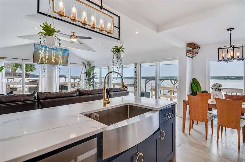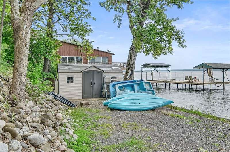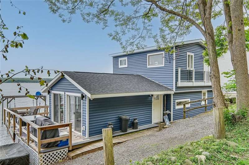 Welcome to your dream lakefront getaway! This exceptional property boasts?100 feet of pristine lake frontage, offering panoramic water views and endless opportunities for recreation and relaxation. Enjoy the beauty of the lake from the?expansive wrap-around deck, perfect for entertaining, dining al fresco, or simply soaking in the sunset. The property features a?private dock and boat hoist, making it effortless to hit the water at a moment's notice. Completely renovated with impeccable taste and top-of-the-line materials, the home blends modern comfort with timeless style. Every detail has been carefully curated to create a space that is both elegant and functional. This property is not only a personal oasis but also a?high-income producing investment?with a strong Arbnb rental history, pays for itself with extra cash flow! Financial report available upon request.