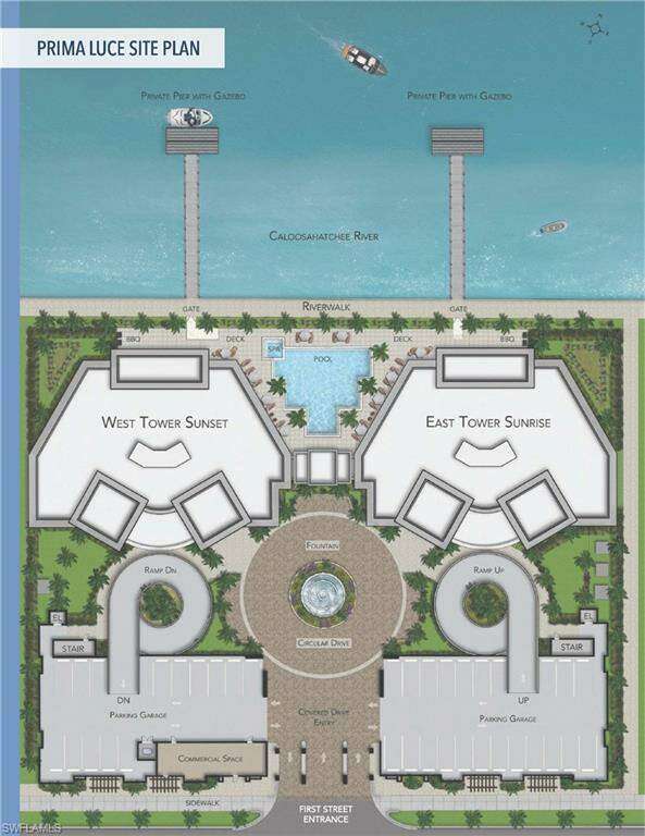 C1811 - This new construction waterfront condo features a stunning view of the Caloosahatchee River Estuary. Luxury fixtures, finishings and appliances come standard, with additional upgrades and full customization available. Prima Luce's resort-inspired amenities include a zero-entry heated swimming pool, whirlpool, yoga studio and fitness center, library and business center, and a community social space complete with catering kitchen. Each residence includes one lobby-level storage locker and one parking space in the secured private parking garage. Additional parking spaces are available for purchase. Pet-friendly Prima Luce on the Waterfront is located on the shores of the Caloosahatchee in the Historic River District of Downtown Fort Myers, Florida, and is only a short walk, drive or bike-ride from fine dining and shopping, a vibrant arts and entertainment scene, numerous local festivals and events, boating and nature activities, and so much more! The SAN LUCIDO floor plan is located on floors 2, 3 & 4 of of the West Tower, and floors 2-21 in the East Tower, starting at $360,000 with water views from every residence. Please call for current availability & pricing.